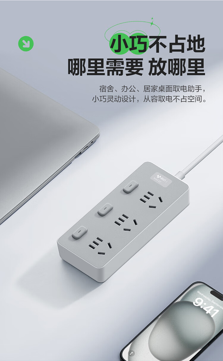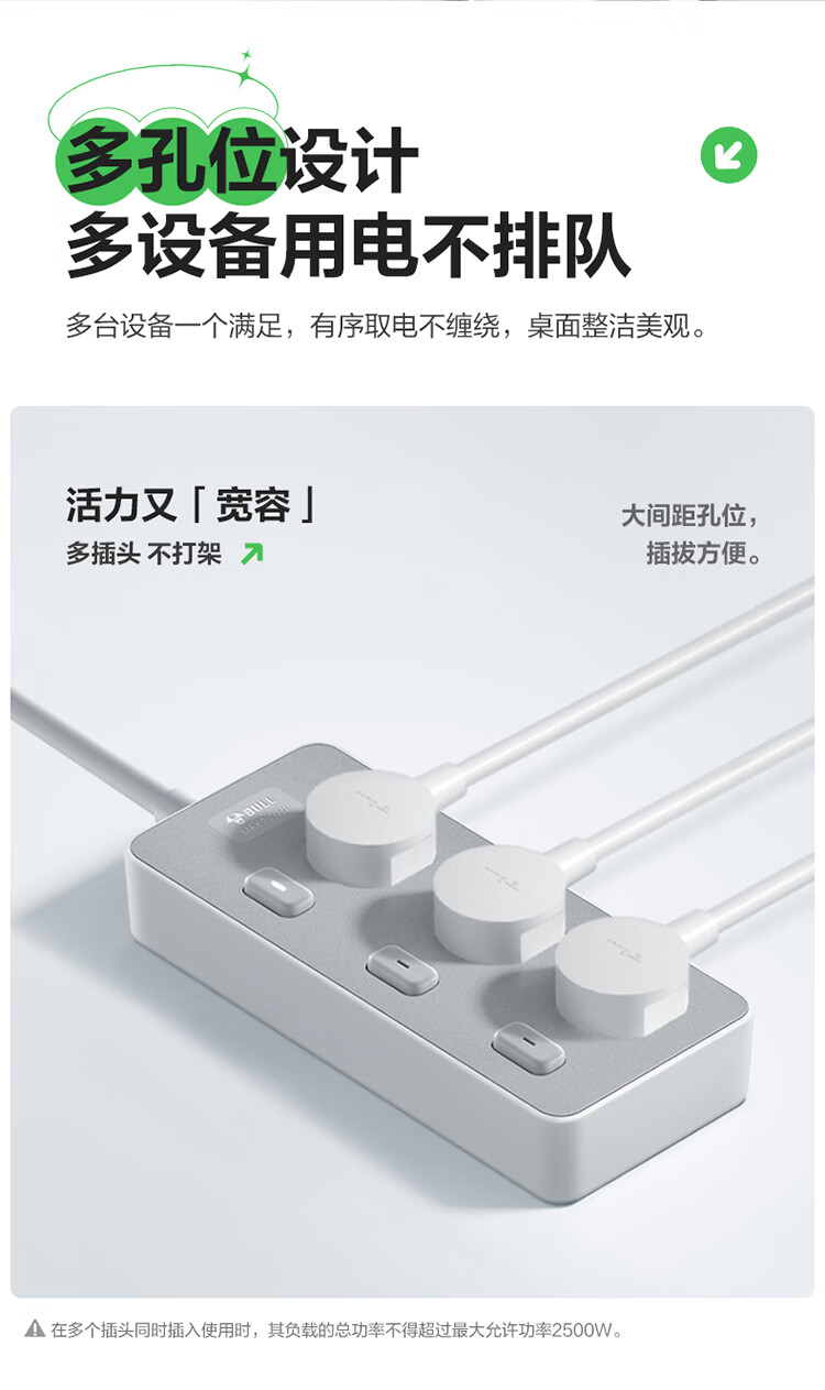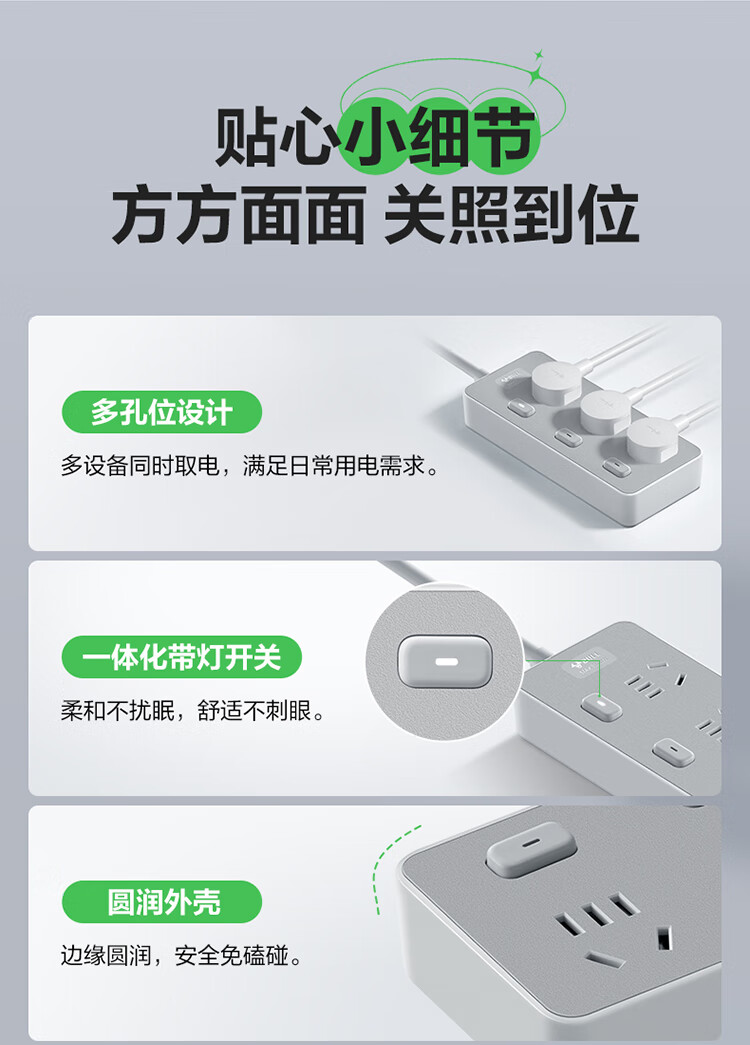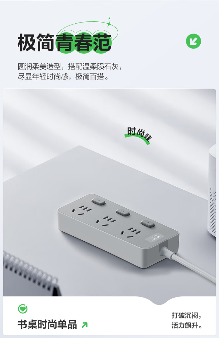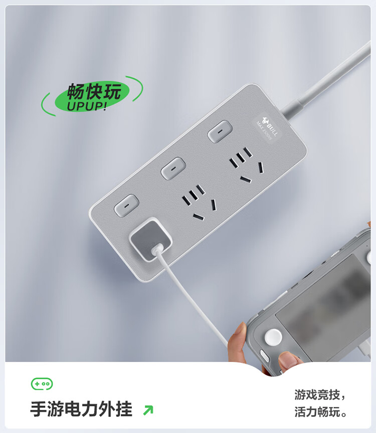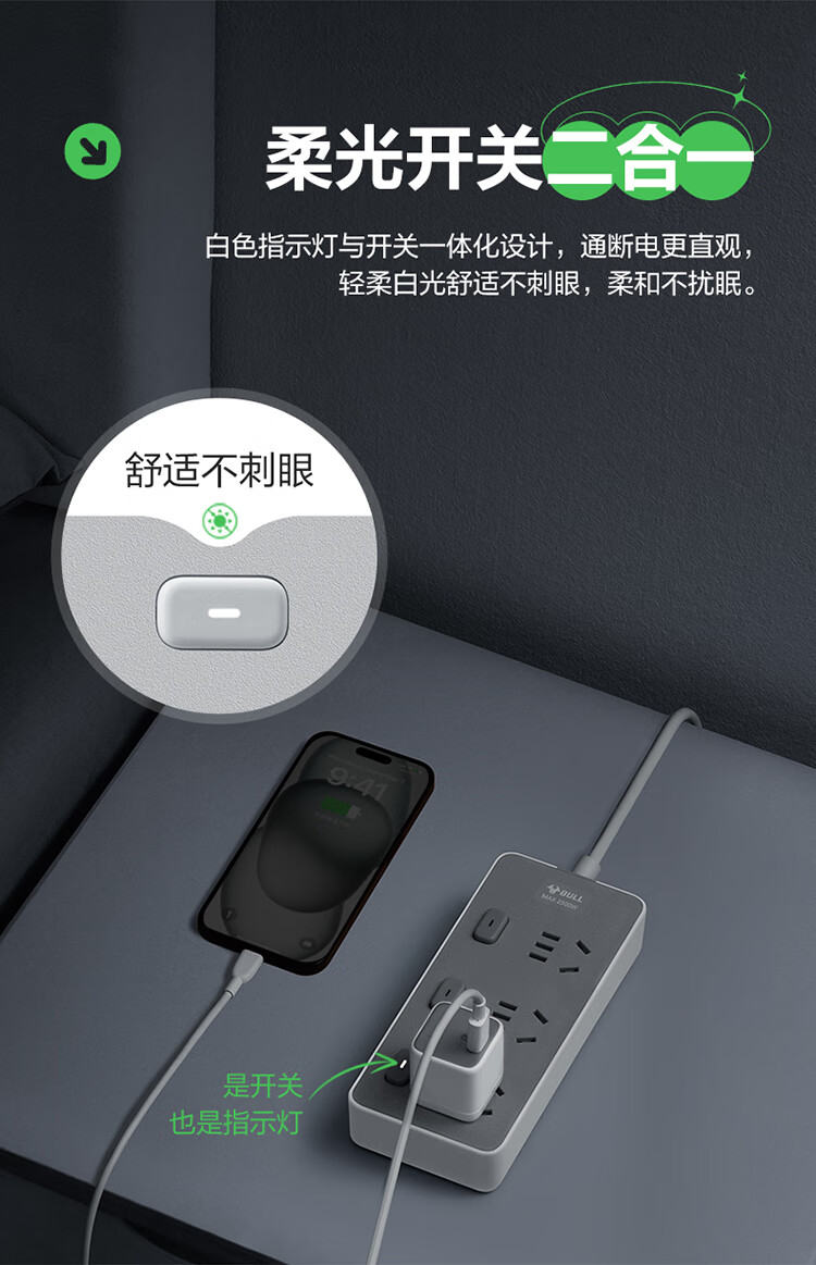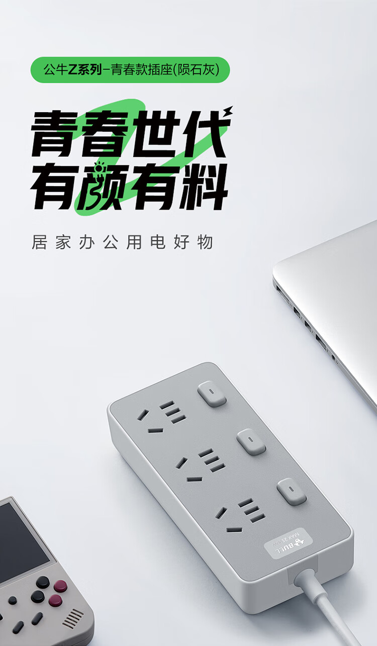 公牛(BULL)插座/插线板/插排/排插/接线板/拖线板 Z世代 3位分控开关全长1.8米 GN-Z1033J