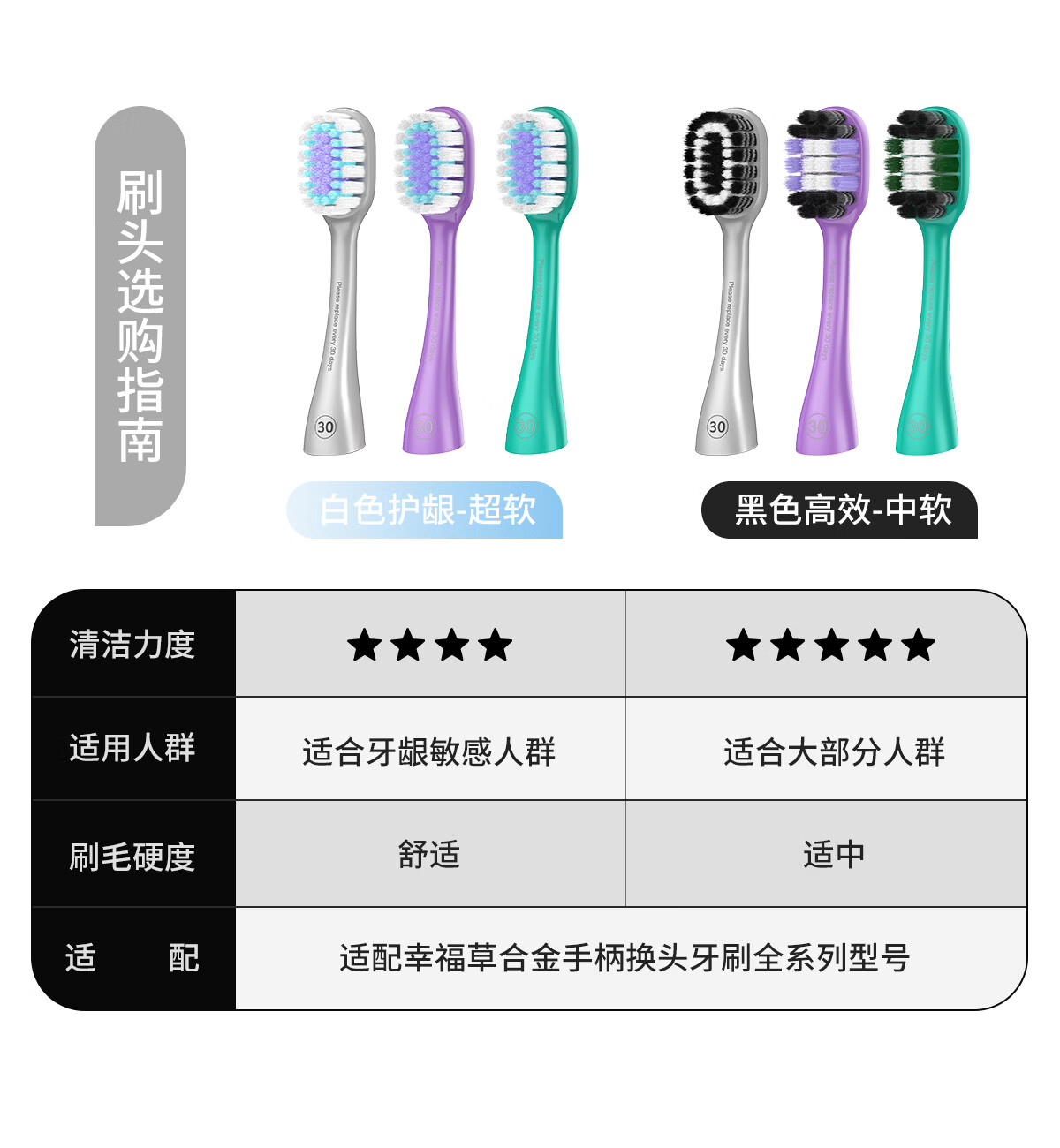 幸福草(Lukleaf) 合金手柄换头牙刷刷头 去渍型(寒武雅灰)黑色3支装