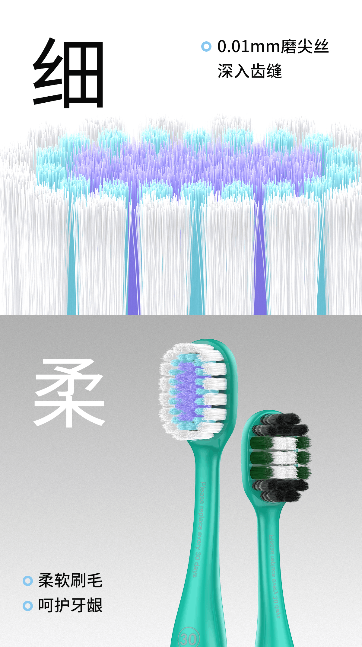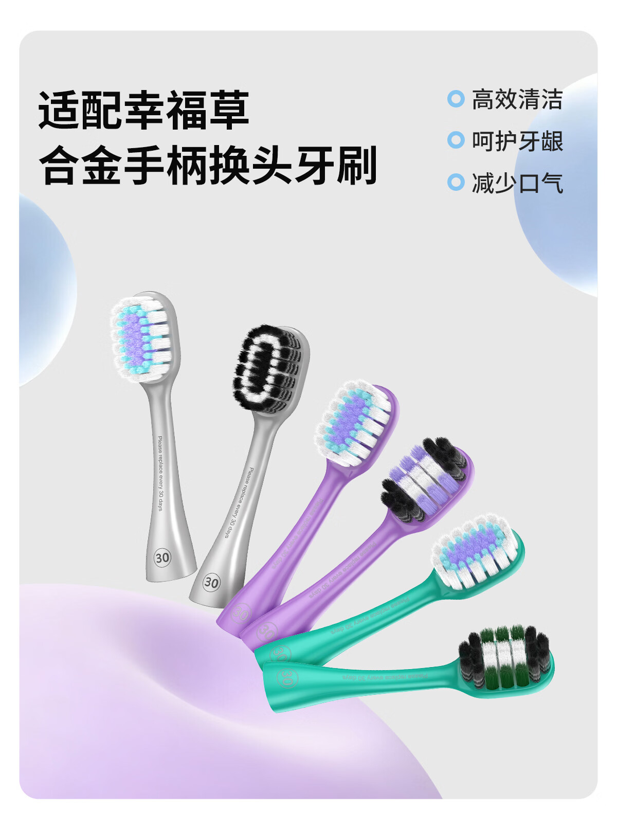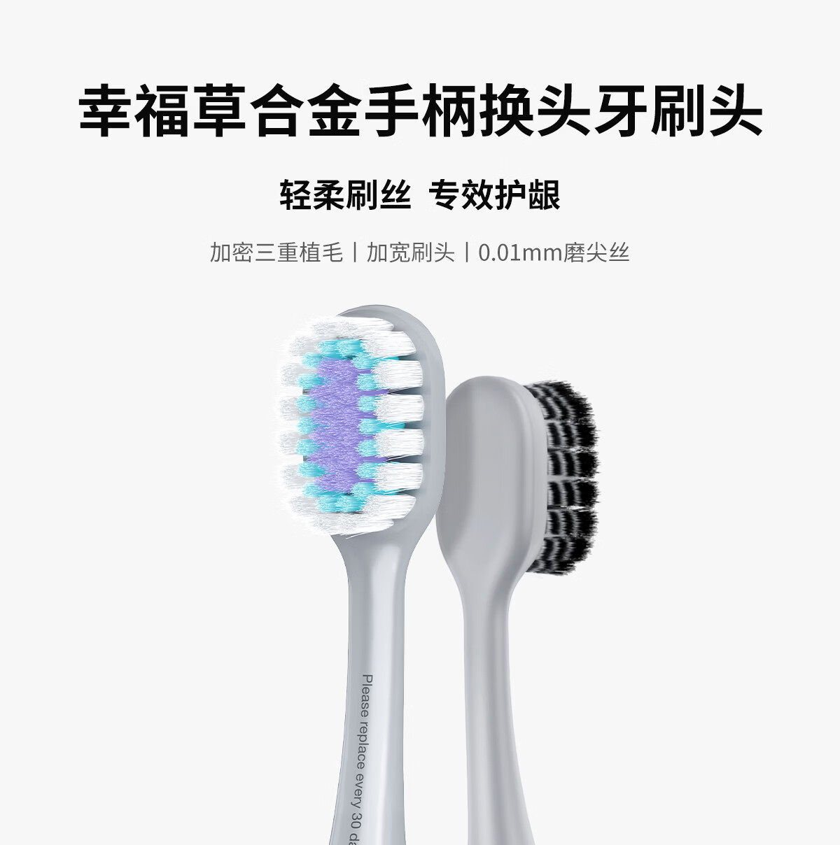 幸福草(Lukleaf)合金手柄换头牙刷刷头 柔护型(寒武雅灰)白色3支装