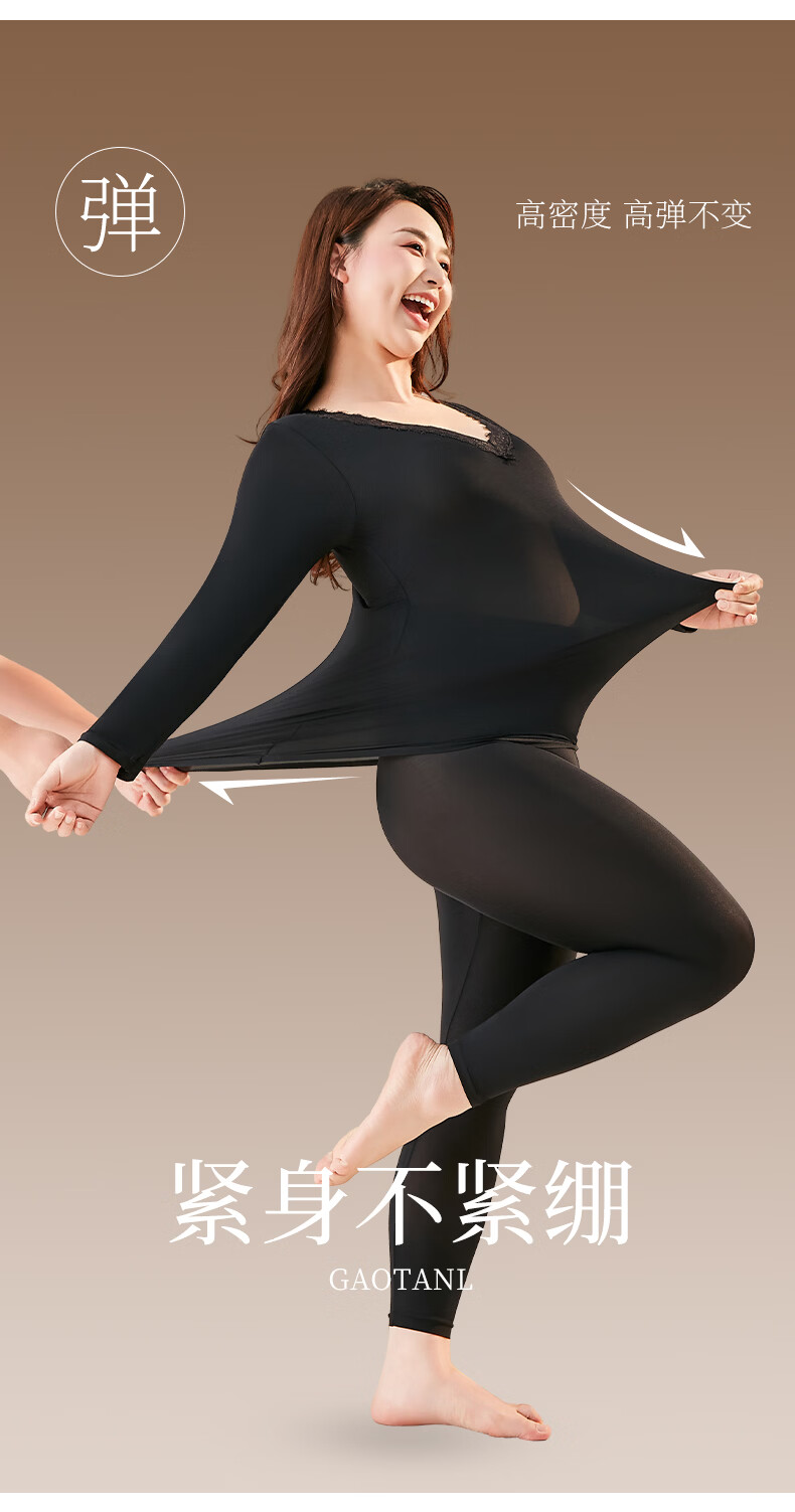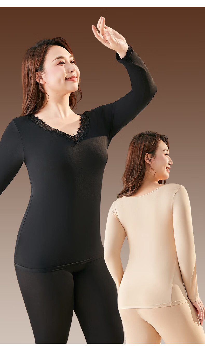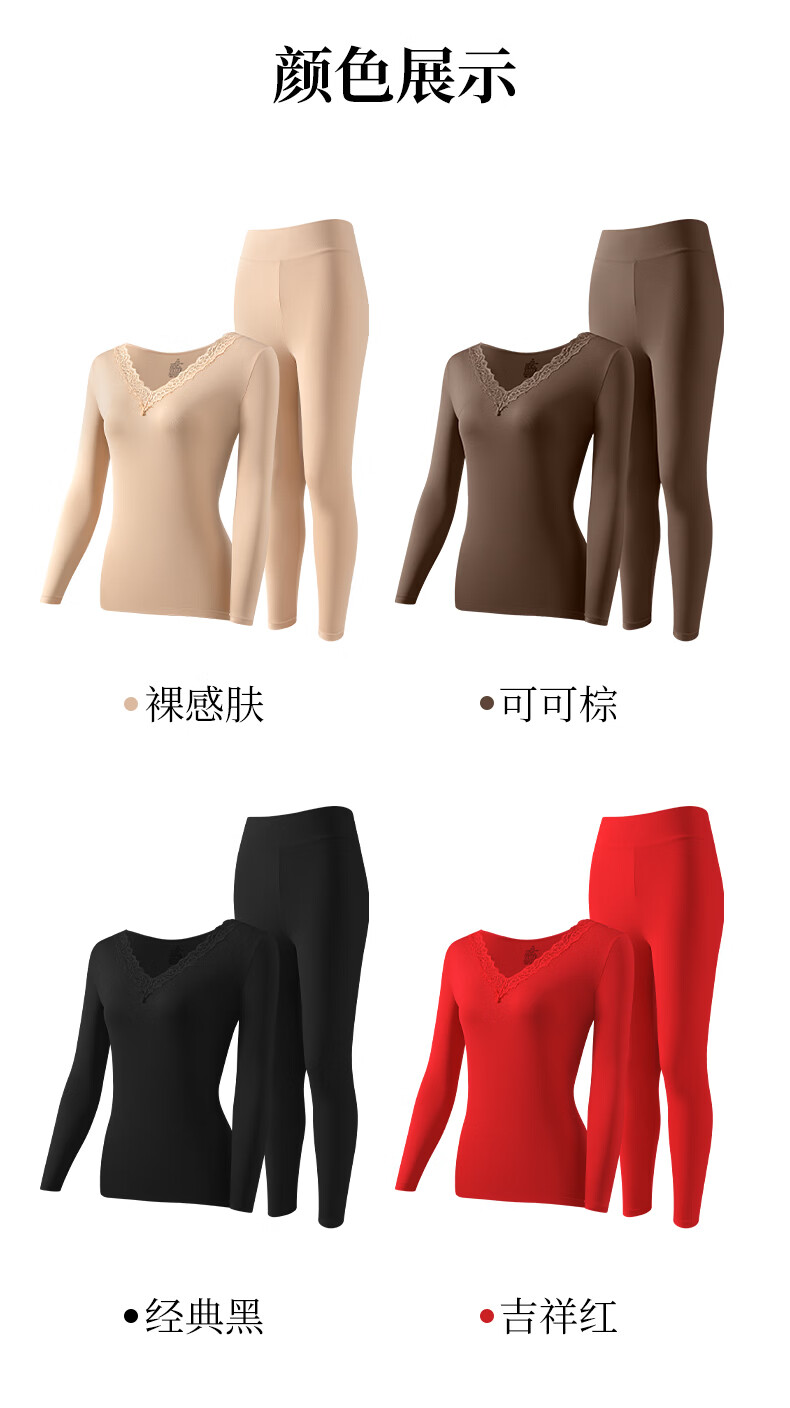 芬腾可安保暖大码美肤衣玻尿酸冬季保暖内衣女套装本命年大红长袖打底衫红 黑色 2XL (140-180斤)