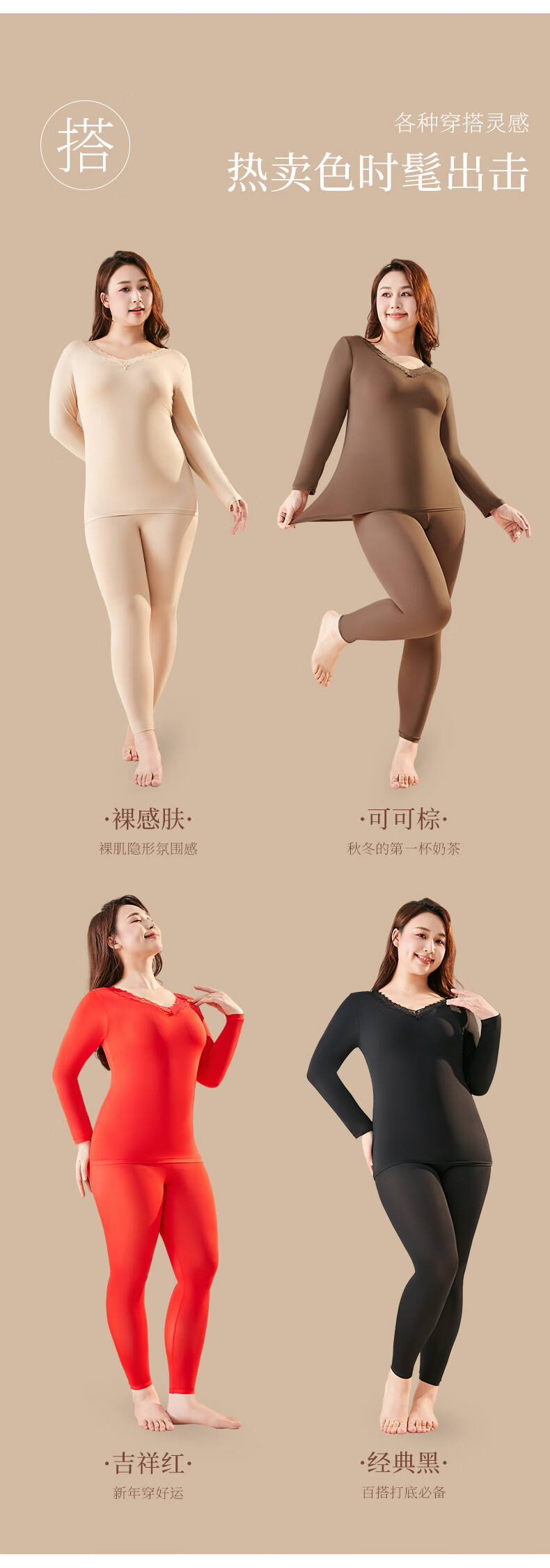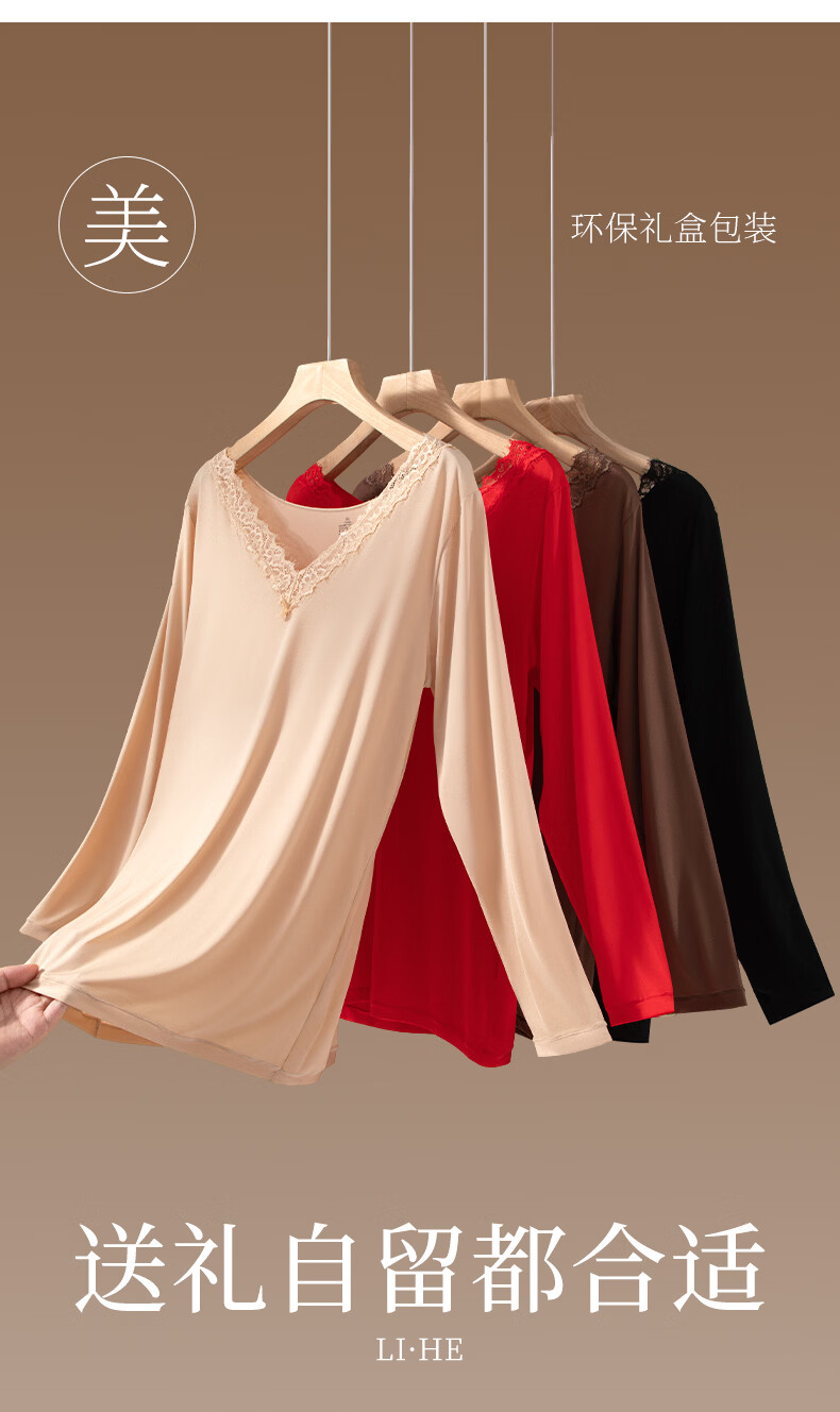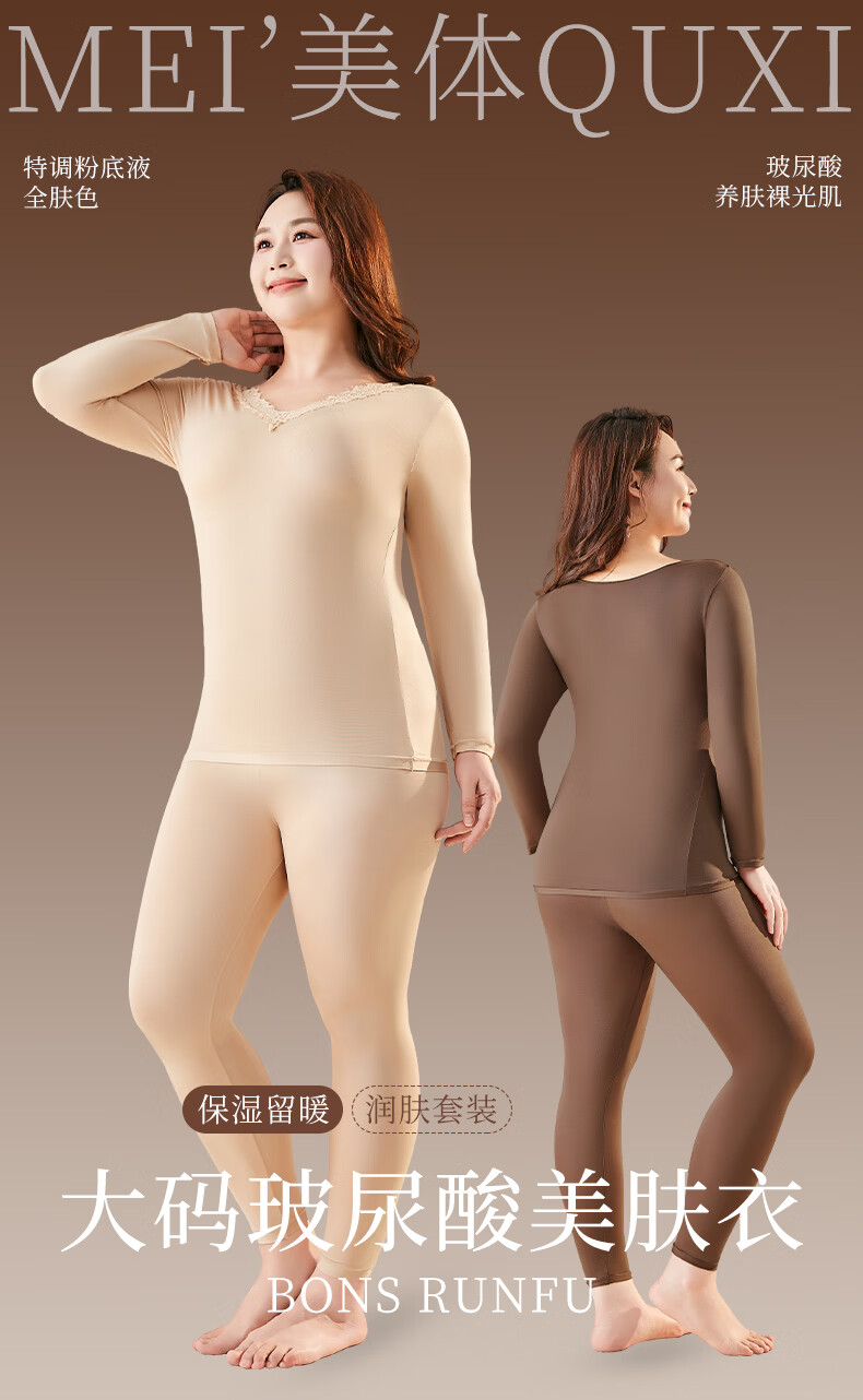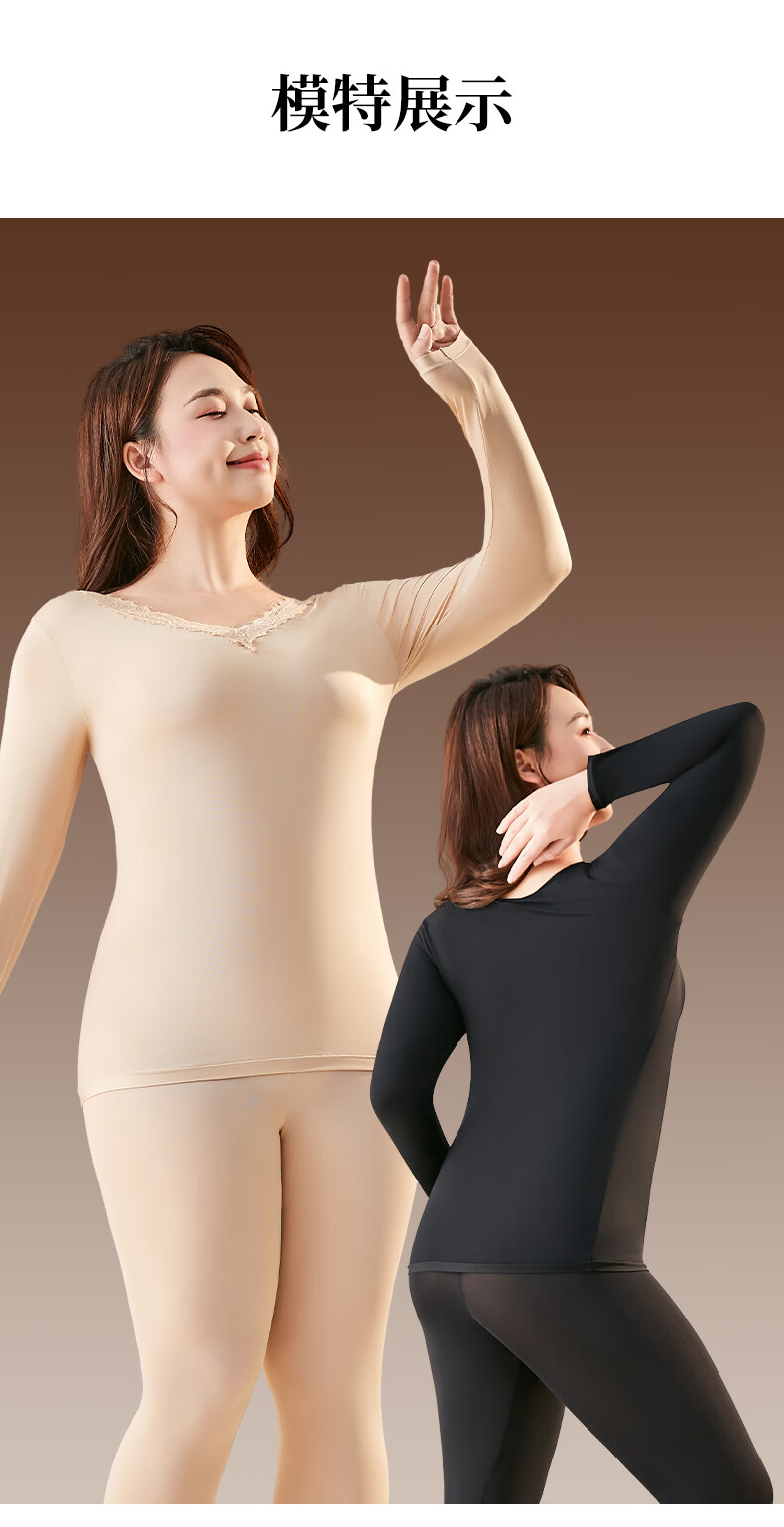 芬腾可安保暖大码美肤衣玻尿酸冬季保暖内衣女套装本命年大红长袖打底衫红 黑色 2XL (140-180斤)