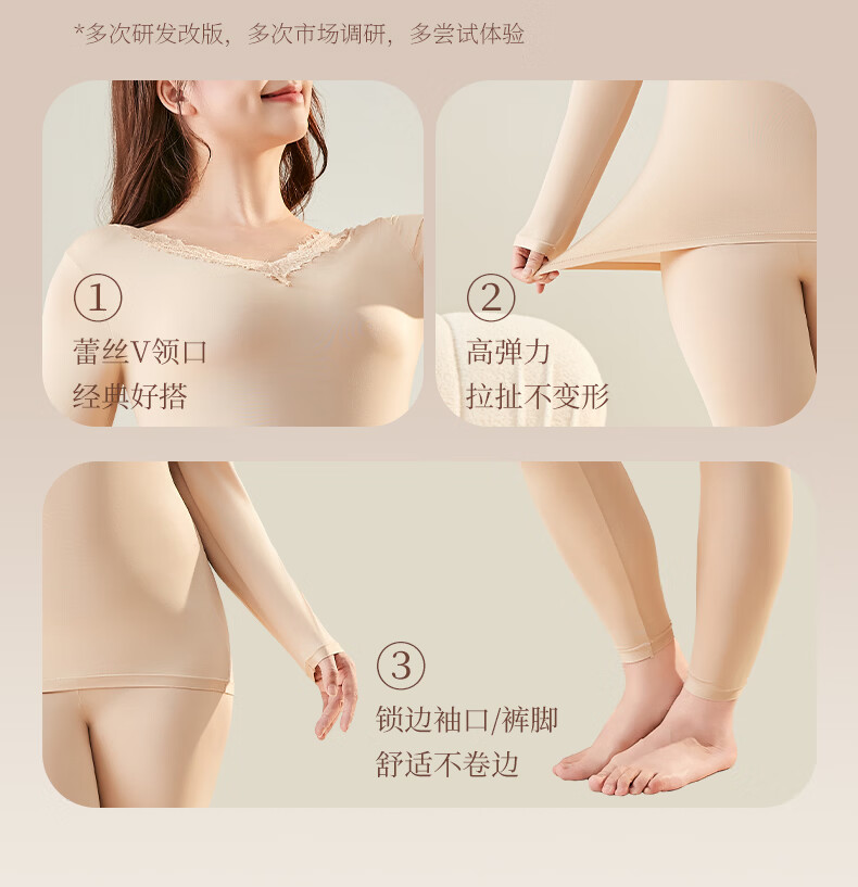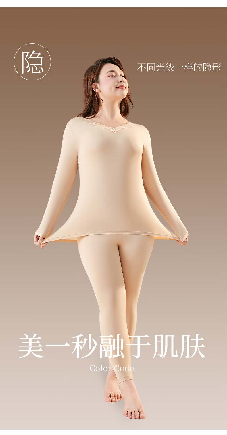 芬腾可安保暖美肤衣套装秋衣秋裤女肌底衣打底衫内搭保暖内衣女冬季润肤 白色 L (90-130斤)