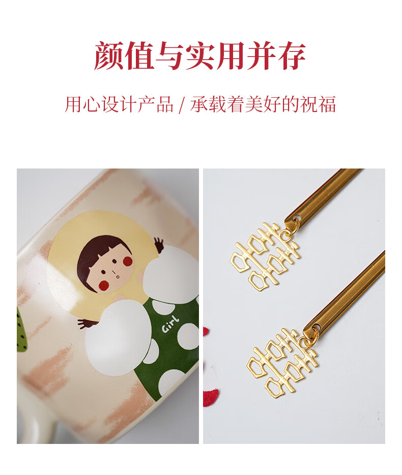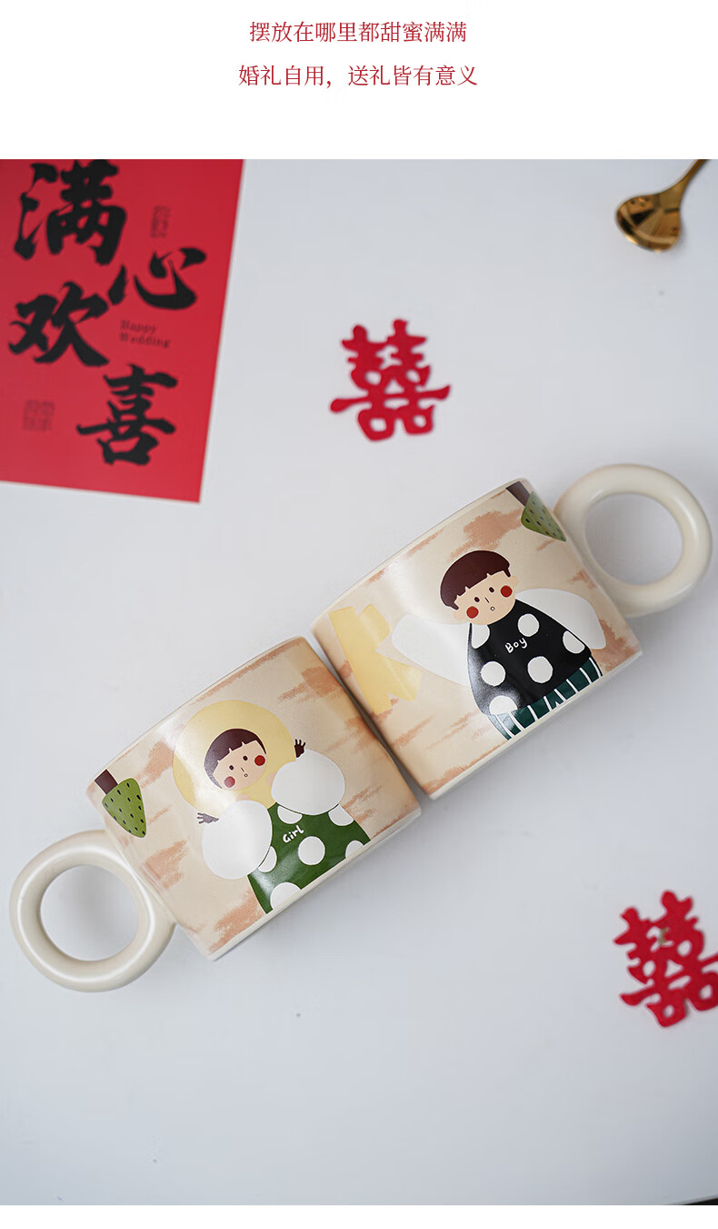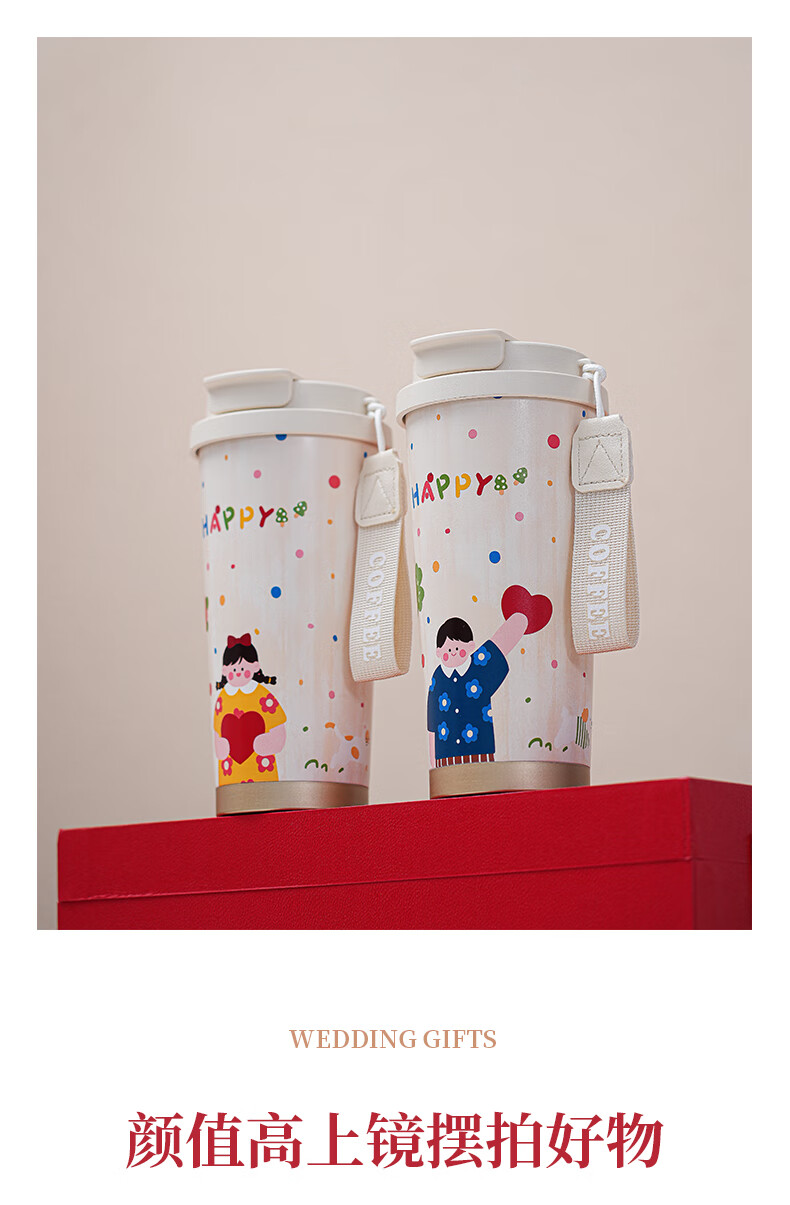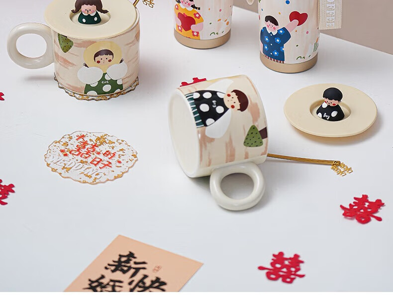 赟娅新婚结婚礼物送新人新娘简约高级感实用保温杯伴手礼结婚用品必备 大囍漫画陶瓷对杯+保温杯(新婚快乐贴纸)