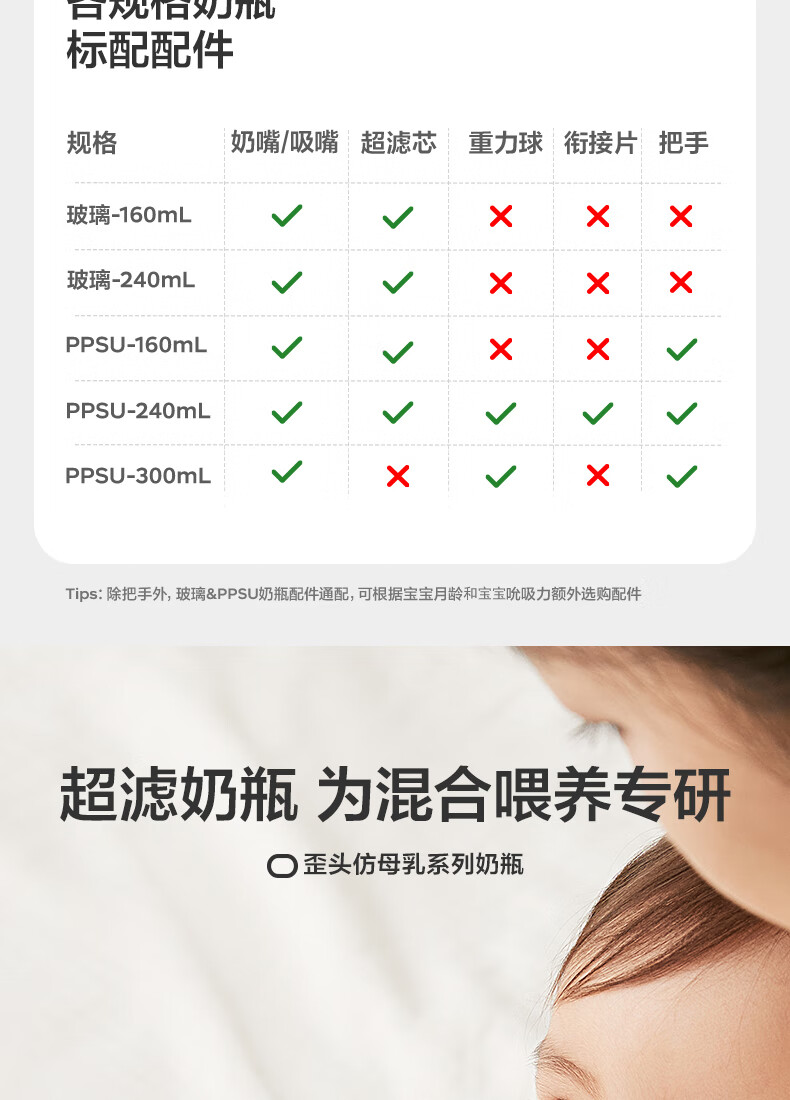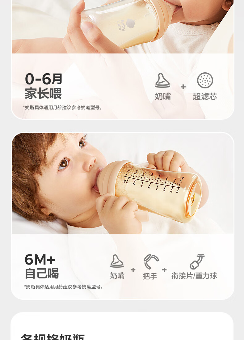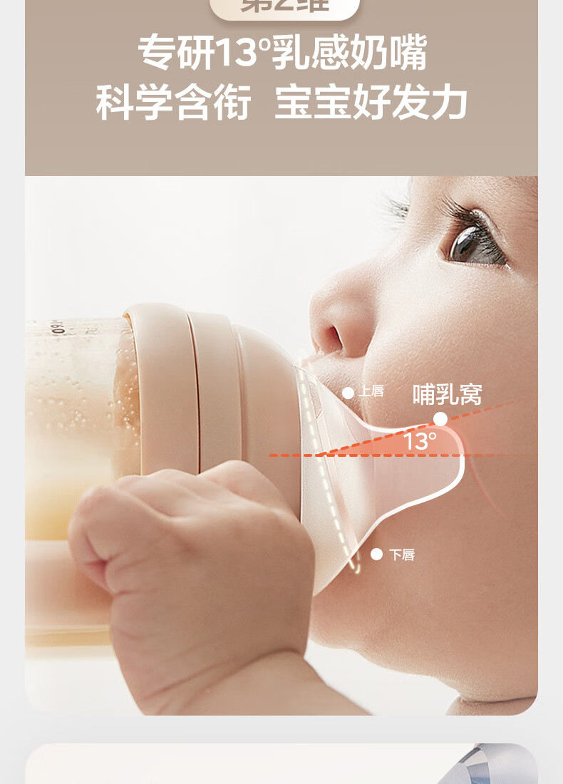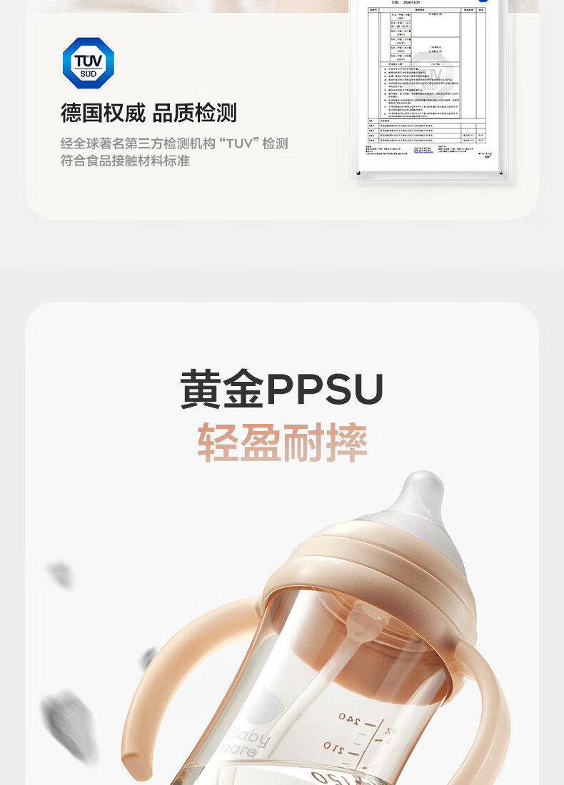 babycare超滤奶瓶 PPSU防呛防喷奶防胀气新生儿歪头仿母乳240ml L嘴6-12月