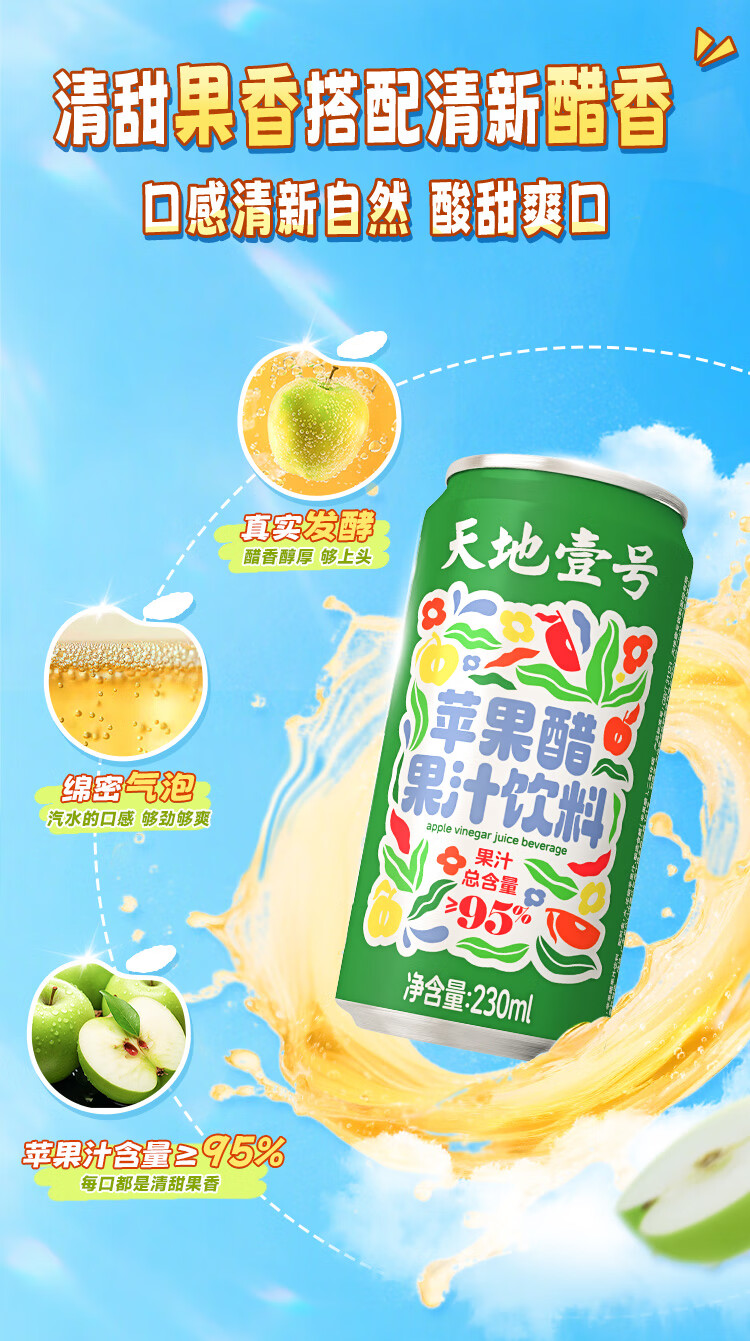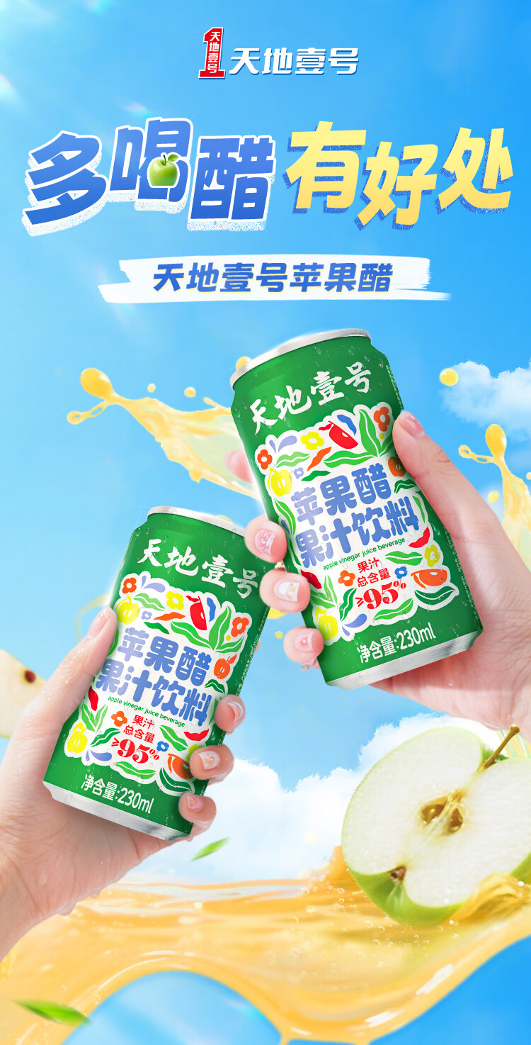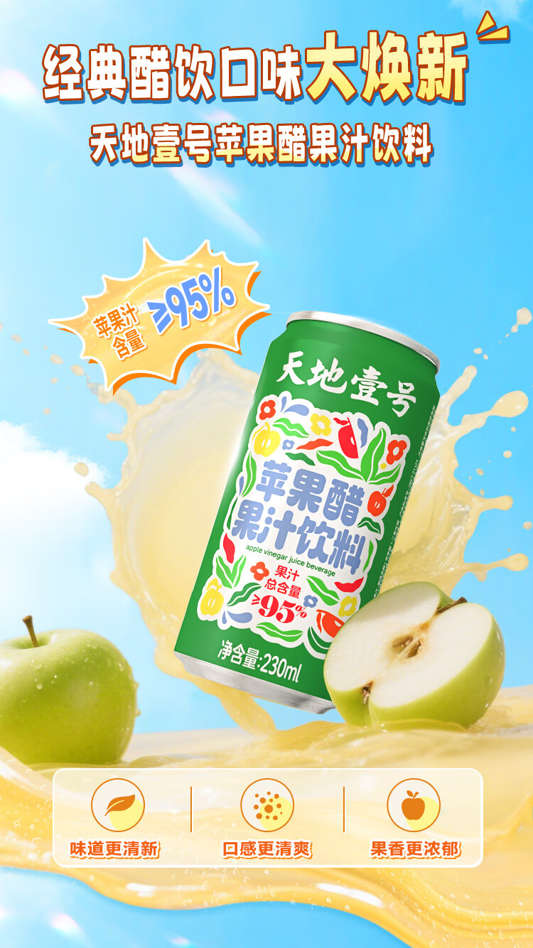 天地壹号苹果醋果汁饮料230ml果汁含量高果香浓郁大焕新0脂肪 新升级 230ml*15罐礼盒装