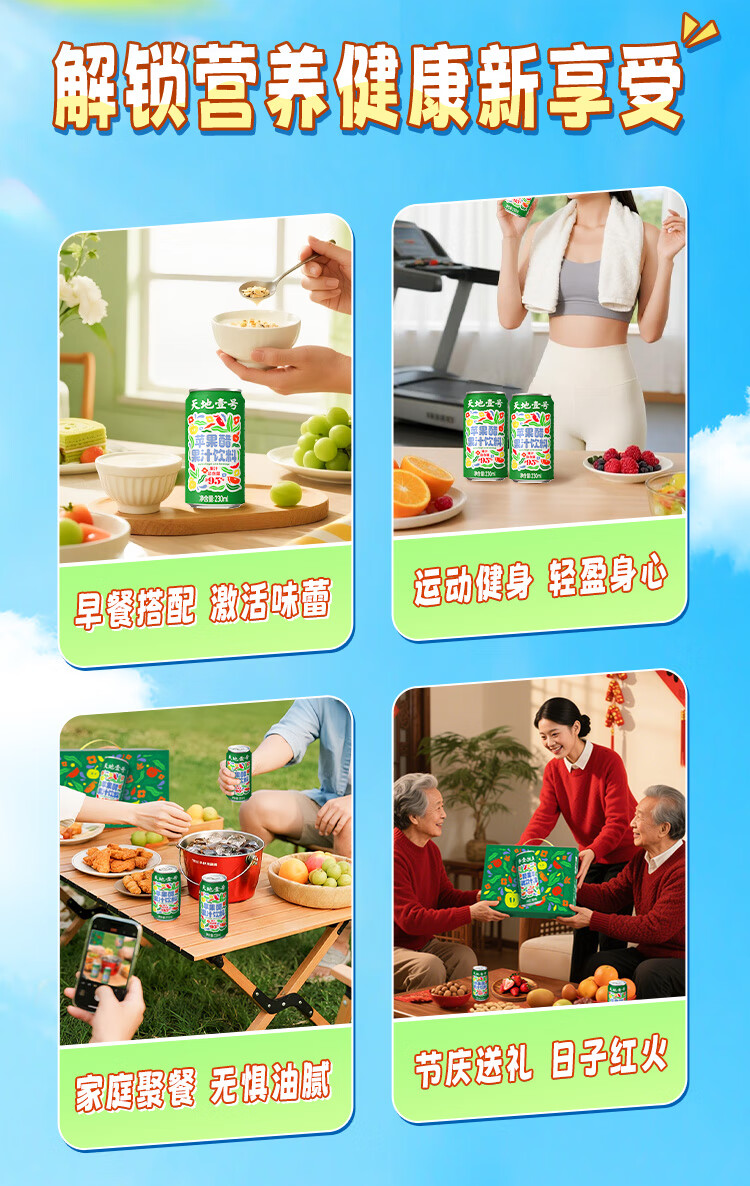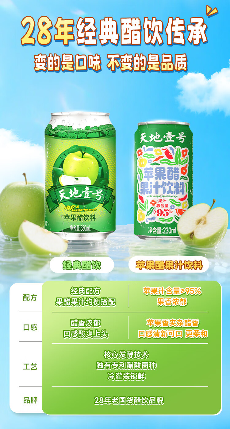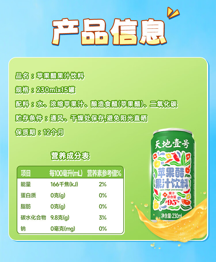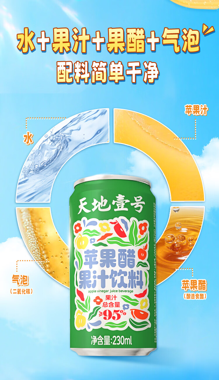 天地壹号苹果醋果汁饮料230ml果汁含量高果香浓郁大焕新0脂肪 新升级 230ml*15罐礼盒装