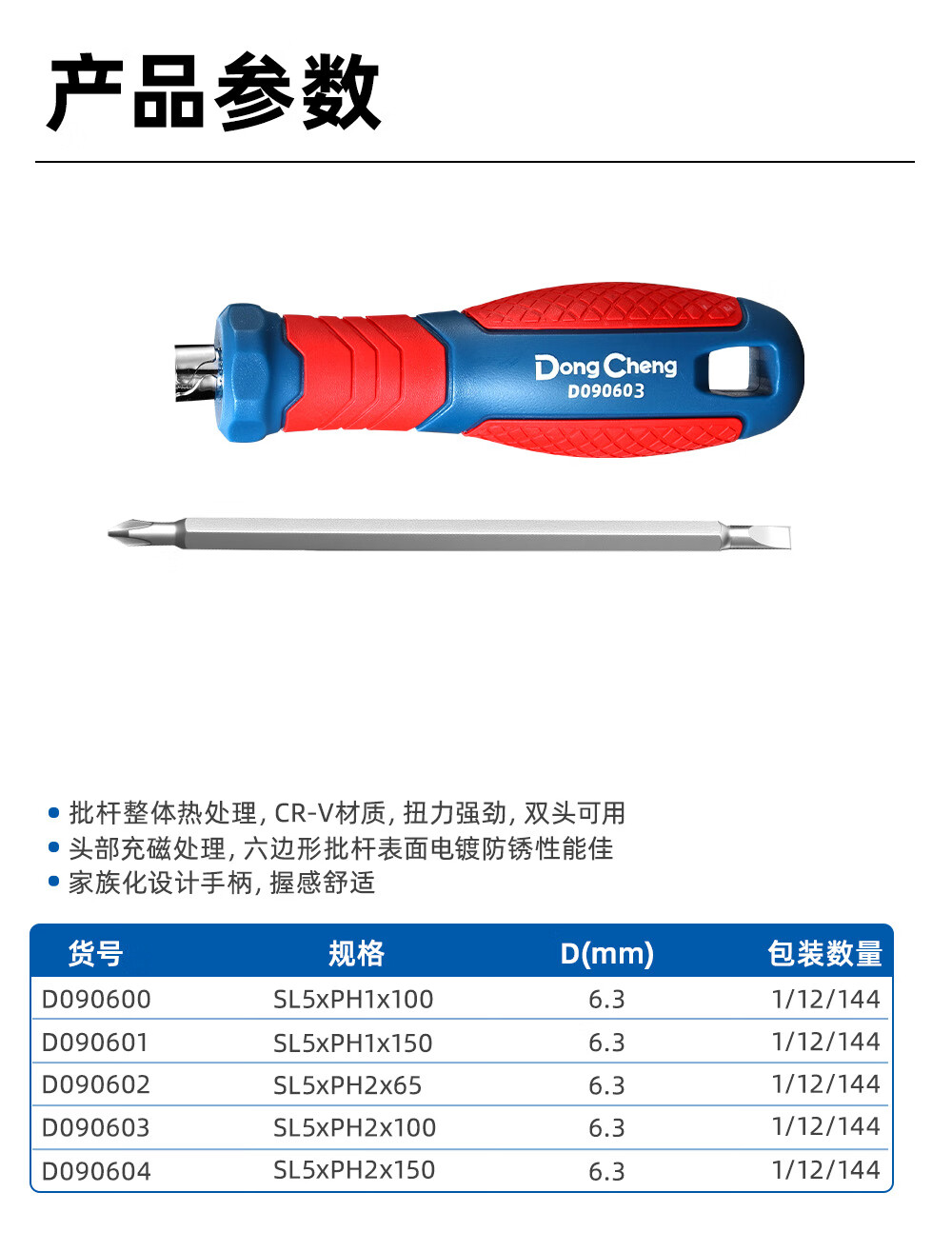 东成 双色塑柄两用螺丝批 SL5×PH1×100双色塑柄两用螺丝批D090600
