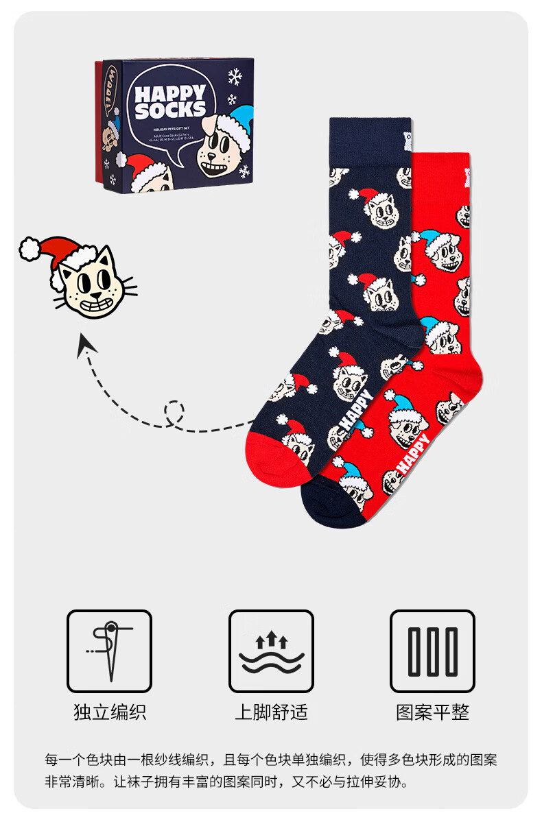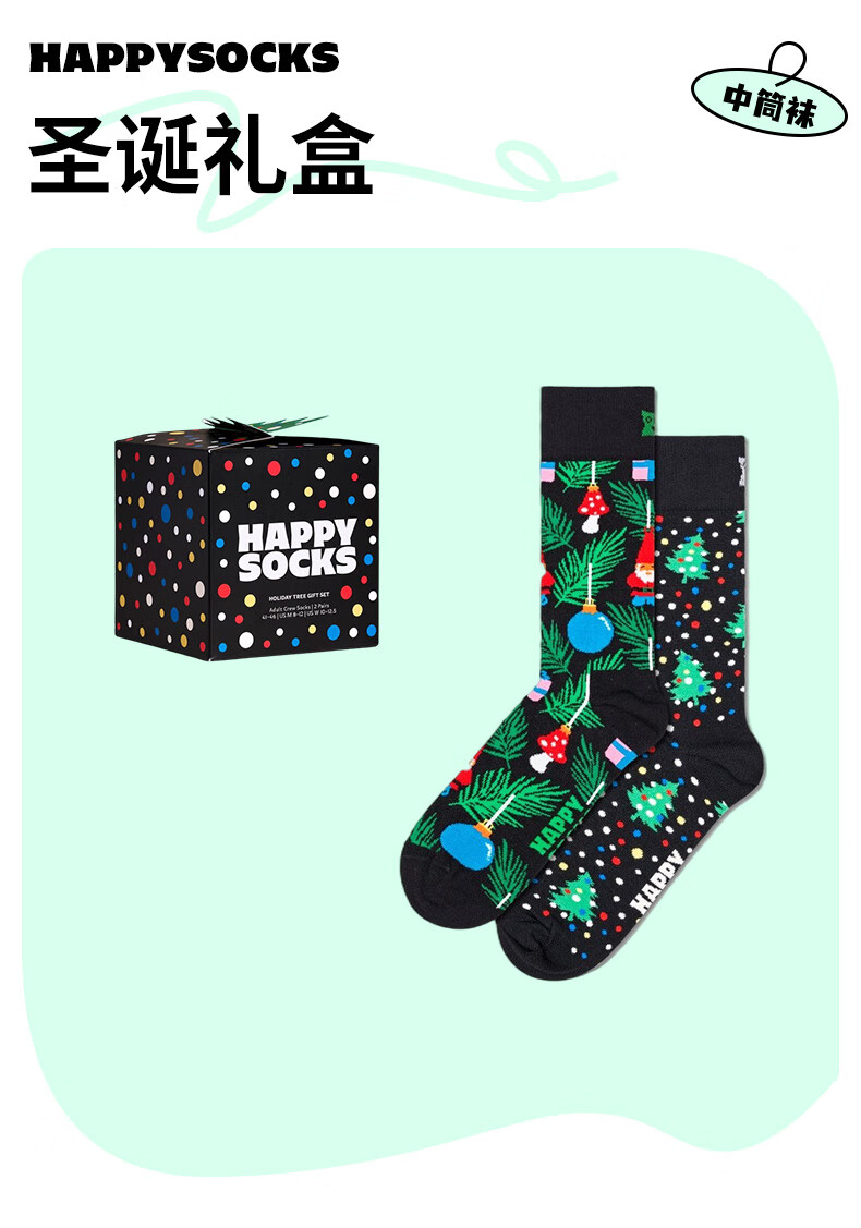 Happy Socks【新品】Happy Socks圣诞袜子秋冬ins潮牌圣诞2双装礼盒 两棵圣诞树 2双 M 36-40