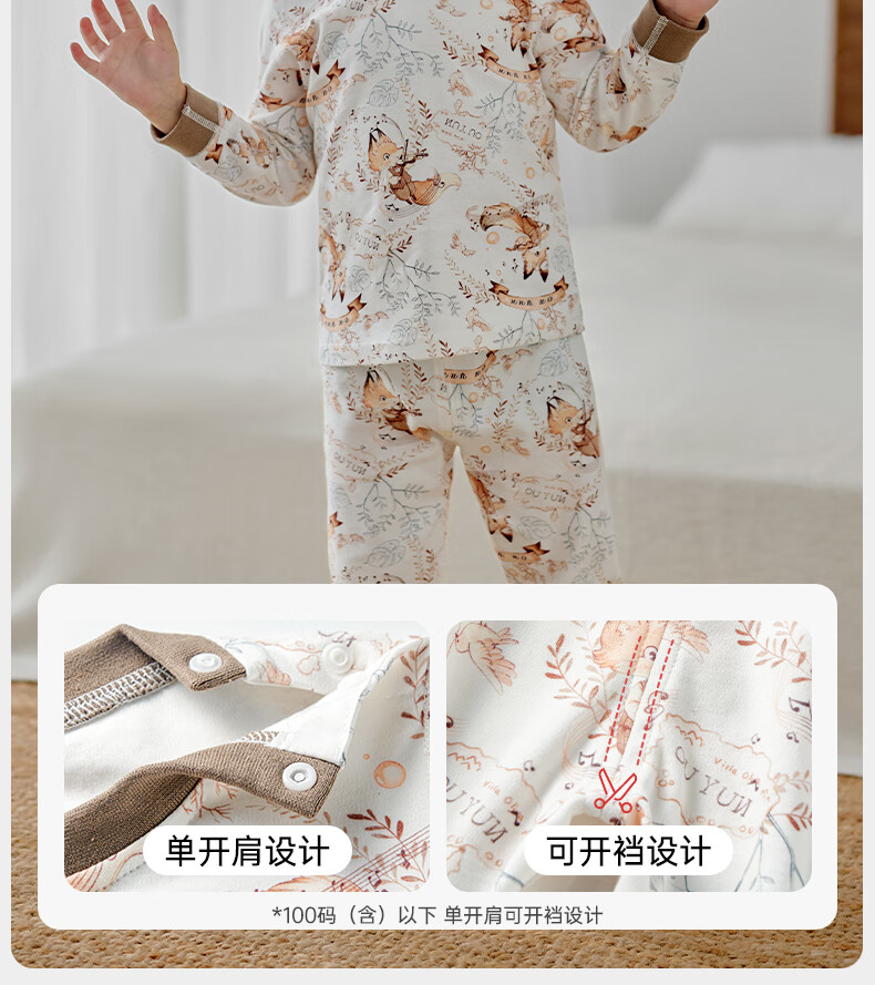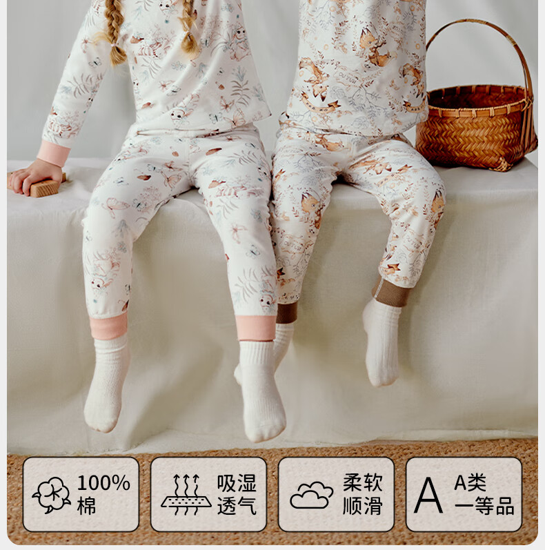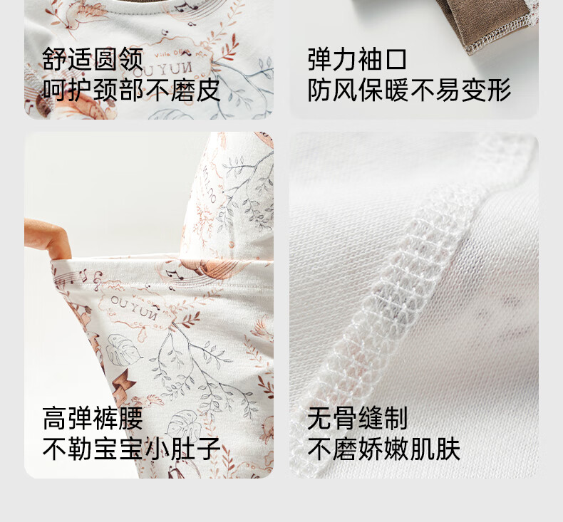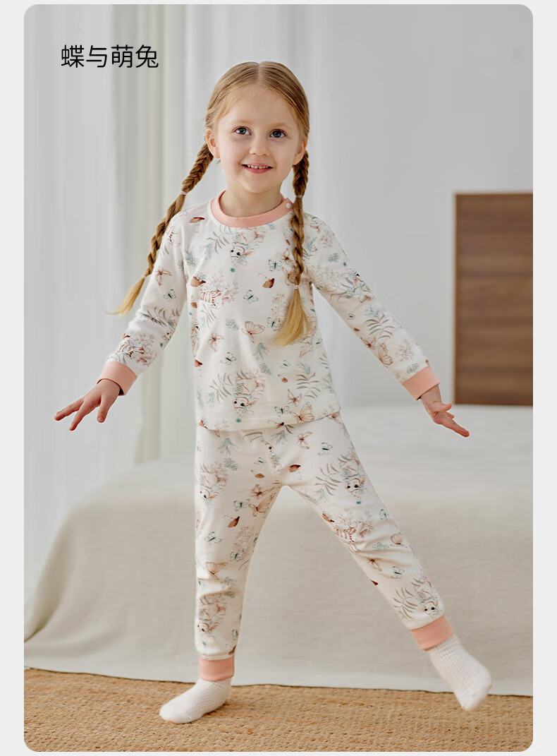 欧孕儿童秋衣秋裤套装男童女童保暖内衣全棉A类 蝶与萌兔【10A抗菌新疆棉】 150 【建议身高145-155cm】