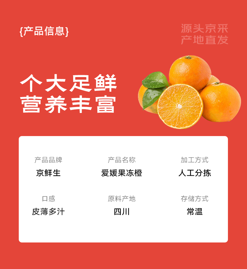 京鲜生 四川爱媛38号果冻橙 净重4.5-5斤 单果170g+ 源头直发包邮