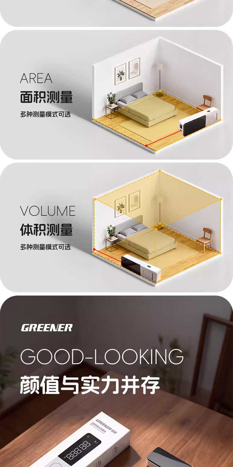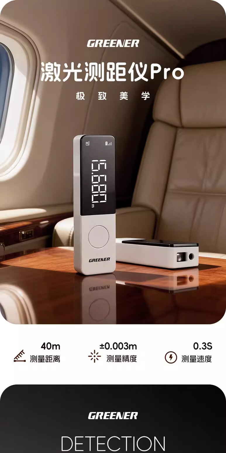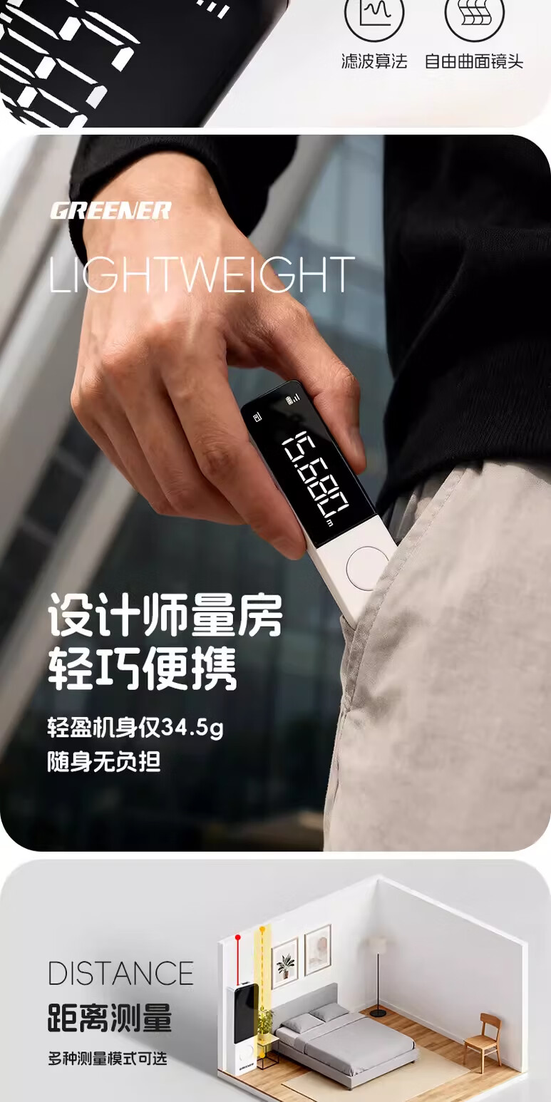 绿林(GREENER)激光测距仪红外线测量仪工业级高精度锂电量房手持式测量仪器 40米-高雅白【多功能测量+type-c直充】