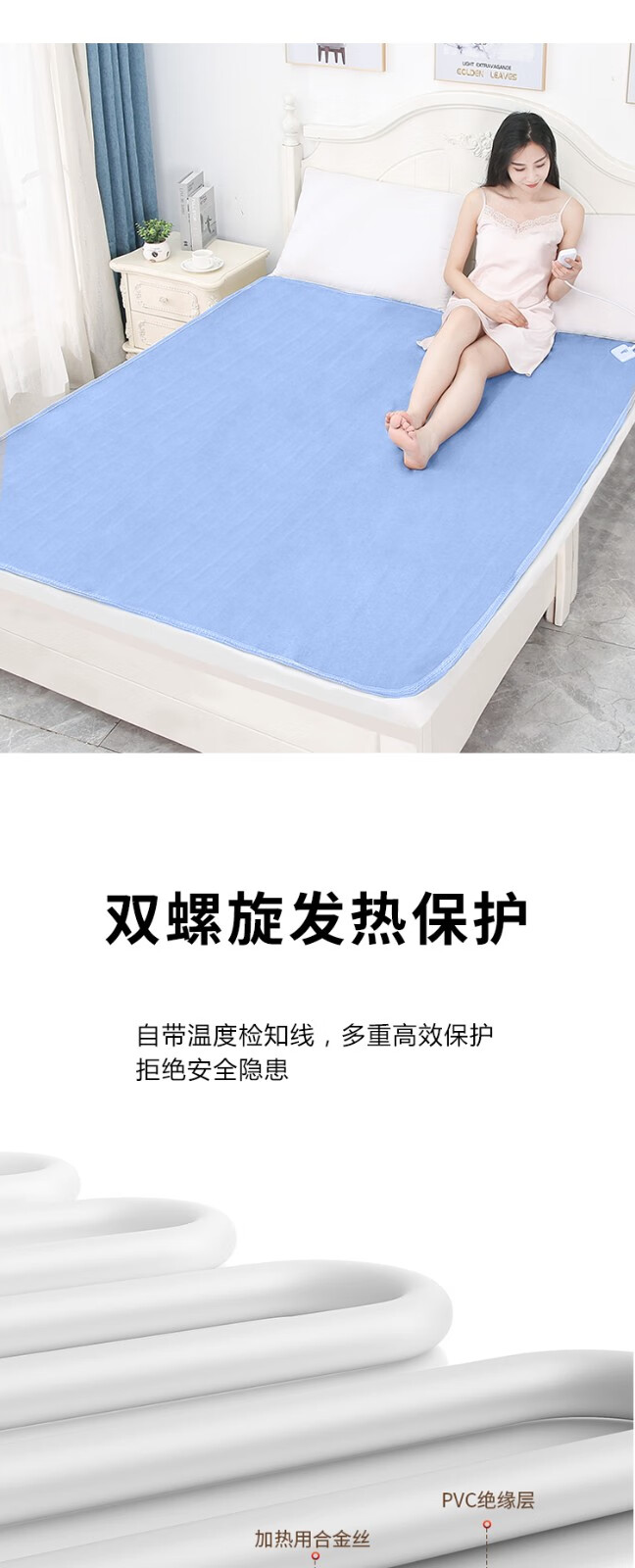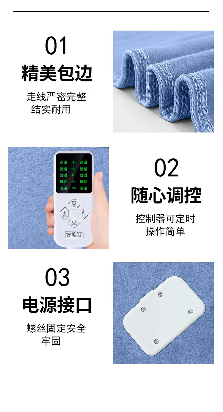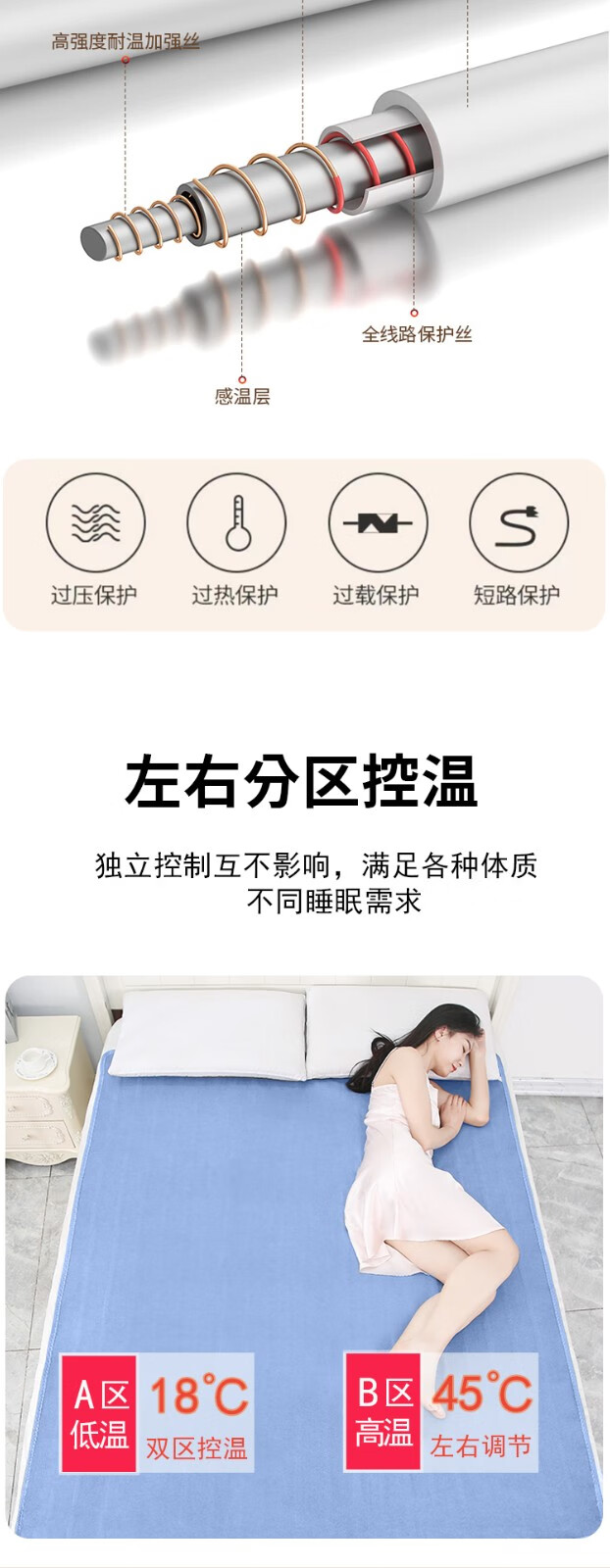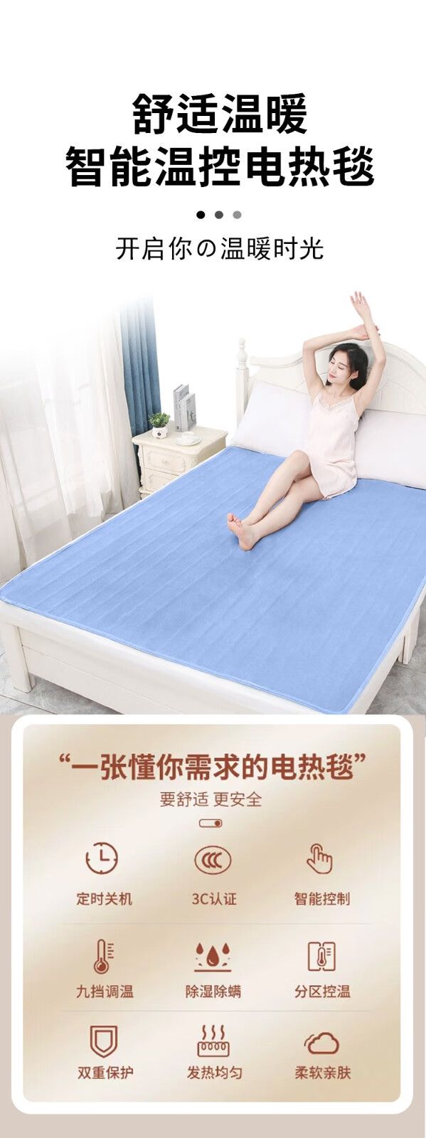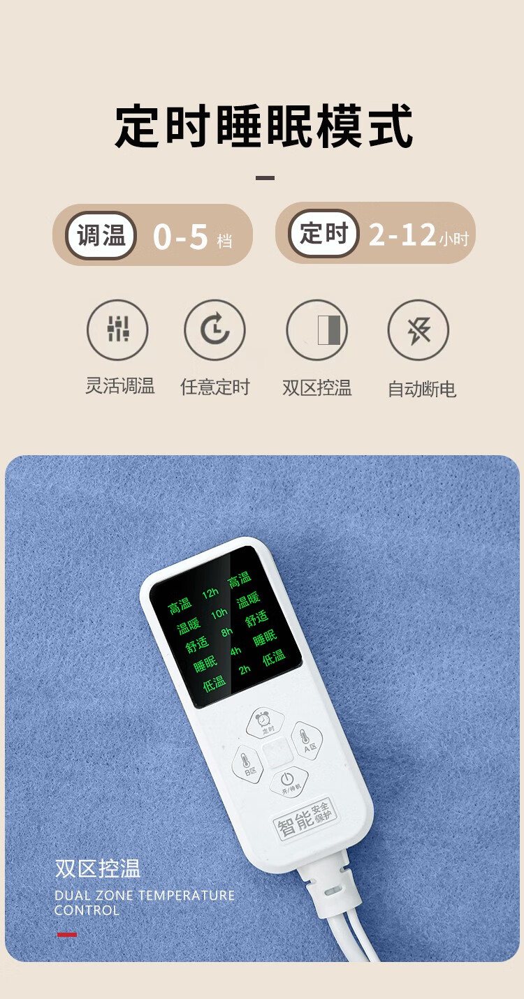 贵人梦 电热毯(长2.0米宽1.8米)单人双人双控智能定时家用速热电褥子 双人单控长1.5米*1.2米宽/高低档