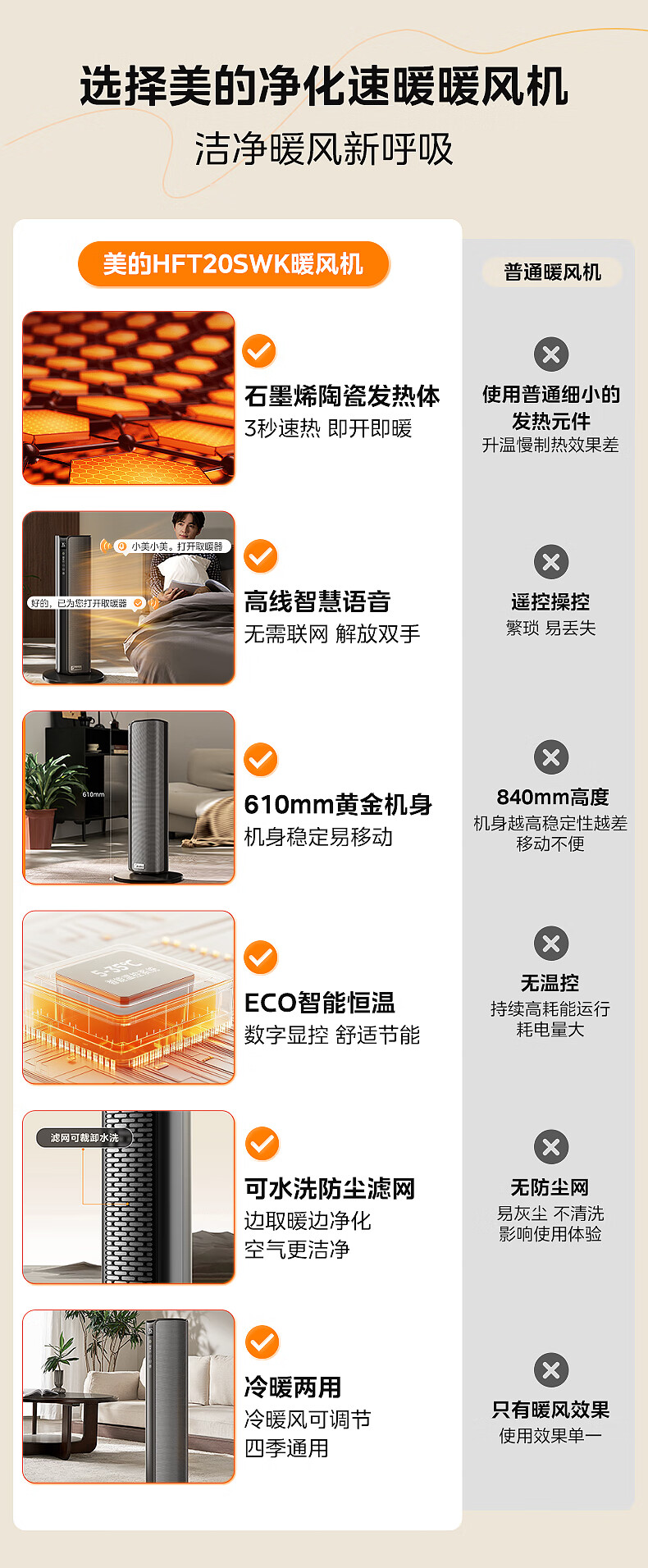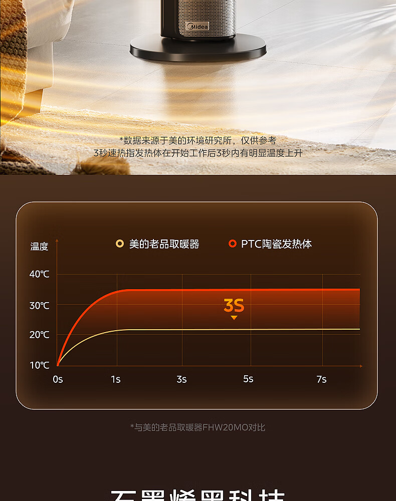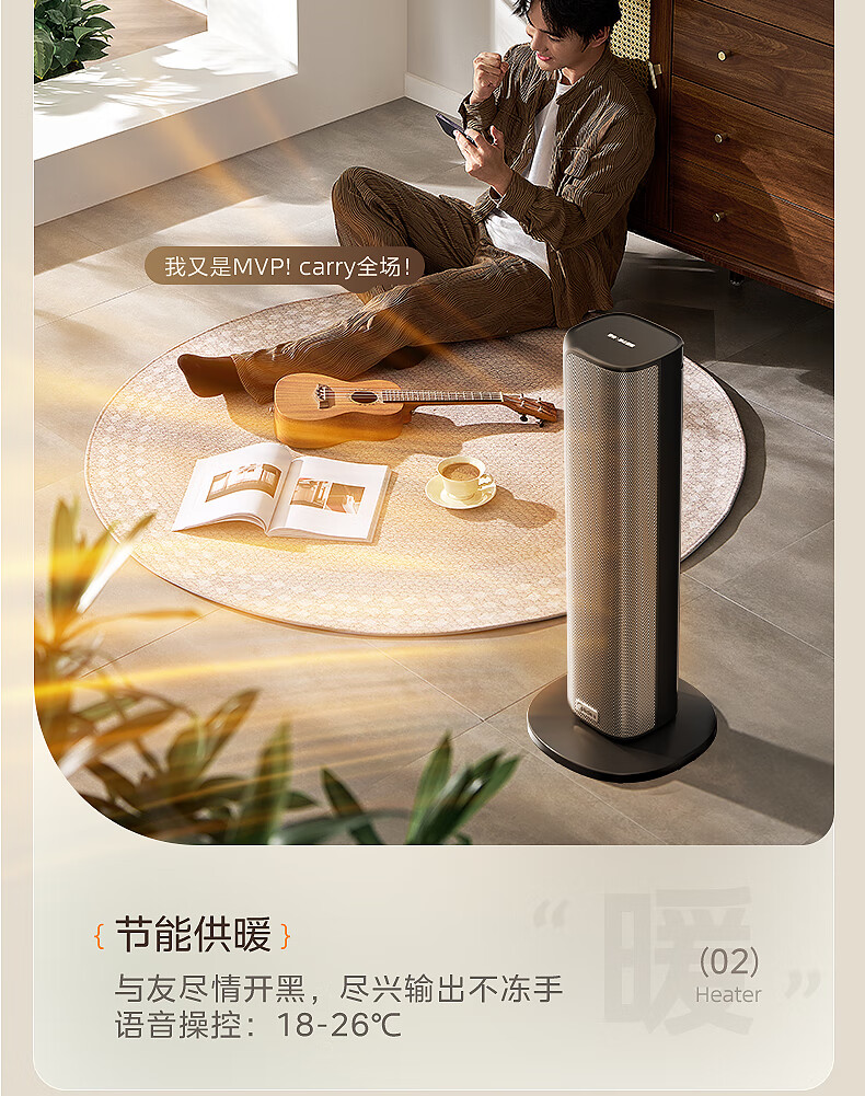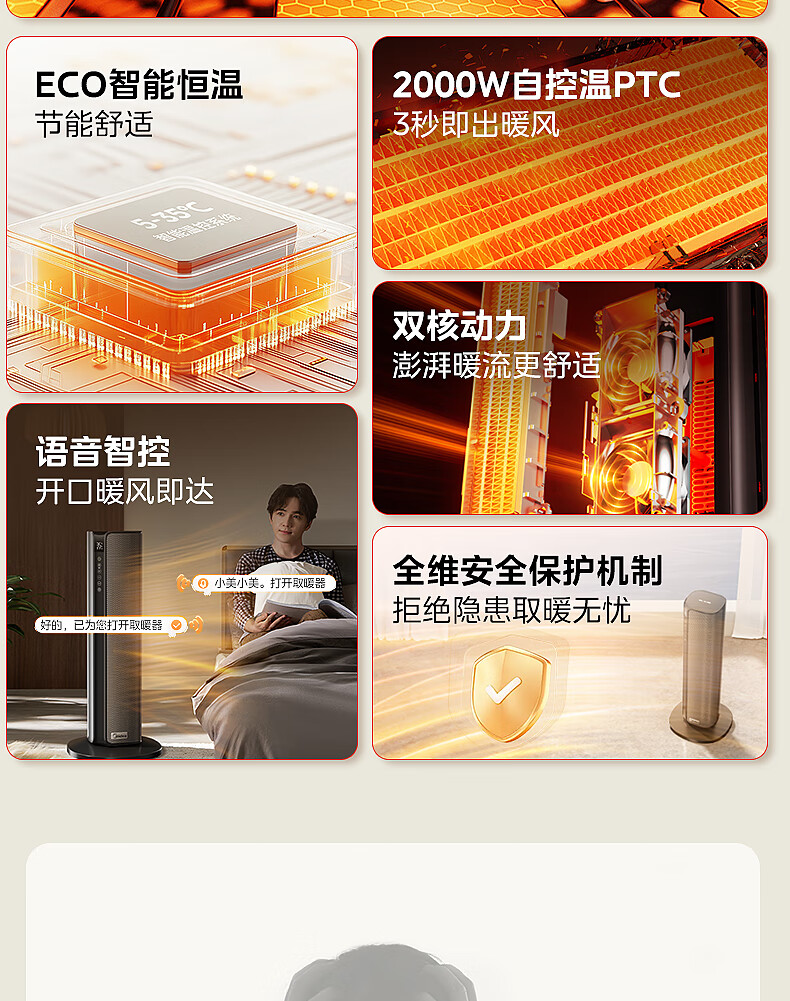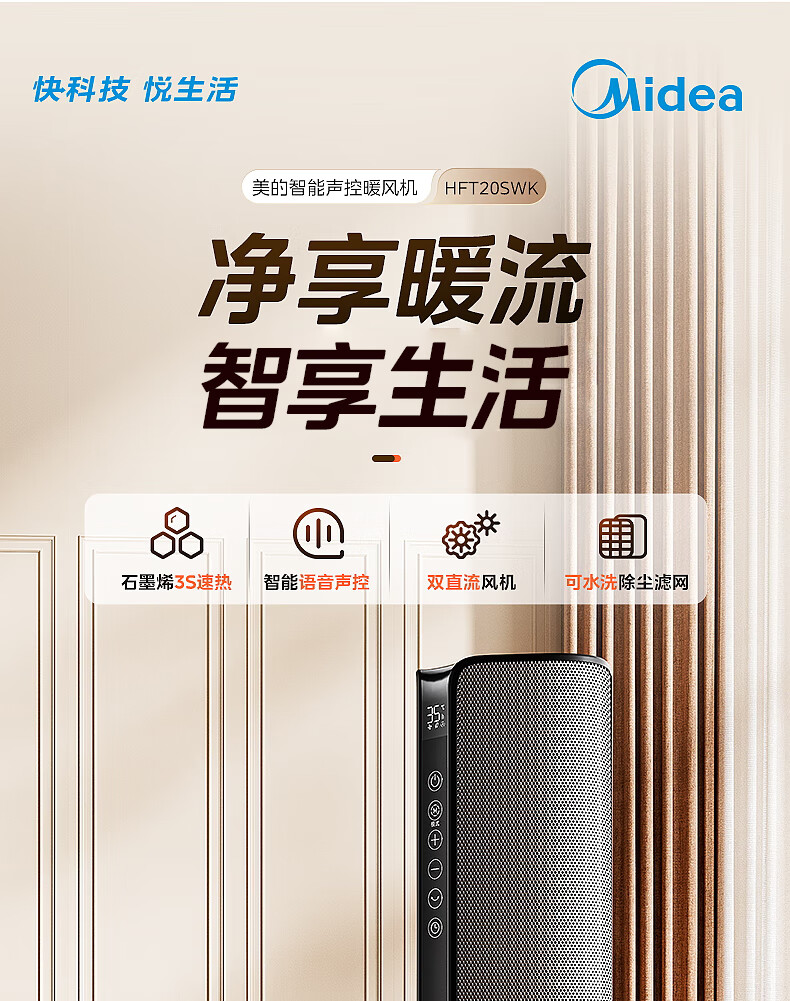 美的(Midea)【金榜单品】石墨烯智能语音暖风机取暖器 家用电暖气电暖器 热风机电暖风全屋速热小太阳HFT20SWK
