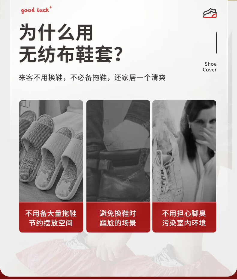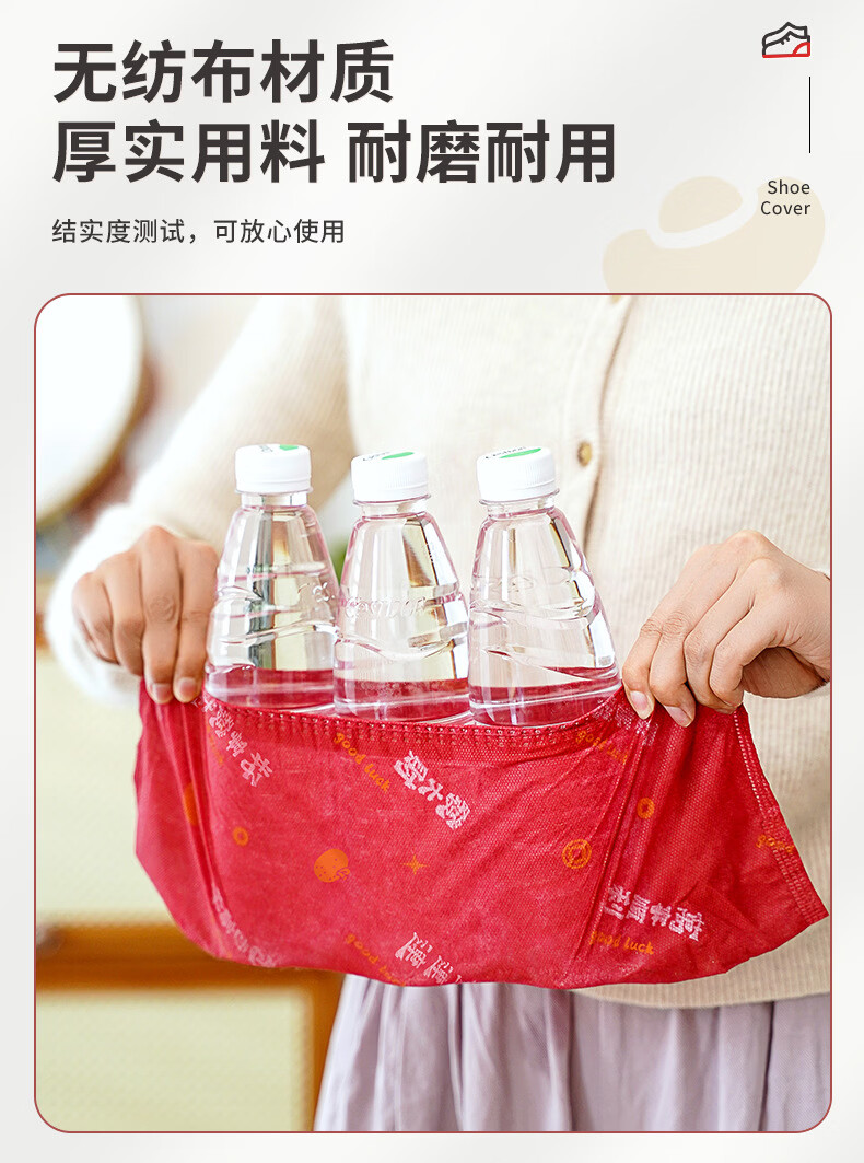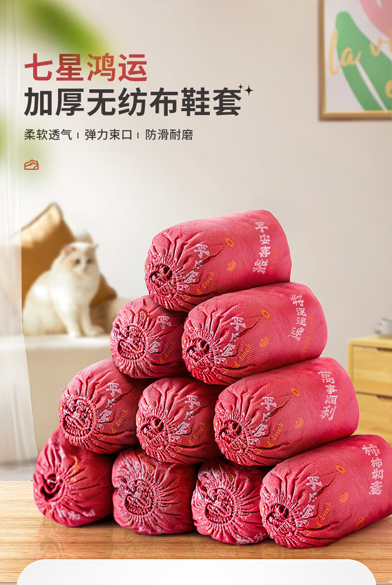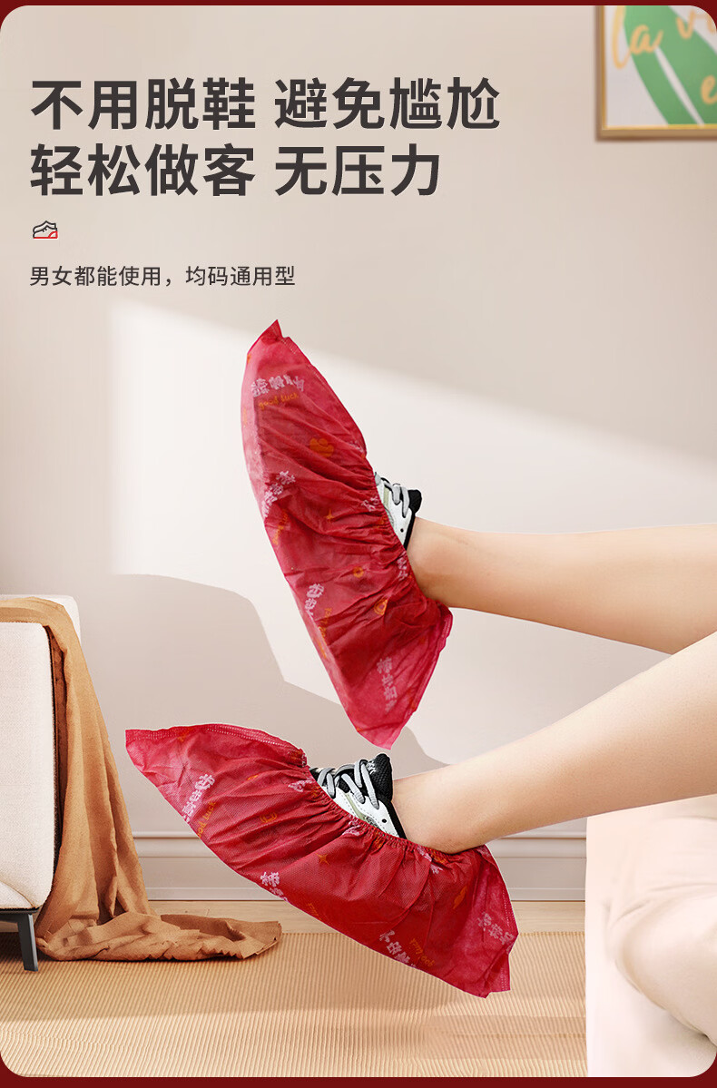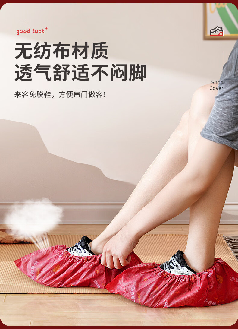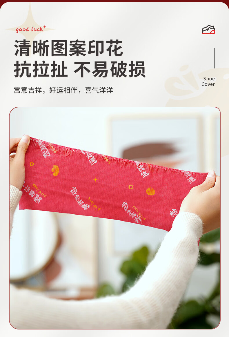 恬舒2026新年一次性无纺布鞋套马年客厅室内家用防滑加厚过年春节装饰 【柿柿如意】鞋套(50个装)-无纺布