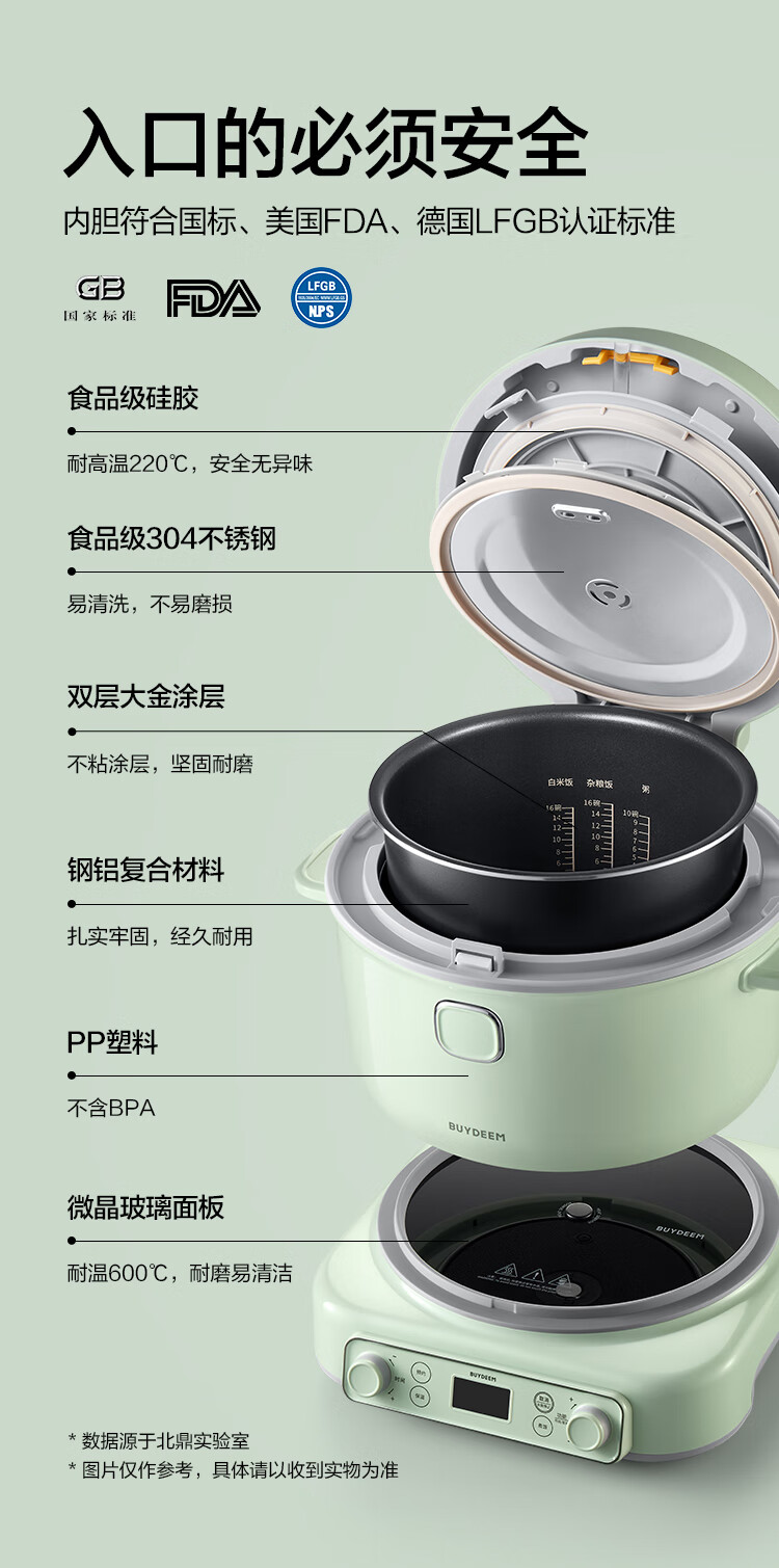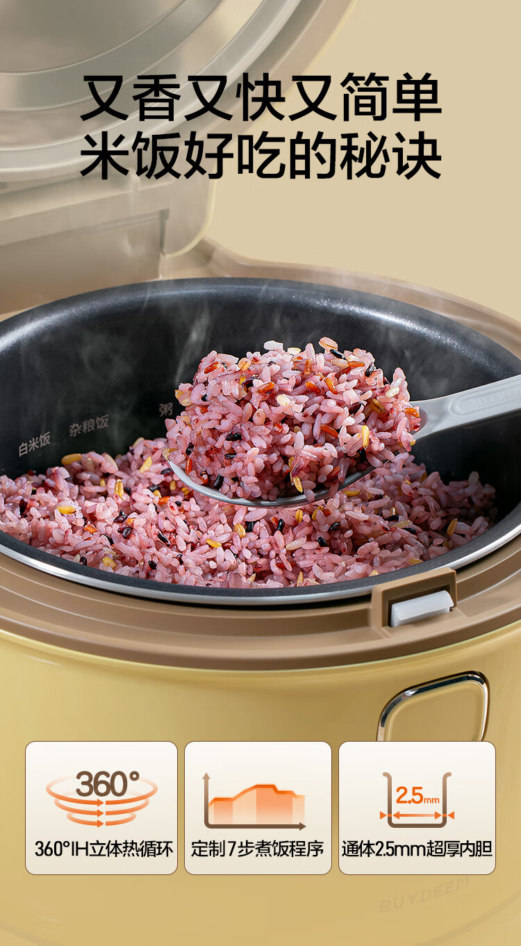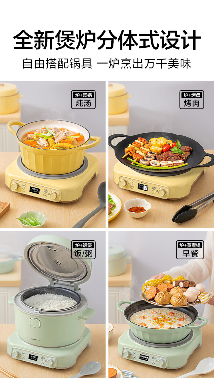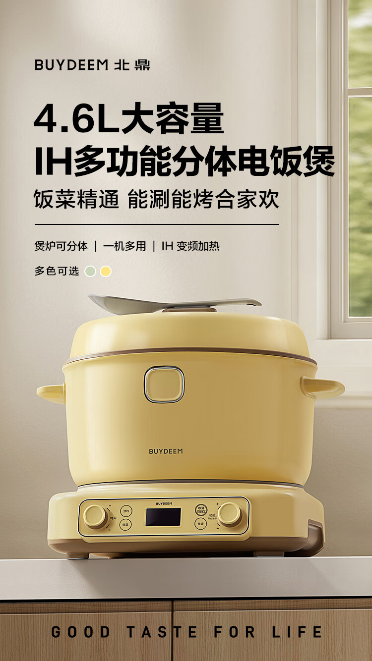 北鼎(Buydeem)分体式电饭煲 家用4-8人电饭锅 多功能大容量煮饭锅煮粥锅 IH加热智能预约定时不粘内胆 【小鹅黄|全家福】电饭煲五件套 4.6L