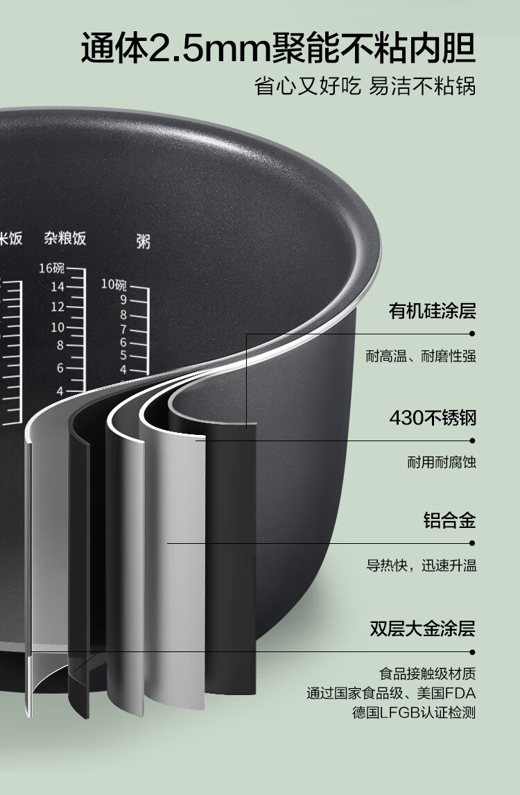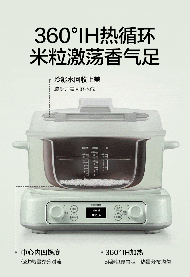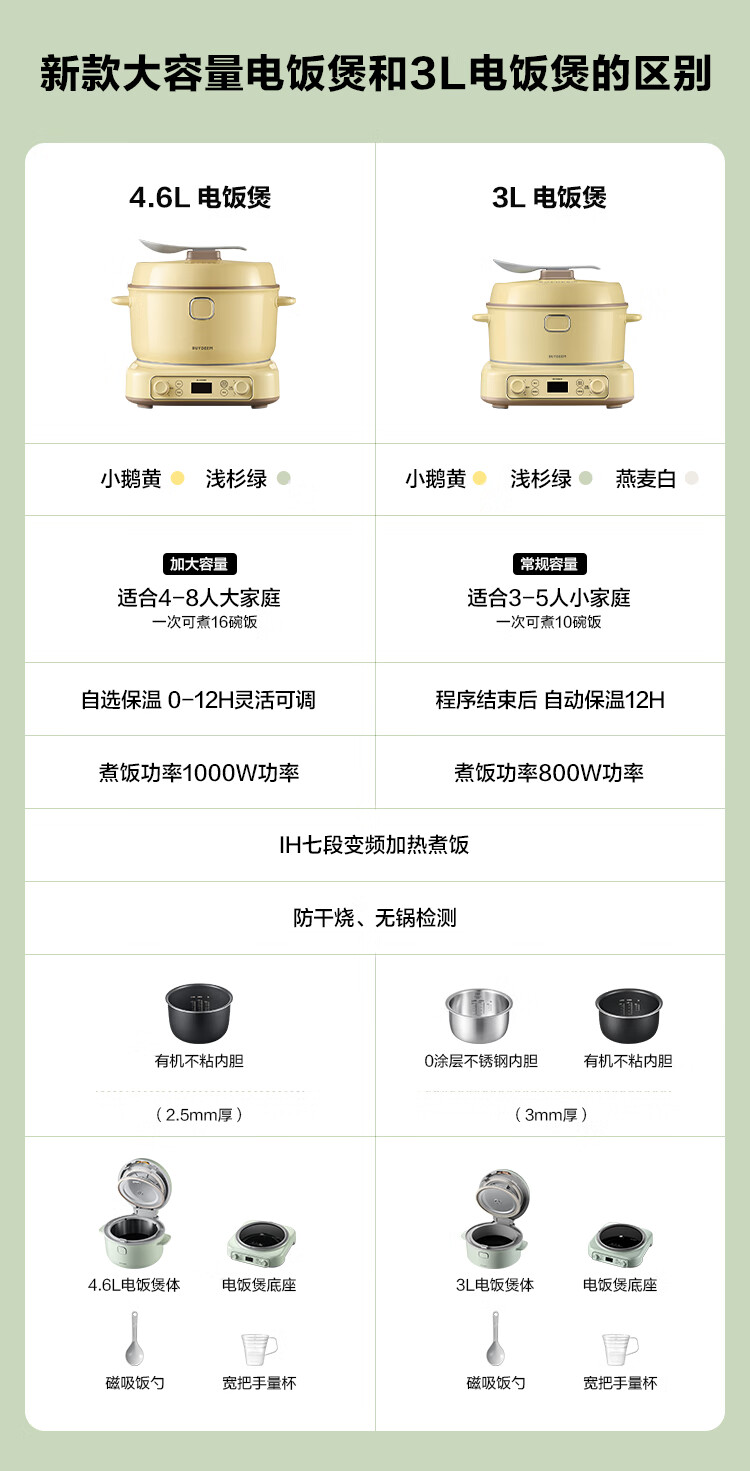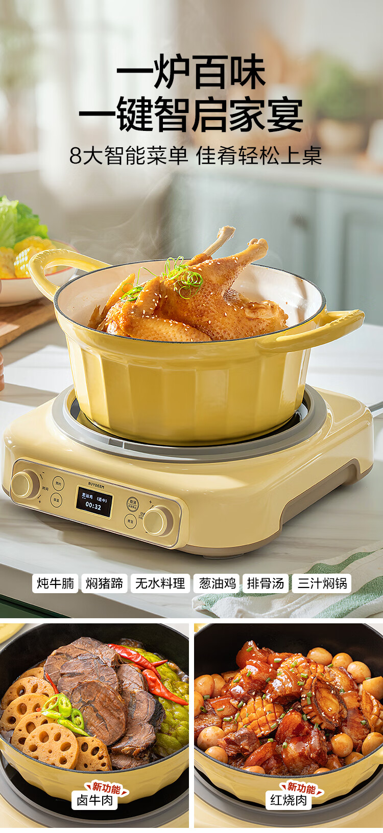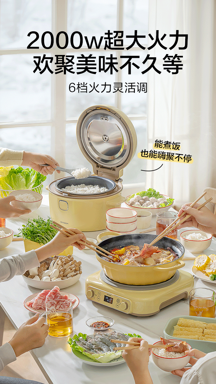 北鼎(Buydeem)分体式电饭煲 家用4-8人电饭锅 多功能大容量煮饭锅煮粥锅 IH加热智能预约定时不粘内胆 【小鹅黄|全家福】电饭煲五件套 4.6L