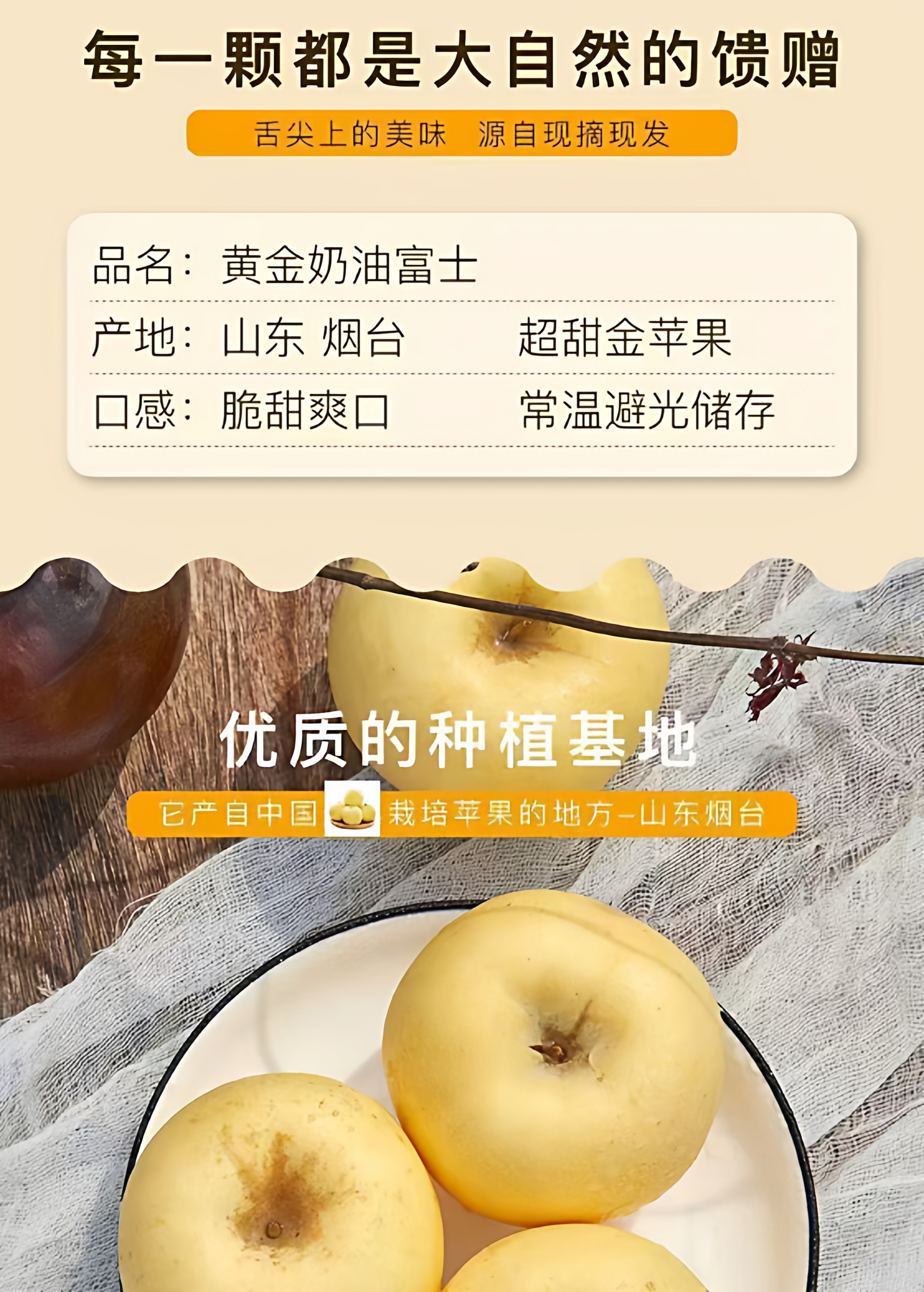正宗烟台黄金奶油富士苹果 新鲜脆甜 2斤装