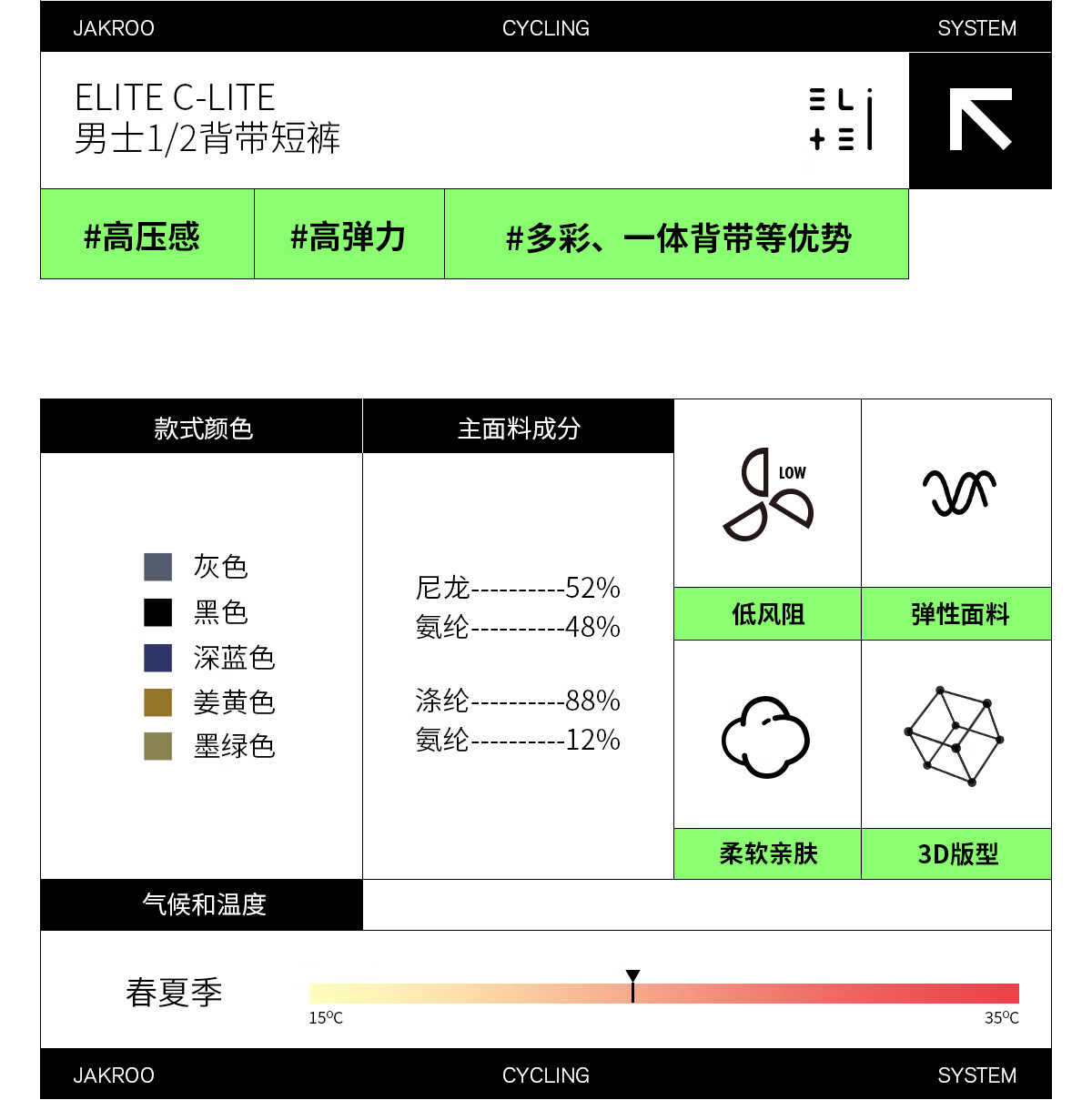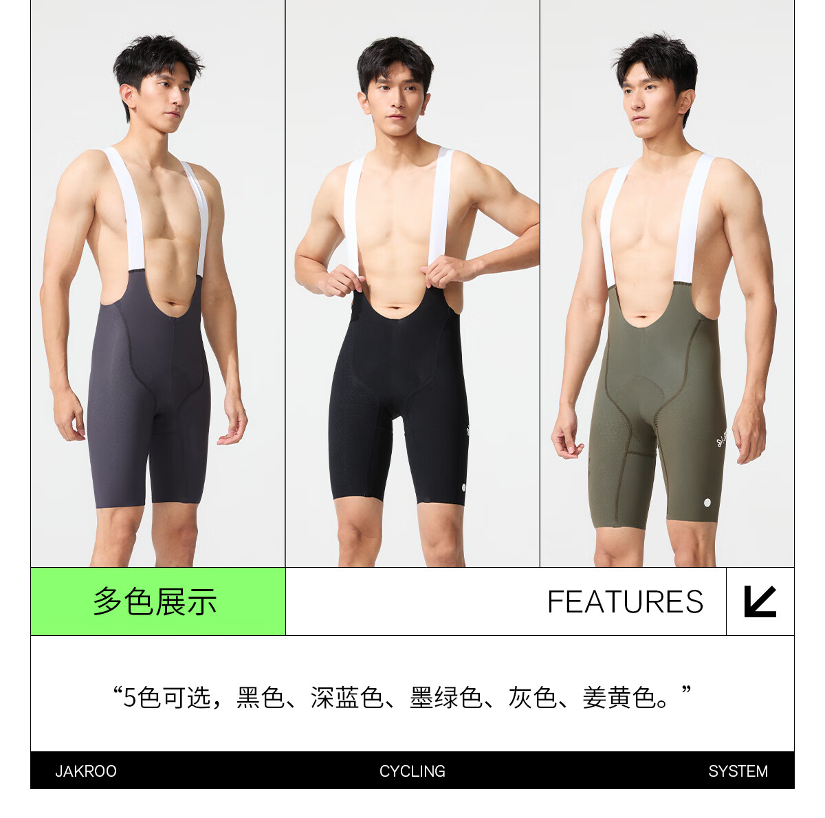 捷酷春夏新品ELITE C-lite男士竞技款双箭头垫裆骑行多色背带短裤 黑色(双箭头垫裆) 3XL