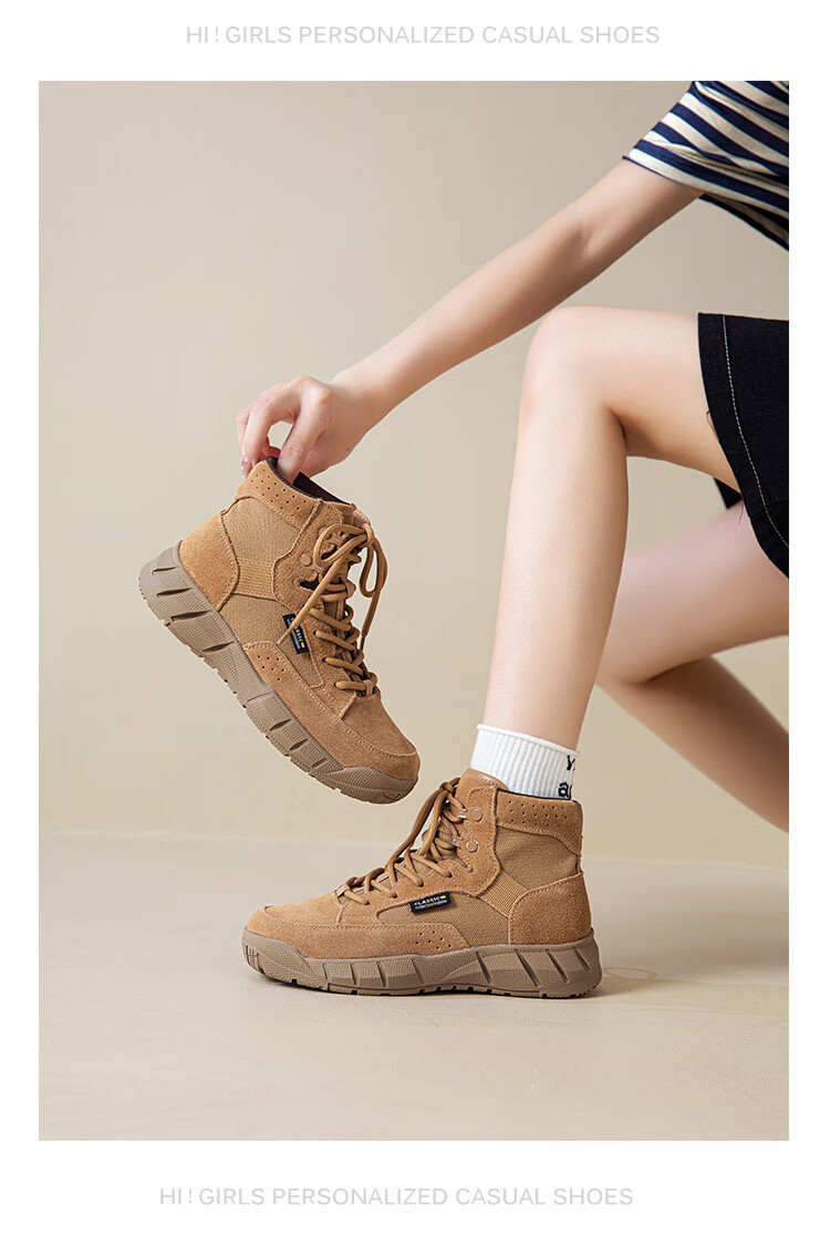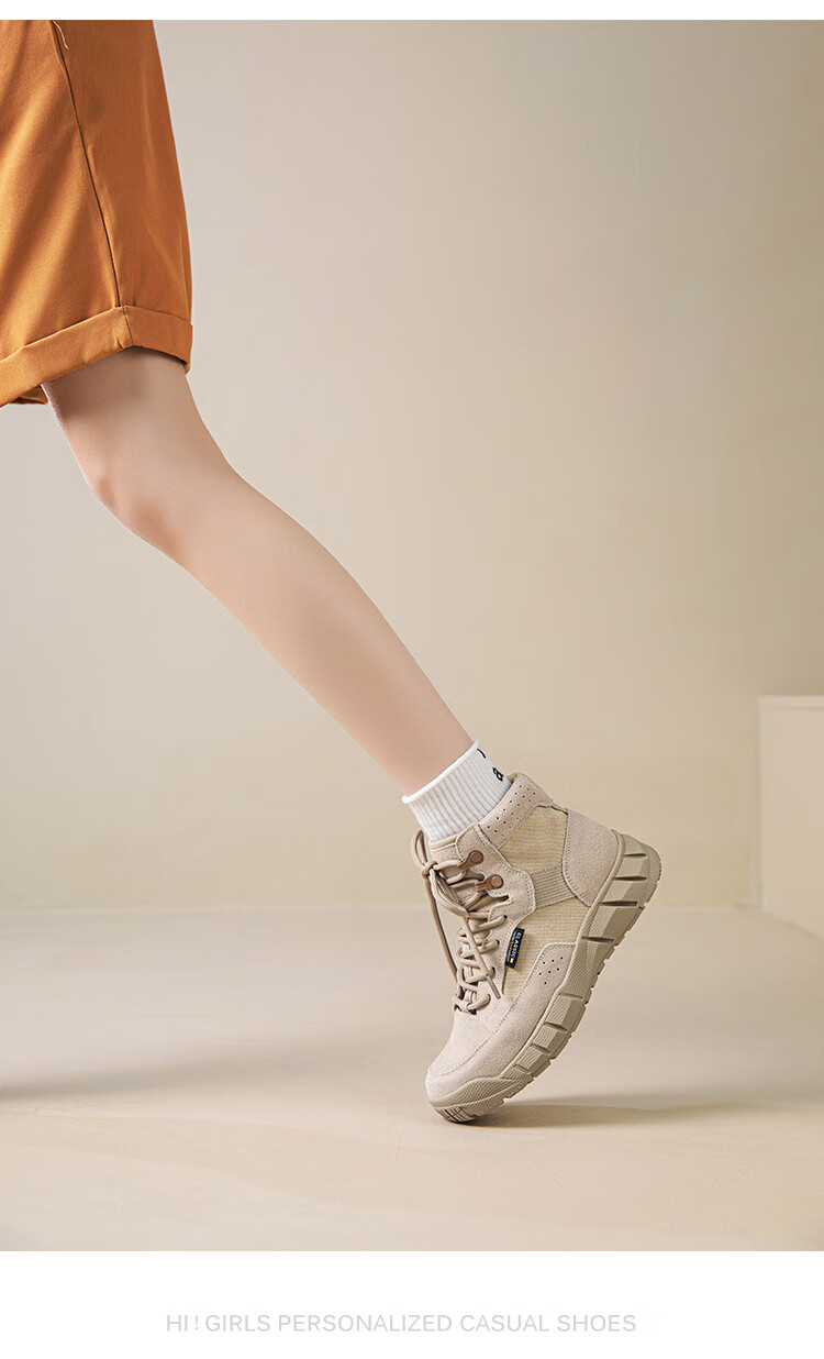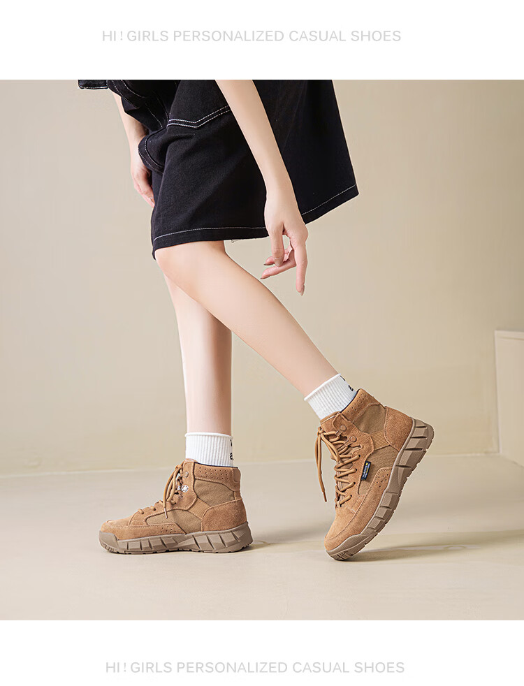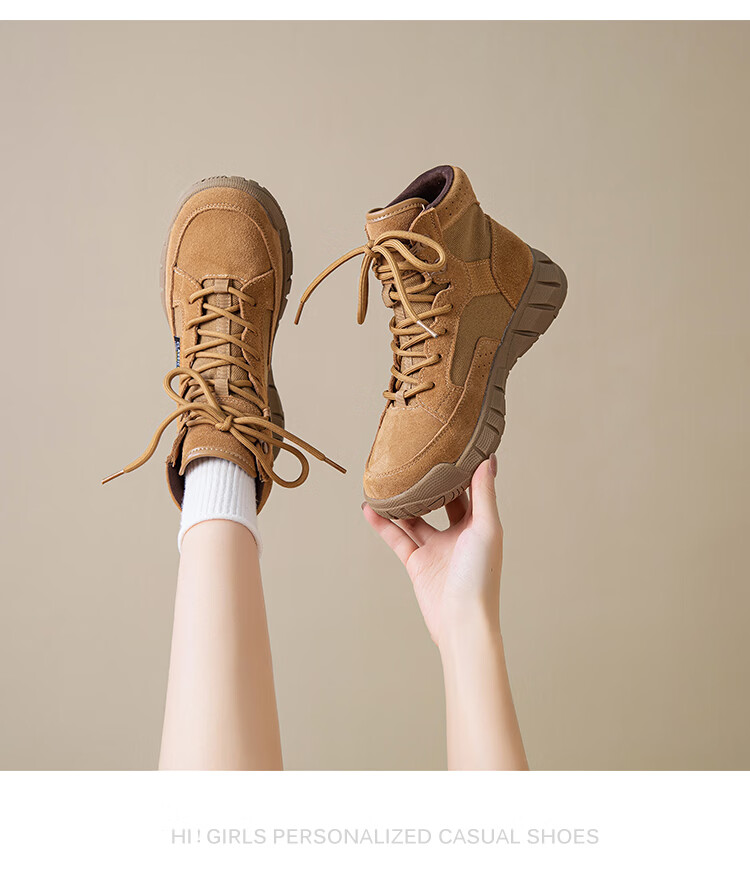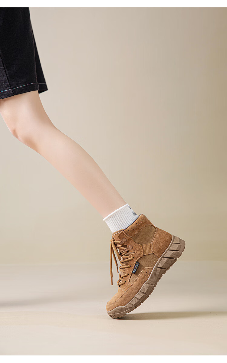稻草人(MEXICAN)真皮马丁靴女2026新款靴子短靴女款超火秋季棕色厚底沙漠靴登山靴 棕色单里 牛皮 35