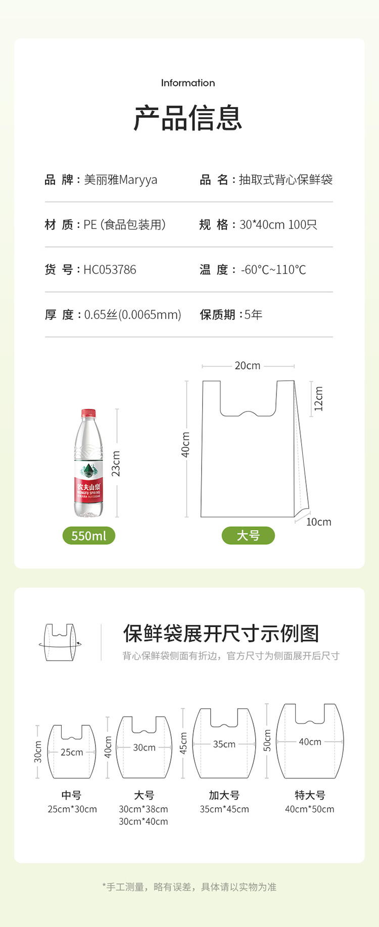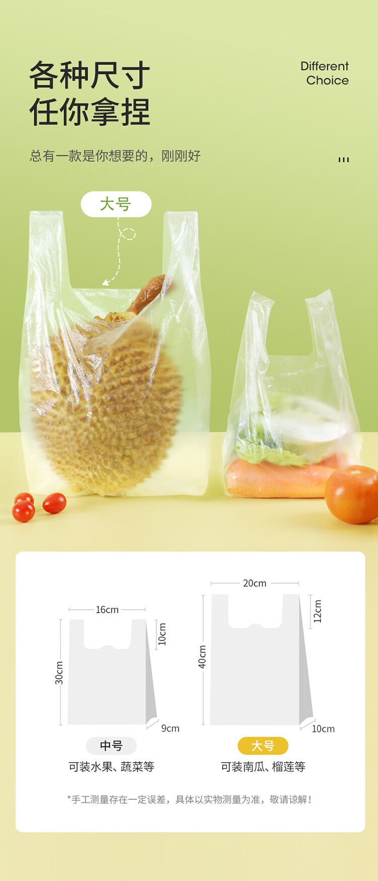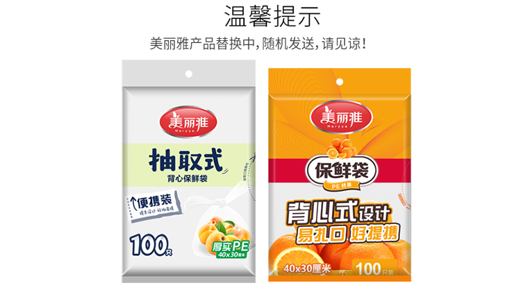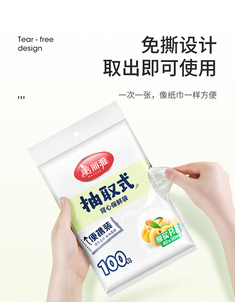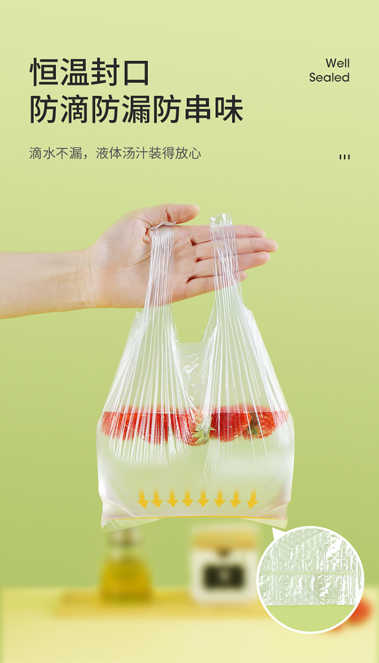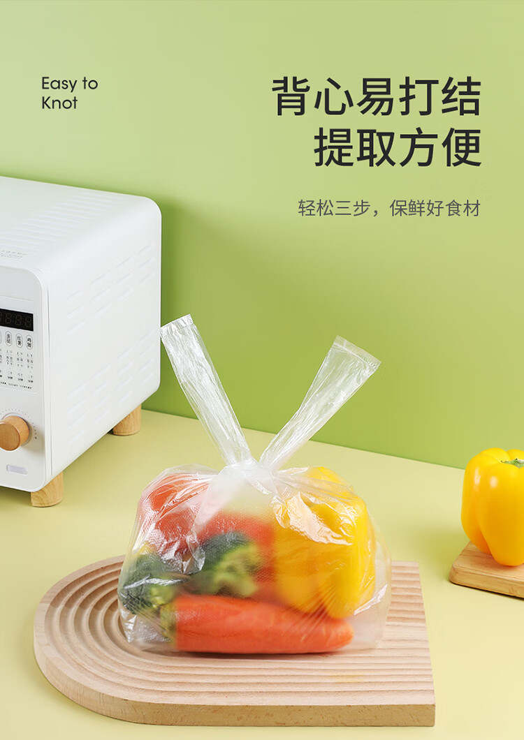 美丽雅 一次性保鲜袋食品级背心100只大号40cm*30cm塑料袋加厚冷藏