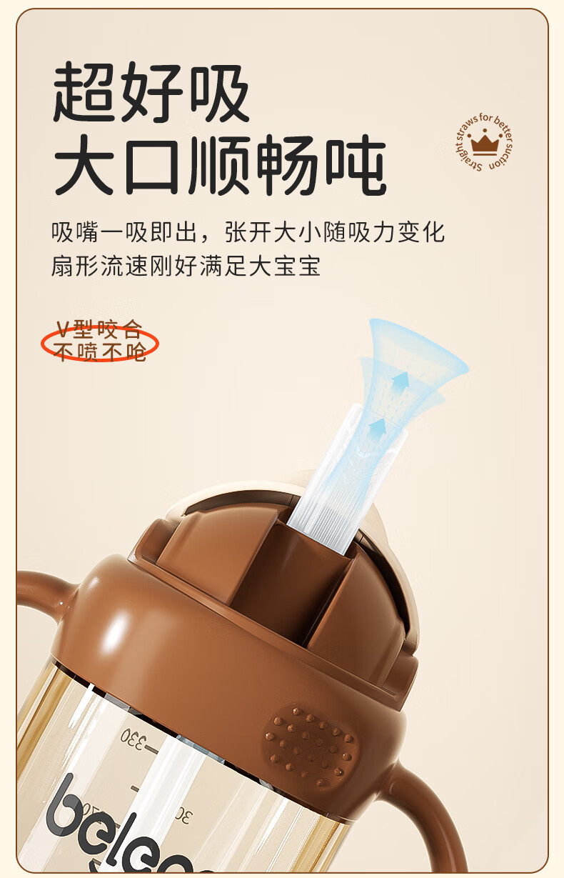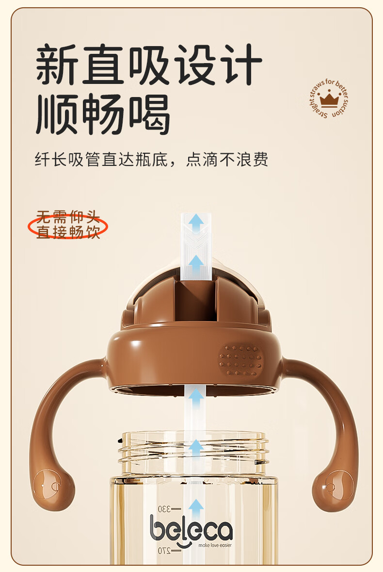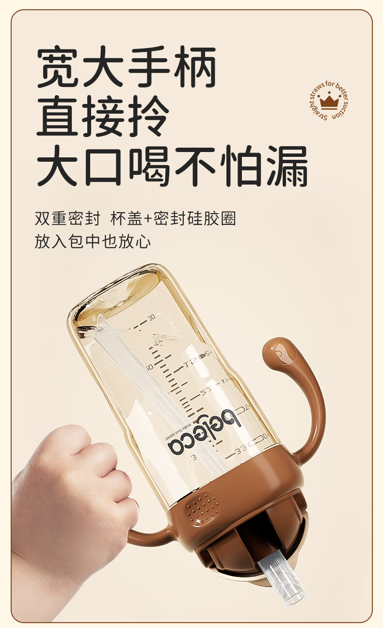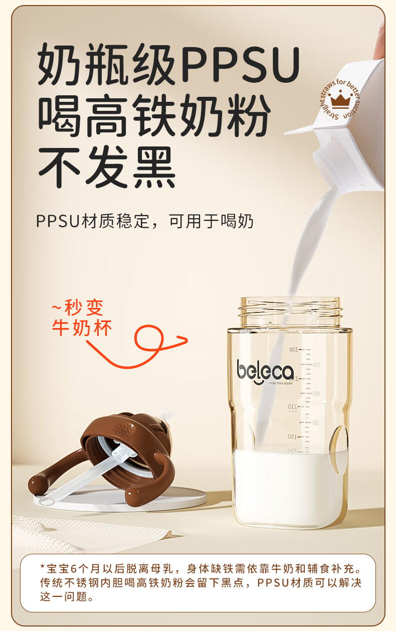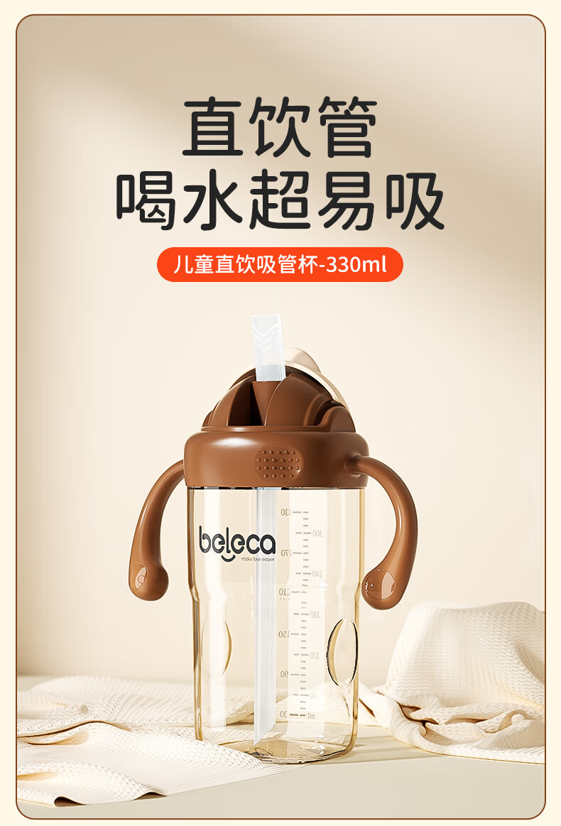 beleca吸管奶瓶大宝宝一岁以上2岁-6岁防摔防喷ppsu直饮奶瓶330ml大容量