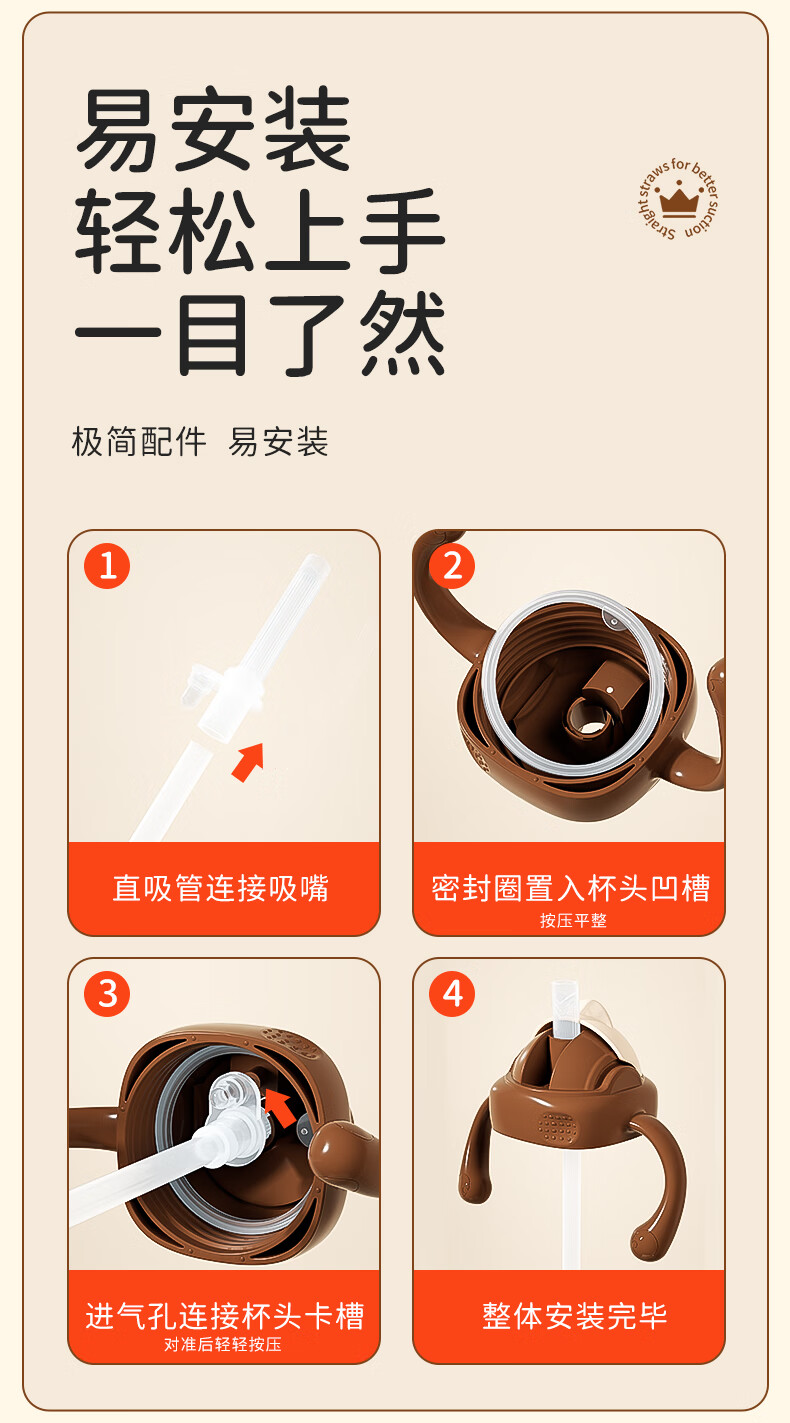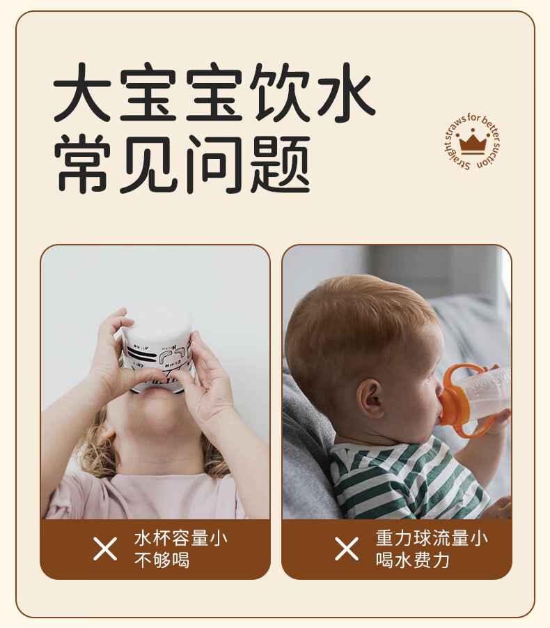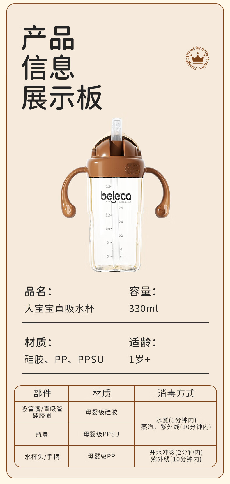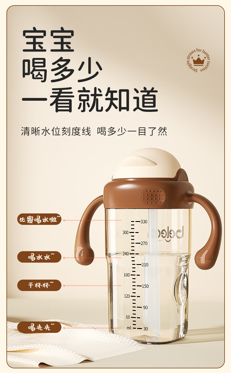 beleca吸管奶瓶大宝宝一岁以上2岁-6岁防摔防喷ppsu直饮奶瓶330ml大容量