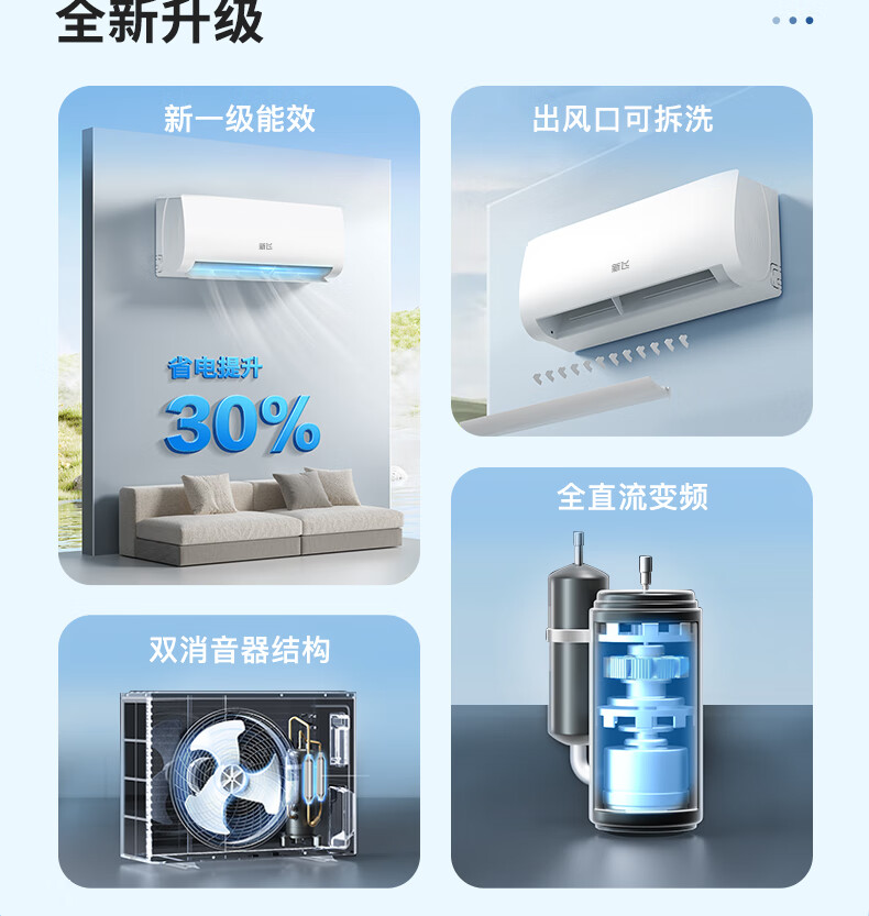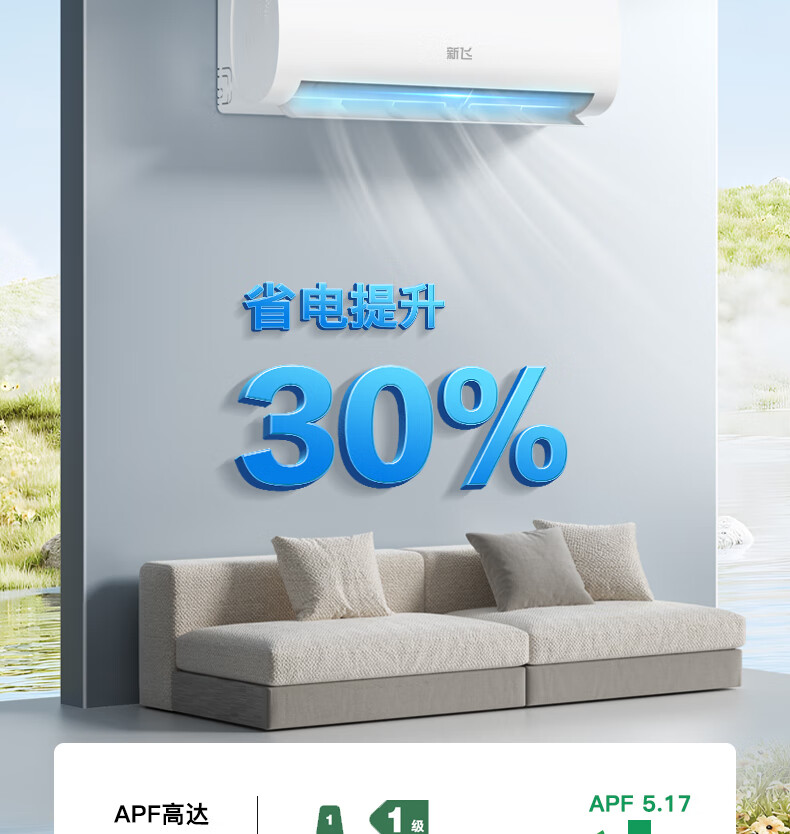 新飞空调1.5匹 新一级能效 国家补贴 超省电变频冷暖纯铜管空调 以旧换新卧室挂机KFR-35GW/J11BPD11-1