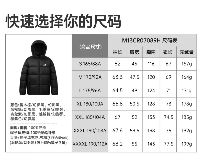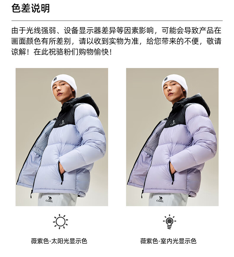骆驼火山羽绒服1.0男士鸭绒加厚防寒面包服潮款冬季外套M13CR07089H
