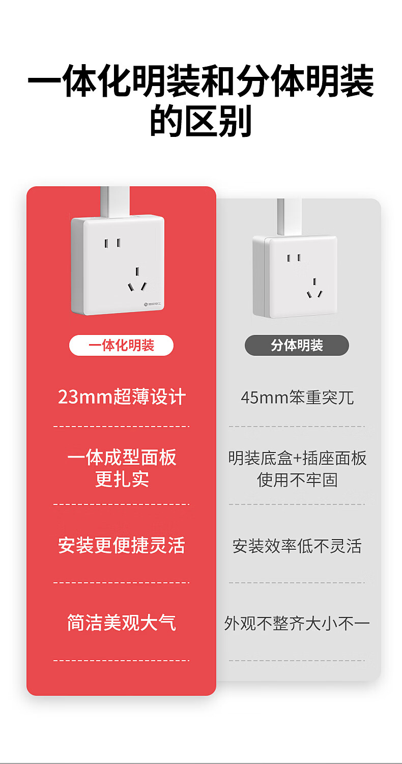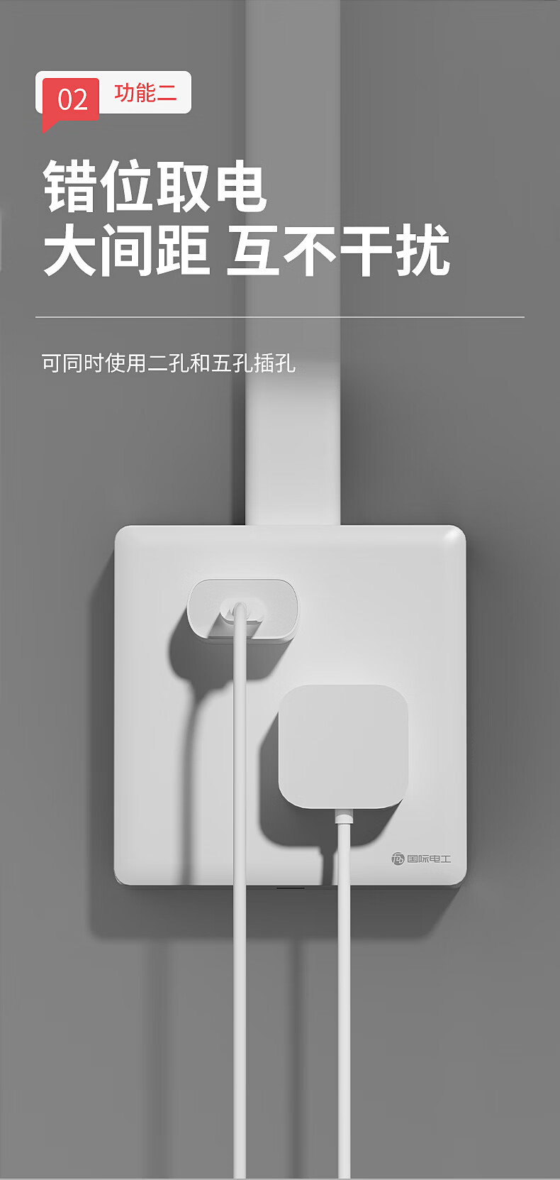 国际电工家用墙壁明装一体错位五孔插座超薄明装明装无需底盒斜五孔插座 错位五孔【白色】