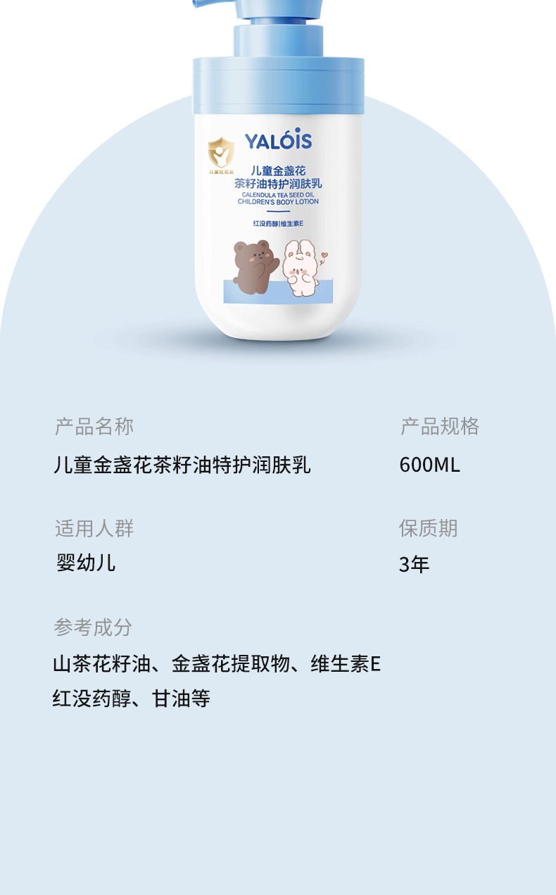 YALOIS凡士林儿童金盏花倍护润肤乳600ml四季婴幼儿身体乳面霜保湿修护