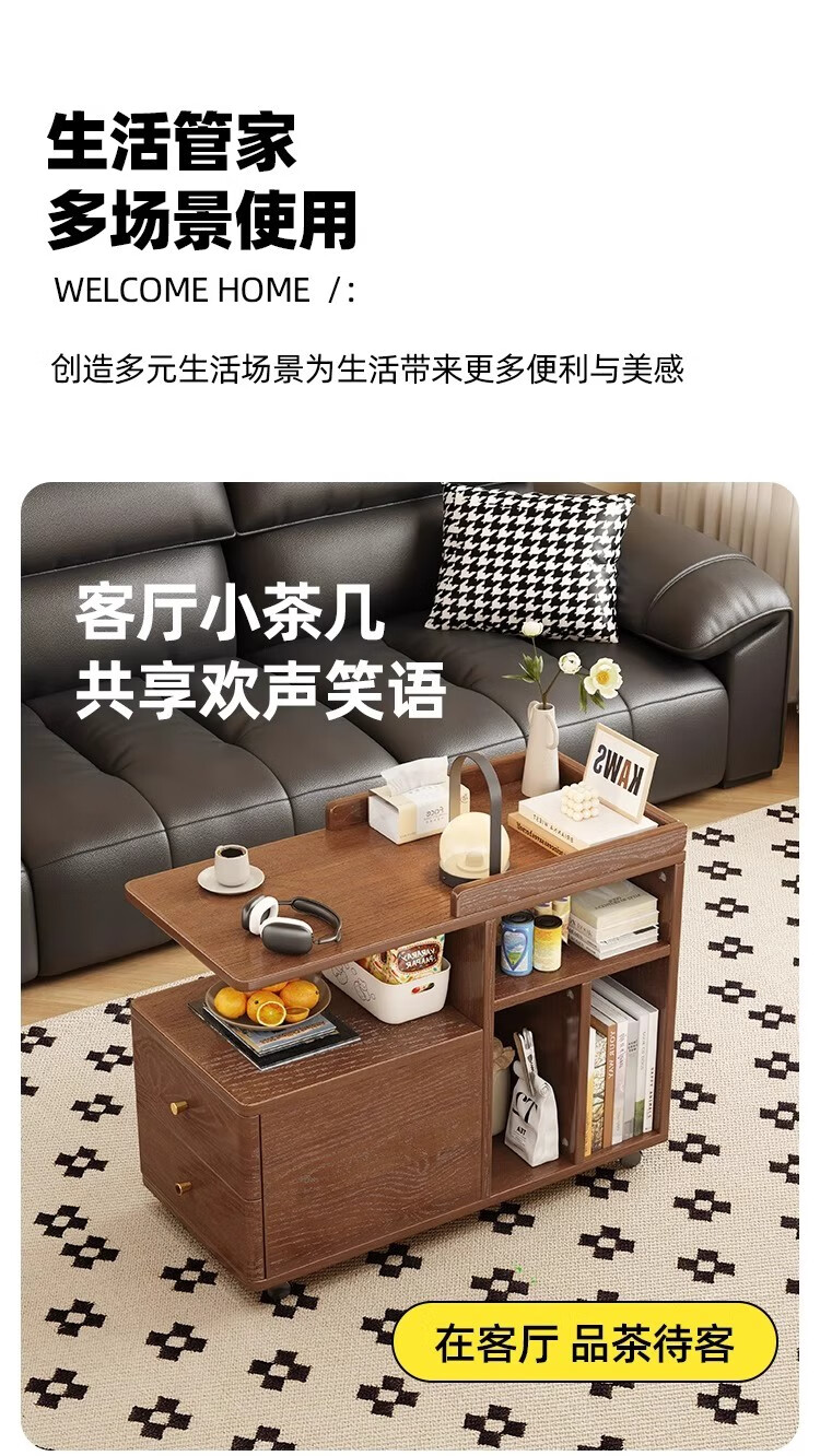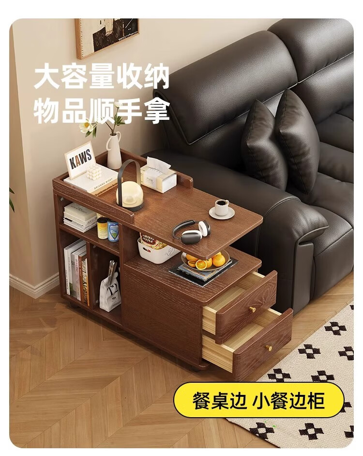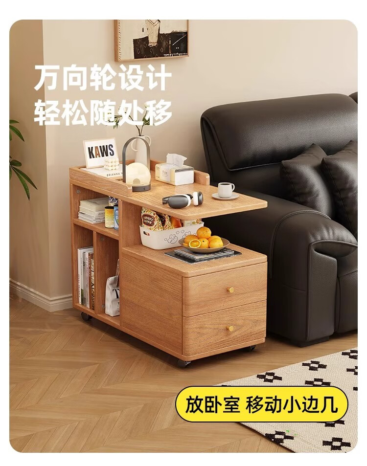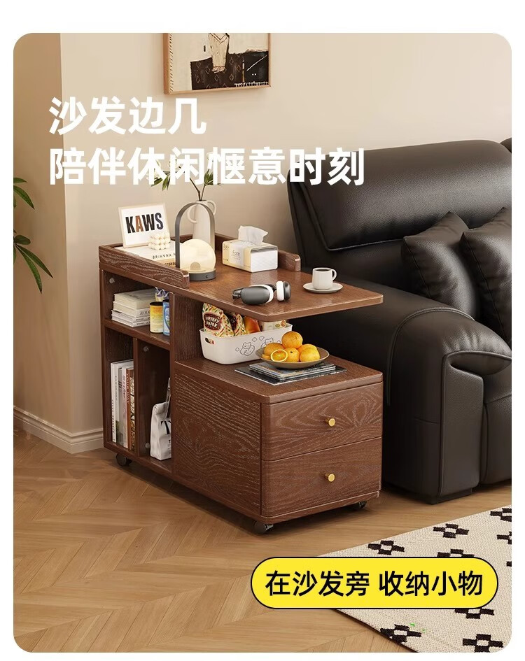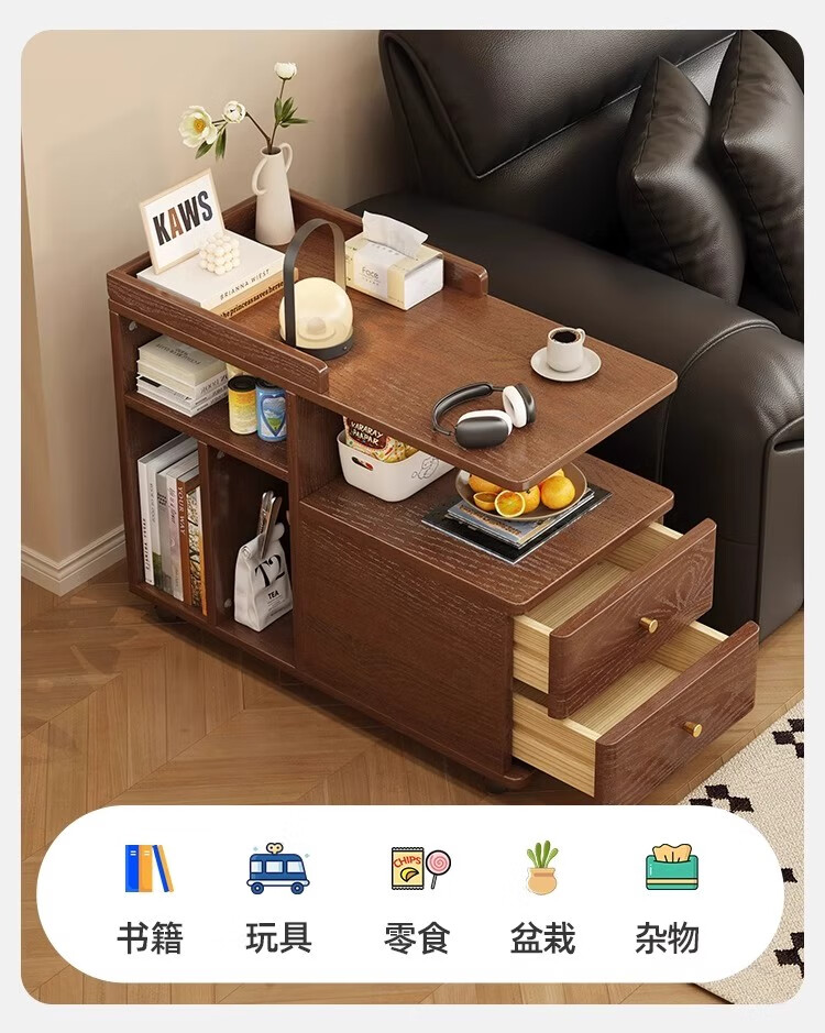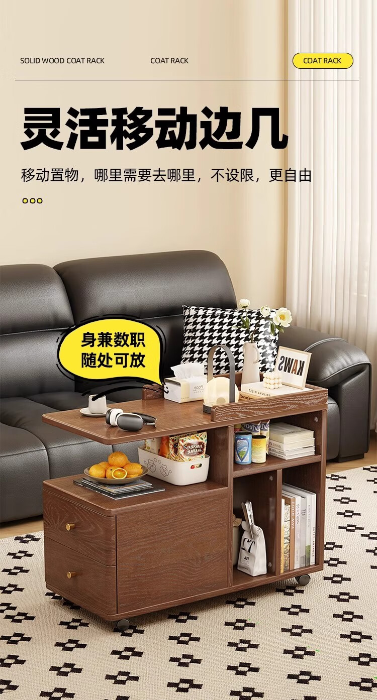 芈迪北欧实木边几小茶几可移动客厅沙发侧边柜家用小推车储物柜置物架 胡桃色边几 72.5*30*63cm