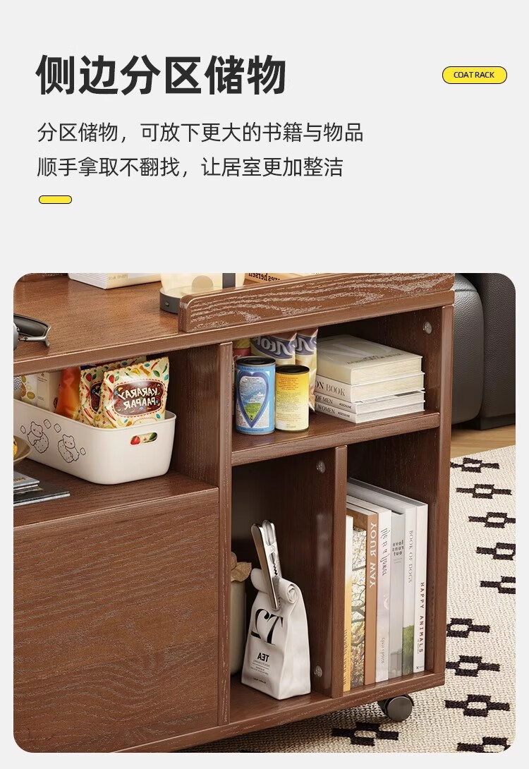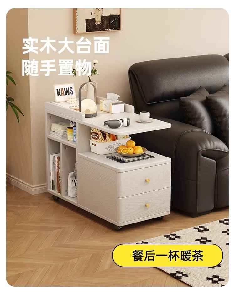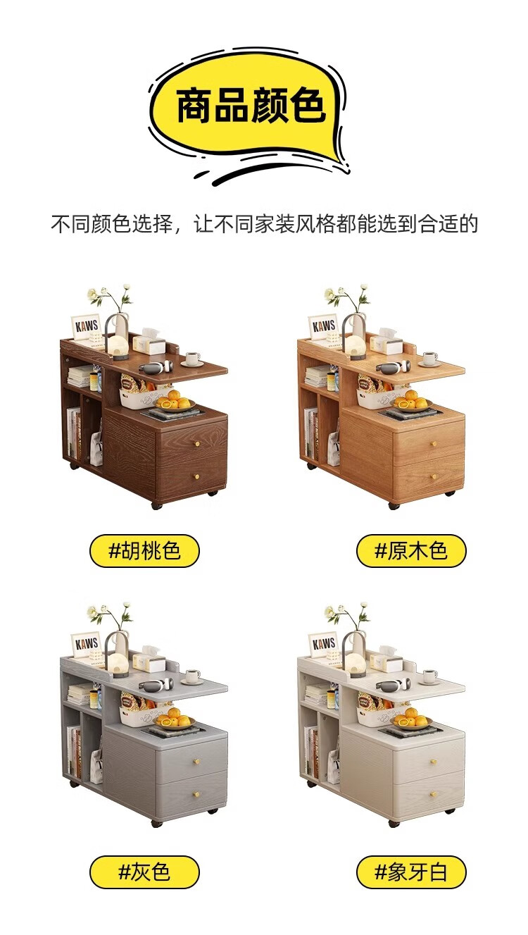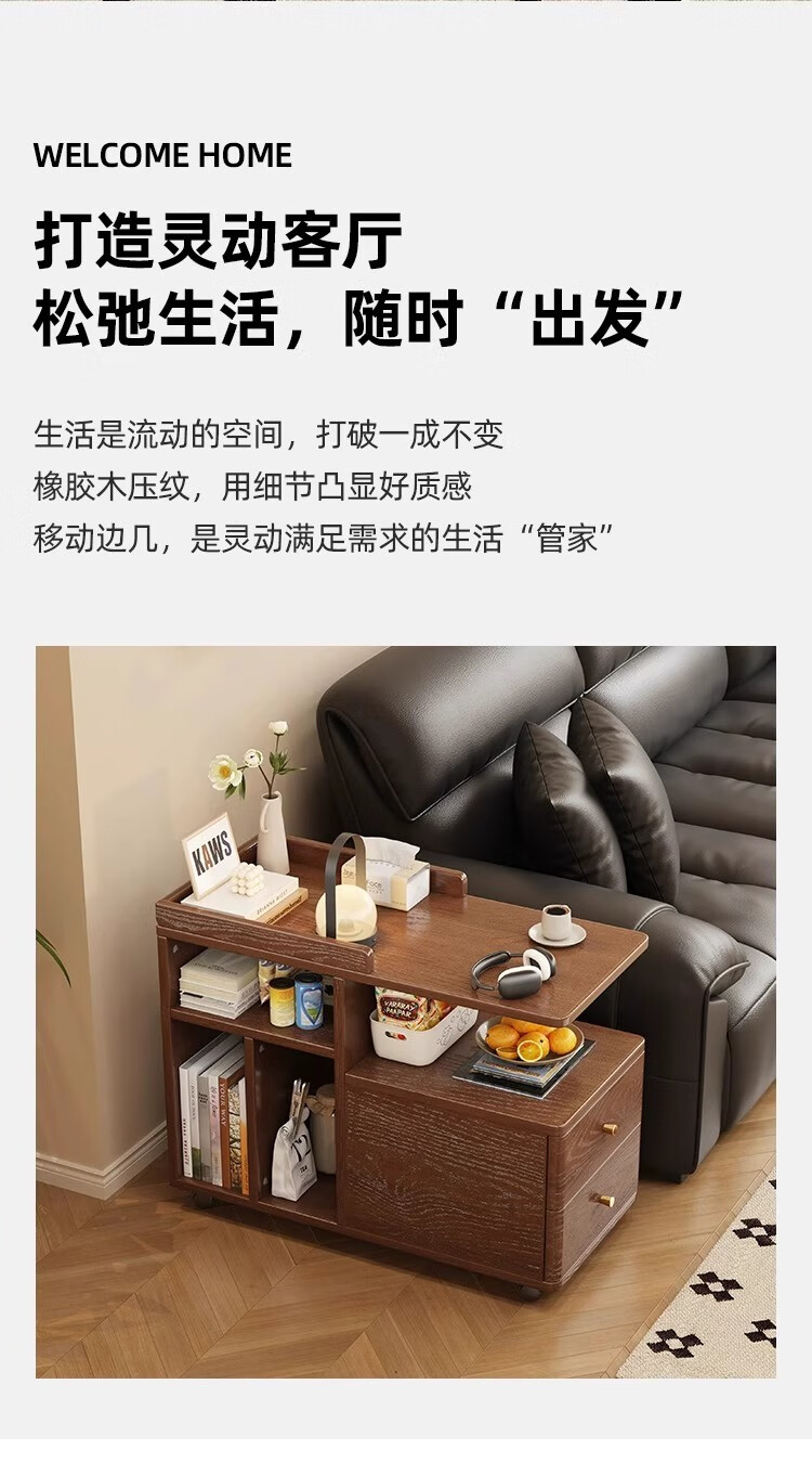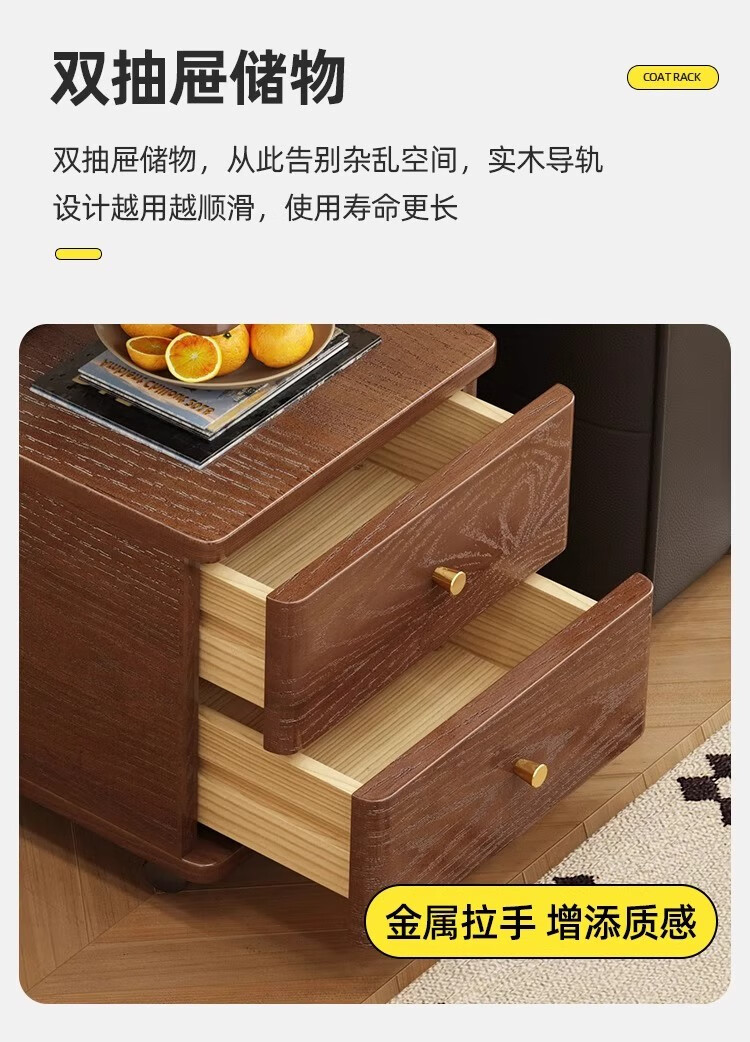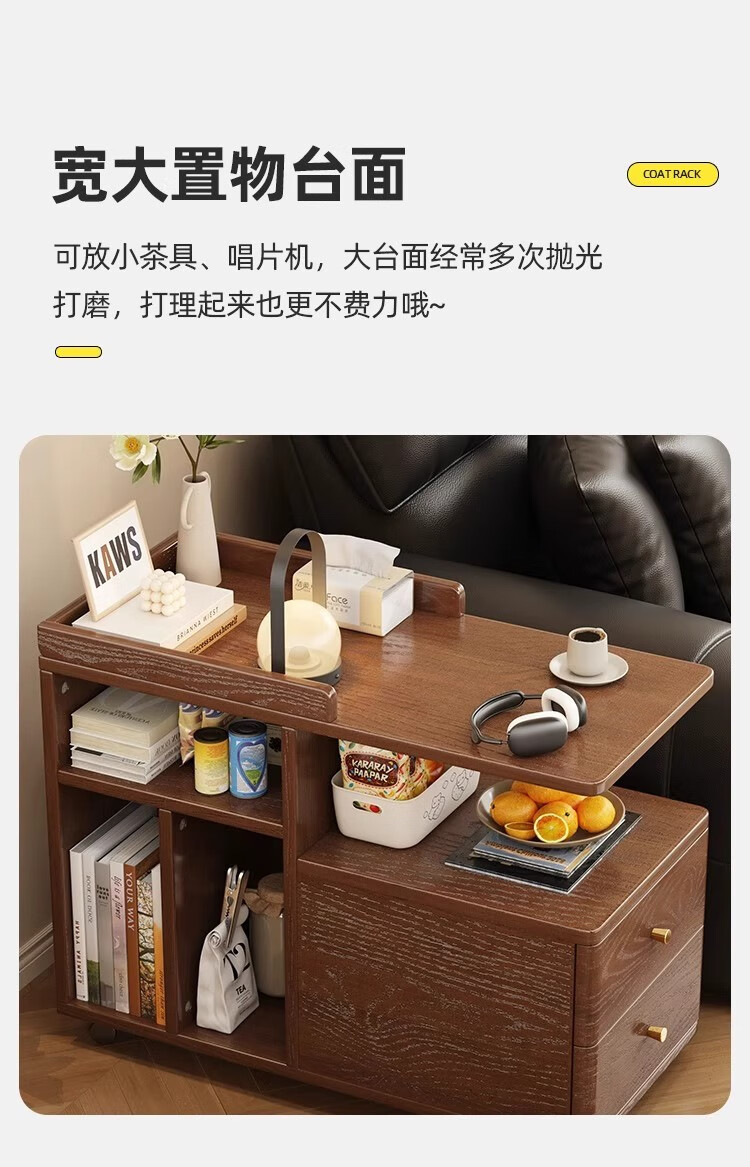 芈迪北欧实木边几小茶几可移动客厅沙发侧边柜家用小推车储物柜置物架 胡桃色边几 72.5*30*63cm