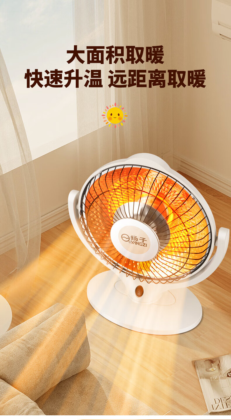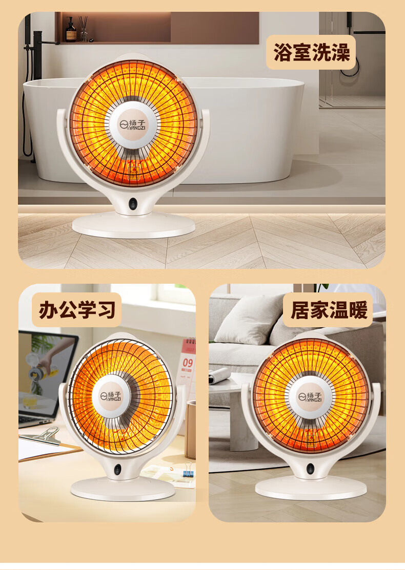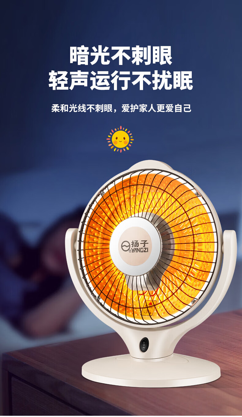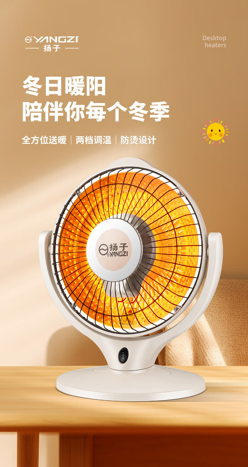 扬子小太阳取暖器家用电暖器节能省电电暖气台式电热扇烤火器速热静音烤火炉卧室客厅办公取暖神器 米白色桌面款 【1米电源线】