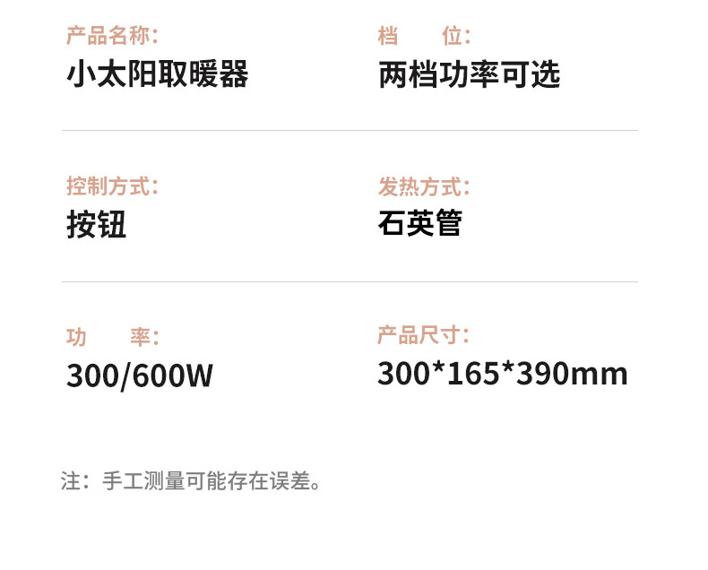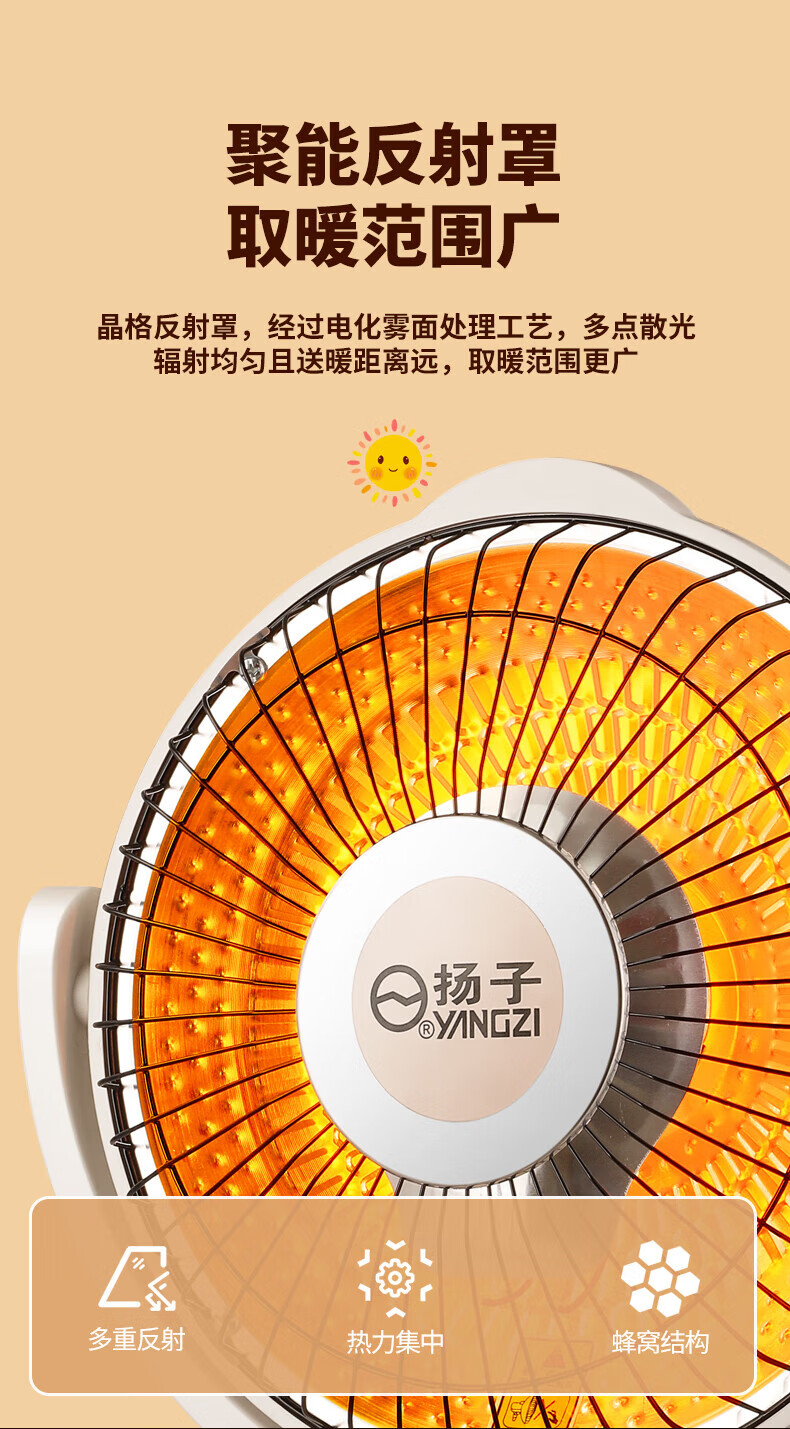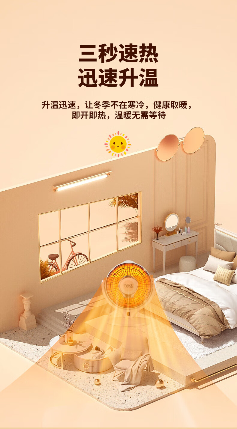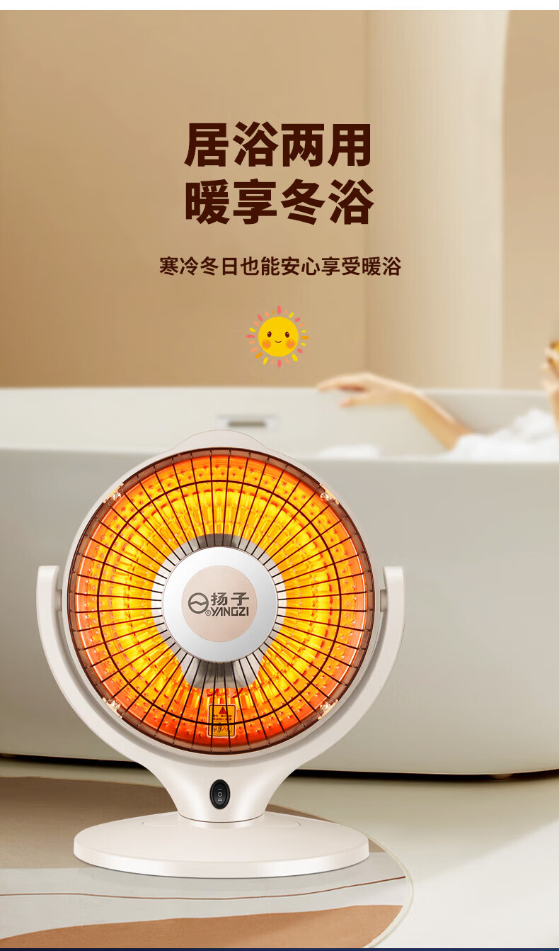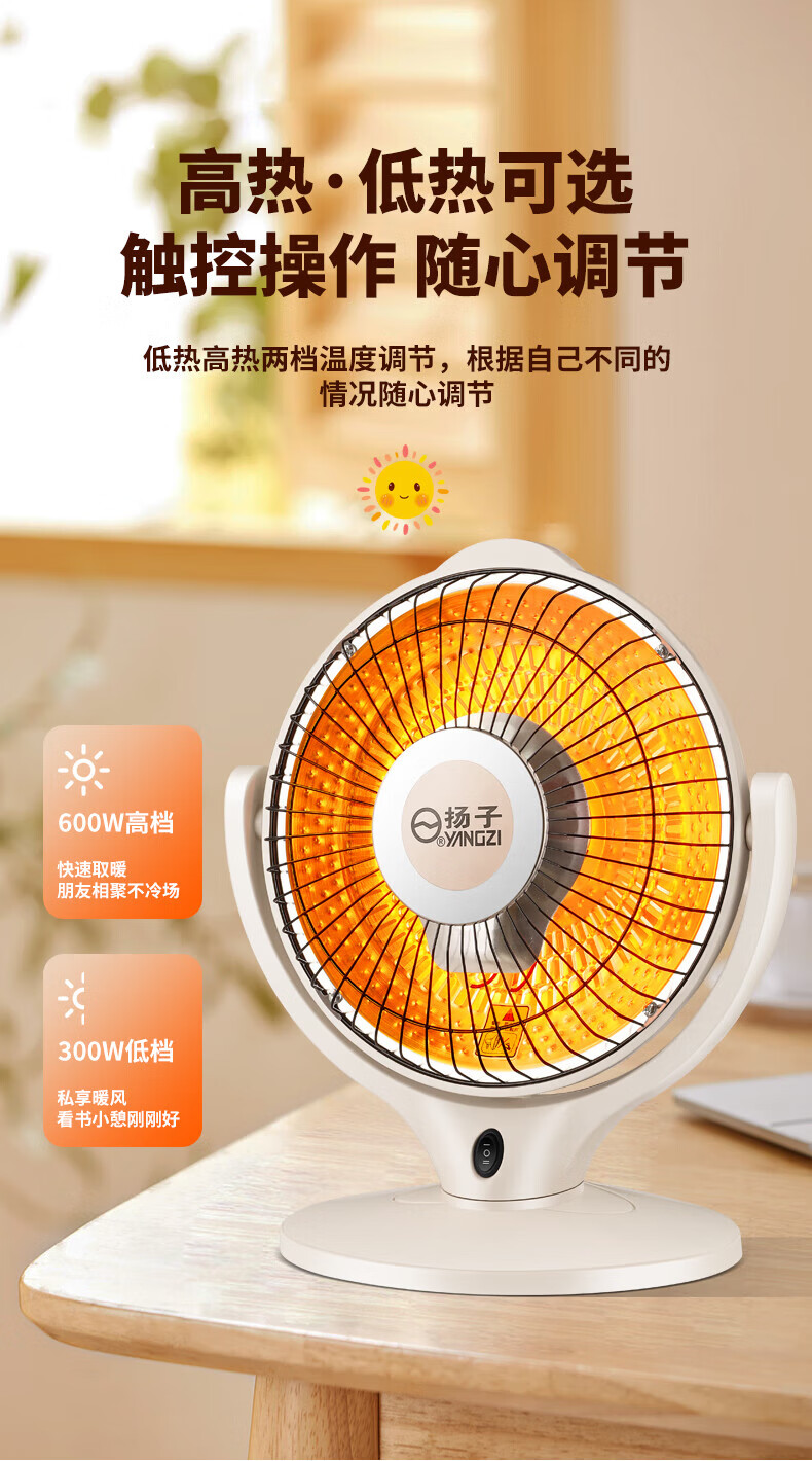 扬子小太阳取暖器家用电暖器节能省电电暖气台式电热扇烤火器速热静音烤火炉卧室客厅办公取暖神器 米白色桌面款 【1米电源线】