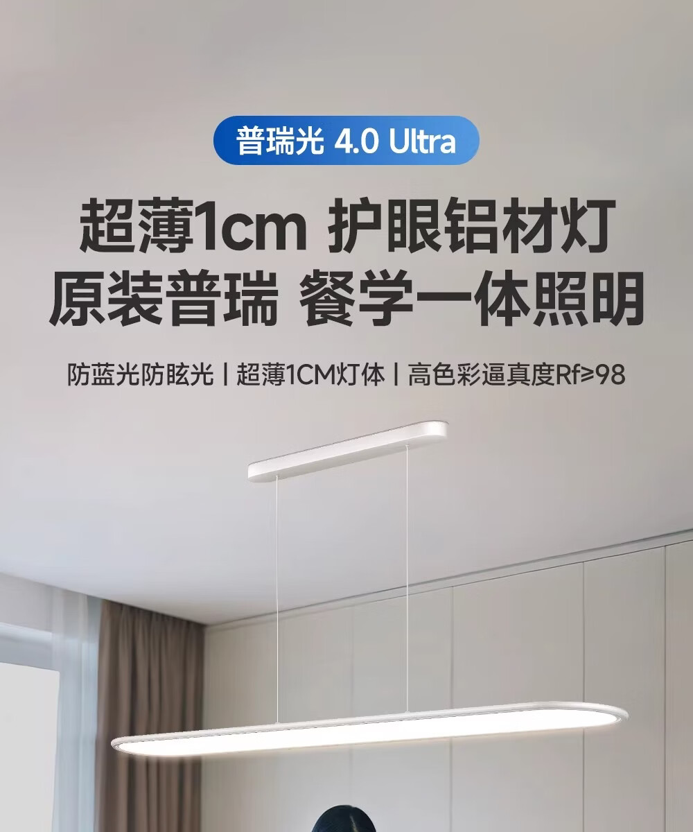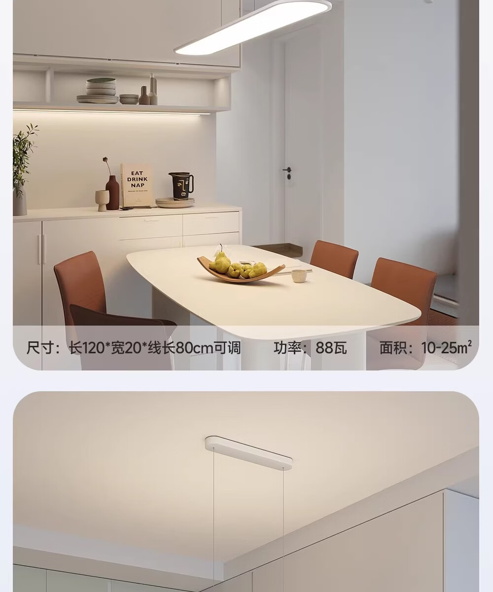 拉伯塔普瑞全光谱护眼书房一字吊灯客厅2026新款奶油风餐厅超薄现代简约 【包安装】书房吊灯【长120cm/88W】已接入米家APP 原装进口普瑞灯珠