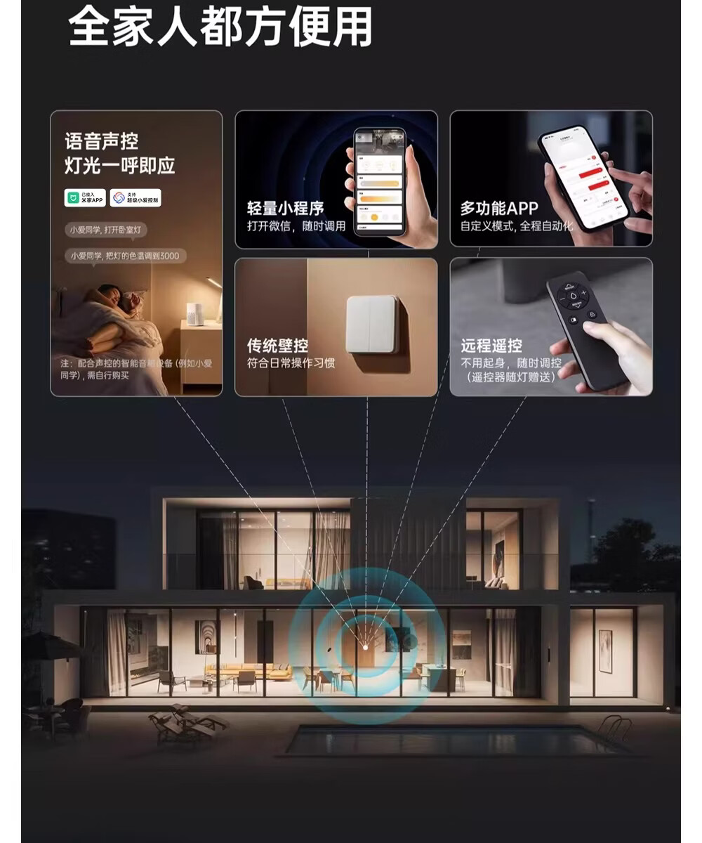 欧普照明(OPPLE)客厅灯主灯大灯高显色吸顶灯现代简约卧室一体灯具套餐APP智控 B2智控调光【2室2厅-4灯】