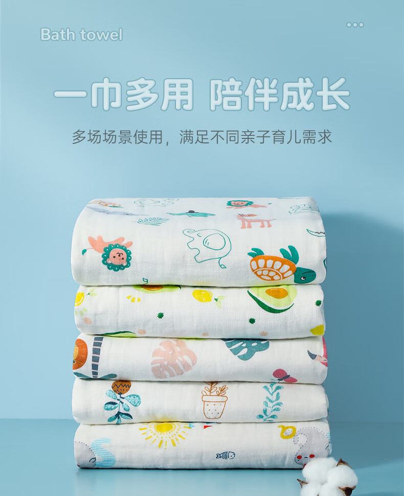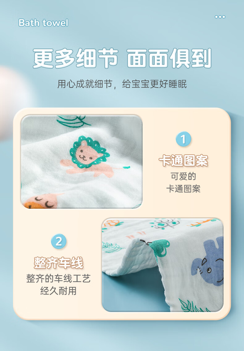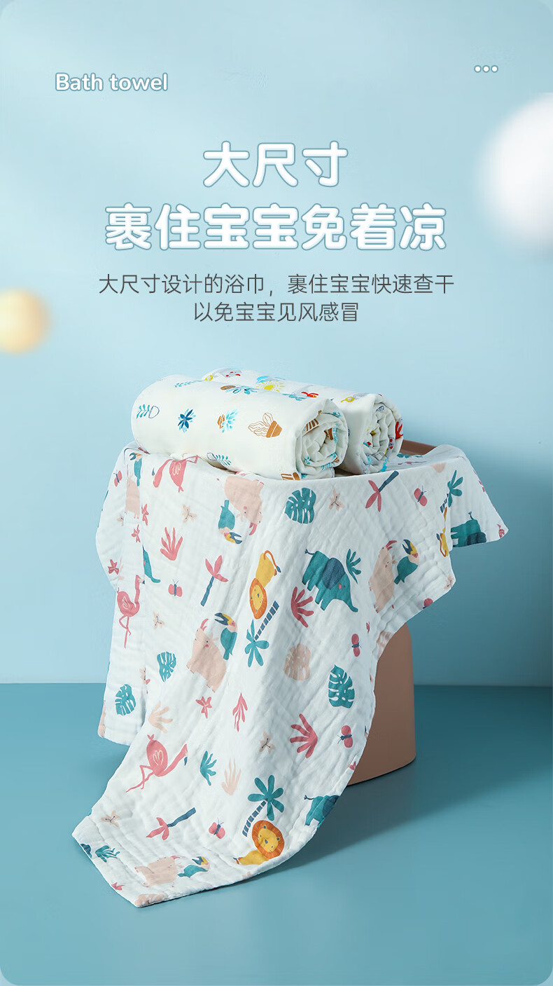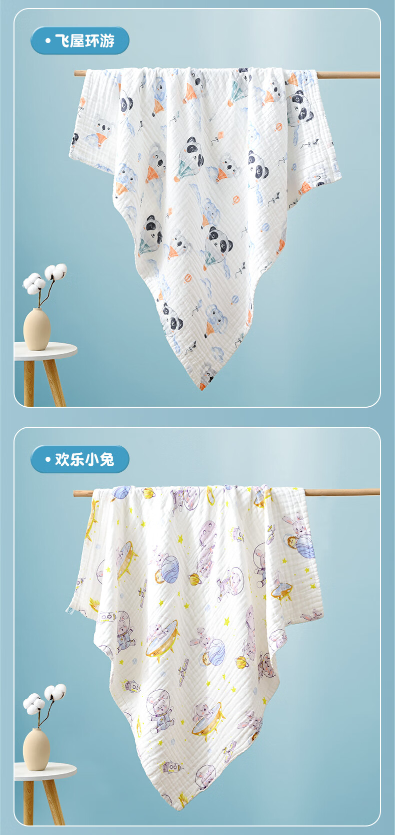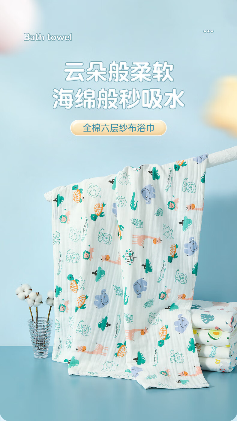 贝谷贝谷婴儿浴巾儿童纱布浴巾新生儿宝宝超柔洗澡毛巾【精选】 欢乐小兔 6层纱布