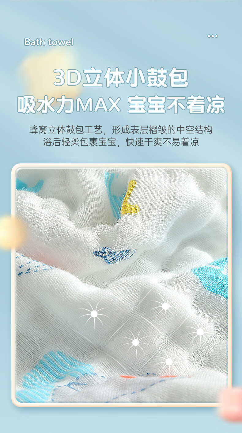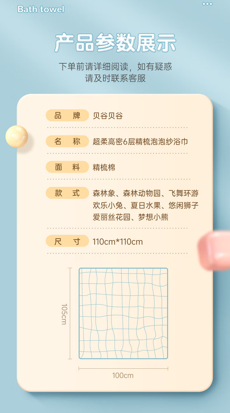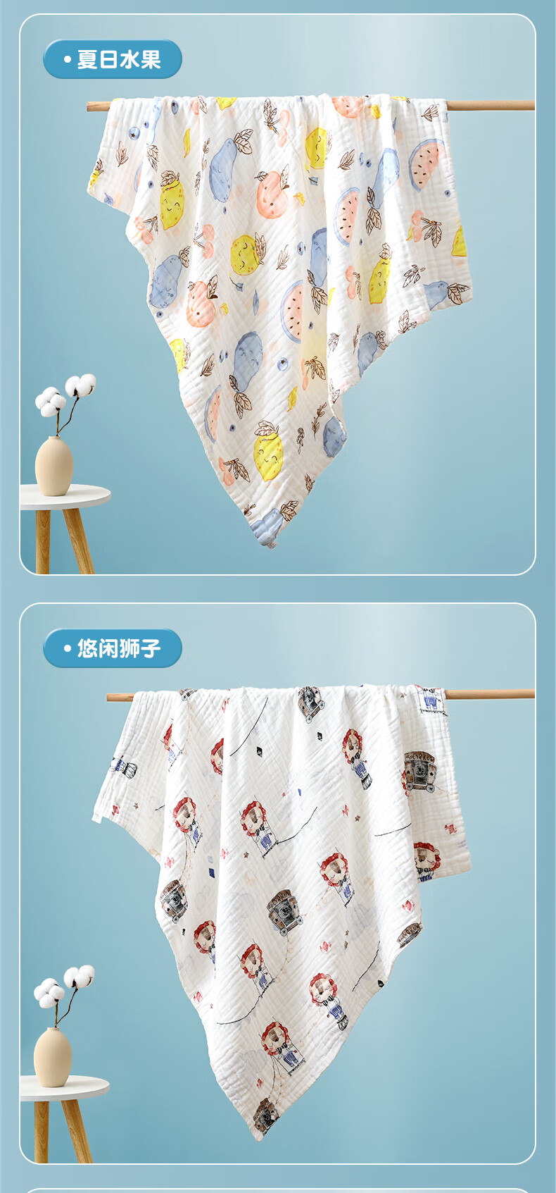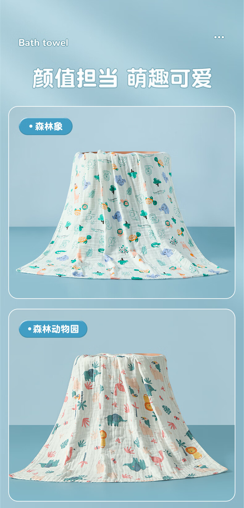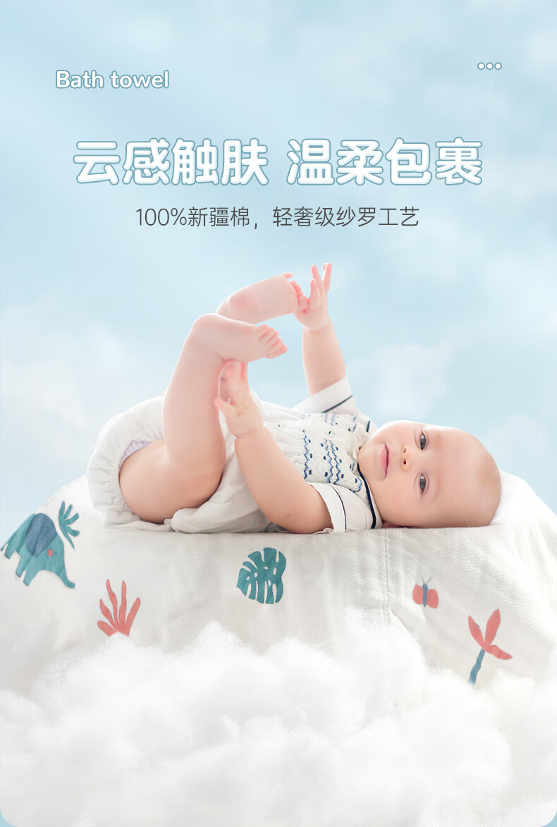 贝谷贝谷婴儿浴巾儿童纱布浴巾新生儿宝宝超柔洗澡毛巾【精选】 欢乐小兔 6层纱布