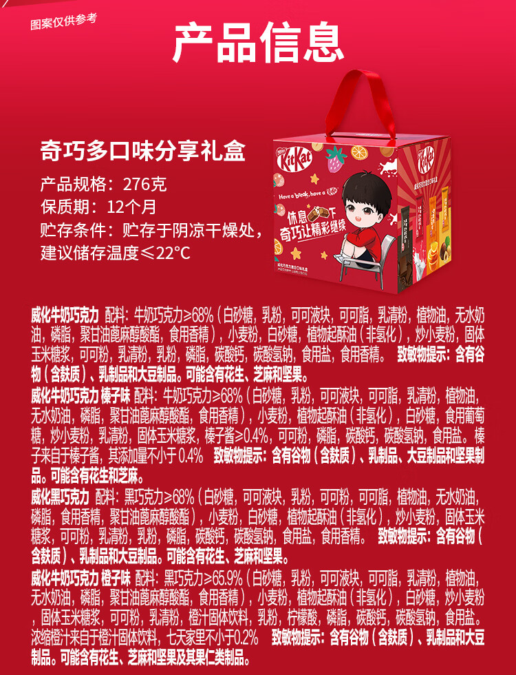 雀巢(Nestle)孙颖莎联名礼盒 276g 奇巧KitKat威化夹心牛奶巧克力多口味