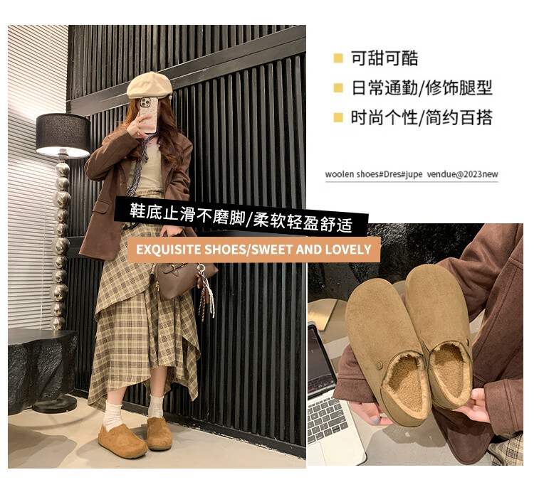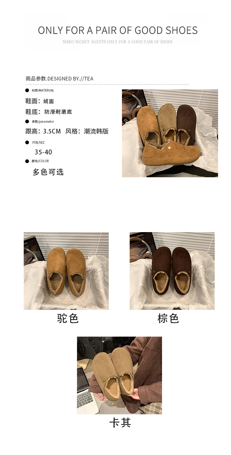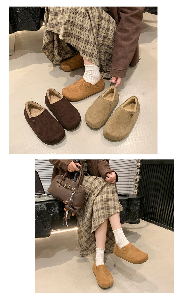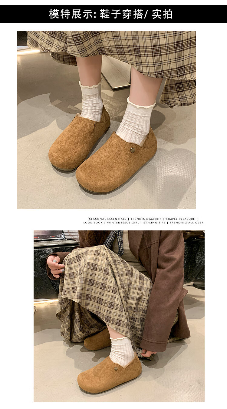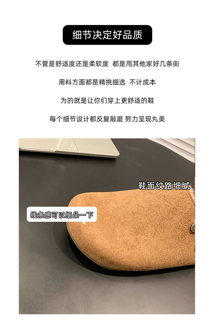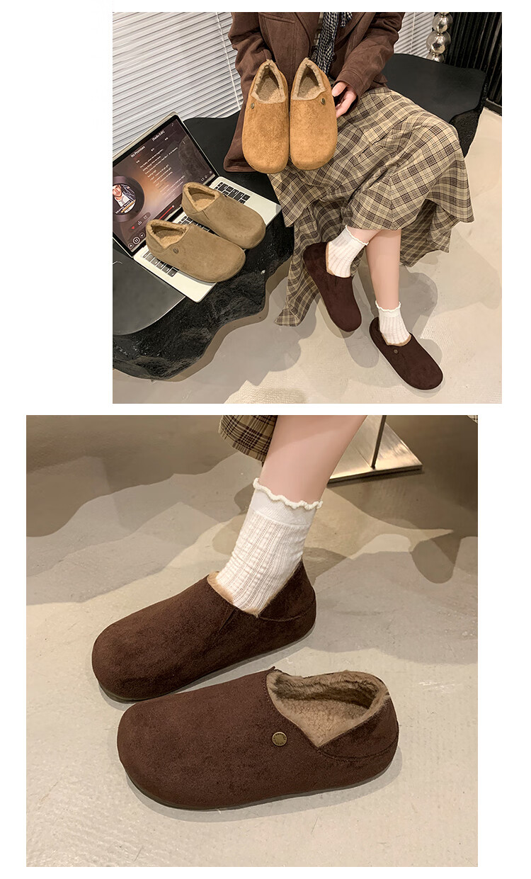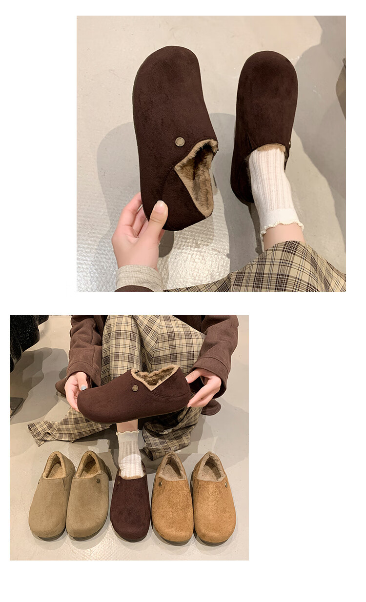 星期六绒面厚底勃肯半拖鞋女2025年秋冬季加绒女鞋一脚蹬懒人棉拖毛毛鞋 深灰 【绒面保暖】跟高3cm 35