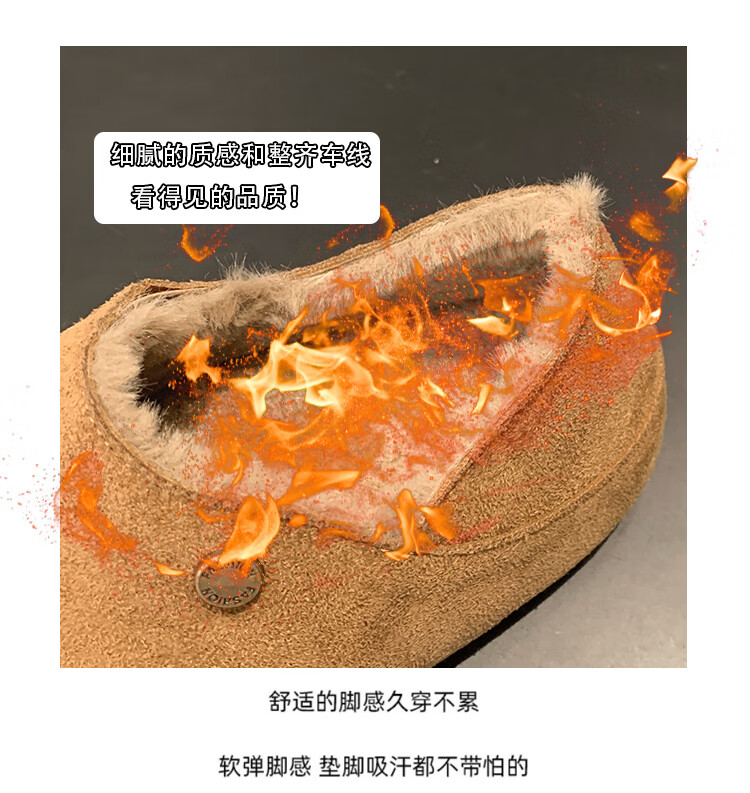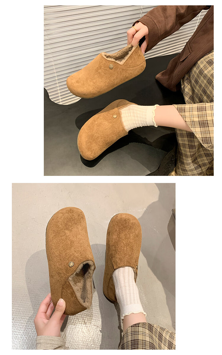 稻草人(MEXICAN)绒面两穿加绒博肯鞋女2026冬季新款内增高厚底棉鞋时尚一脚蹬单鞋 卡其色 41