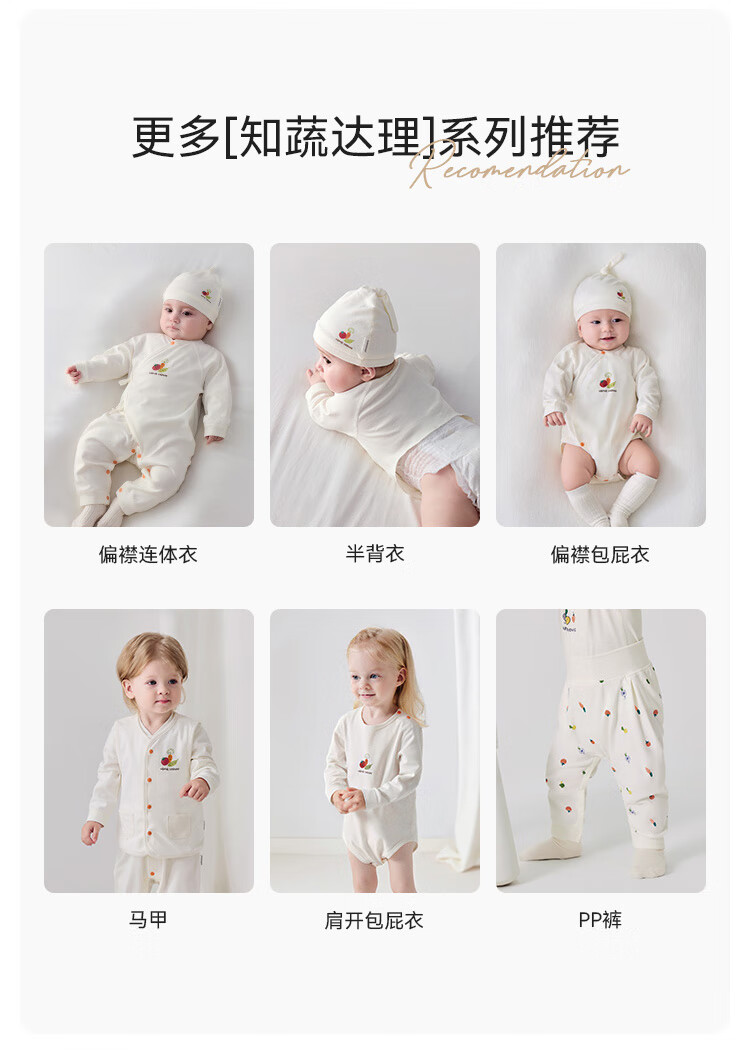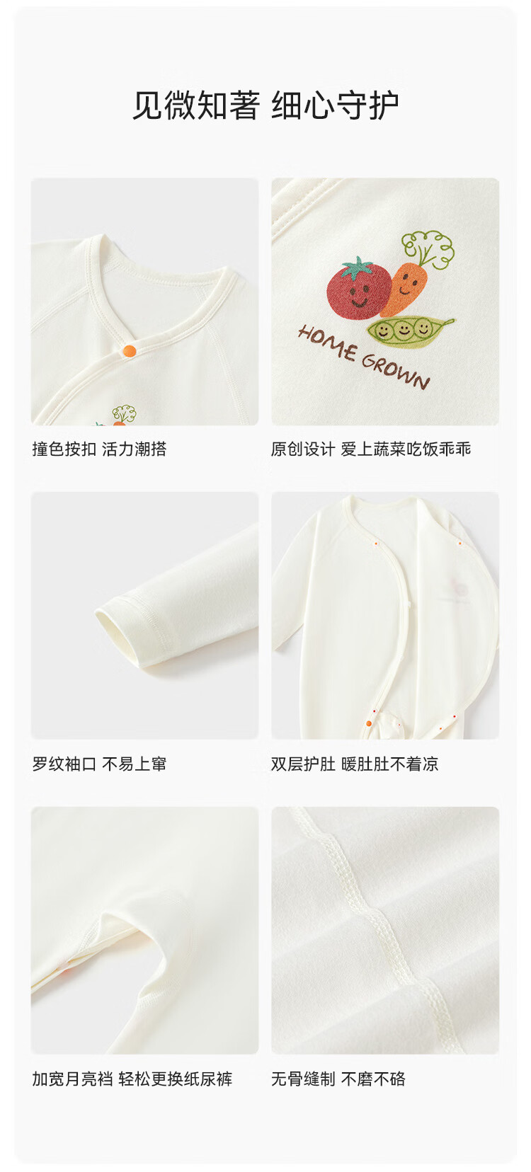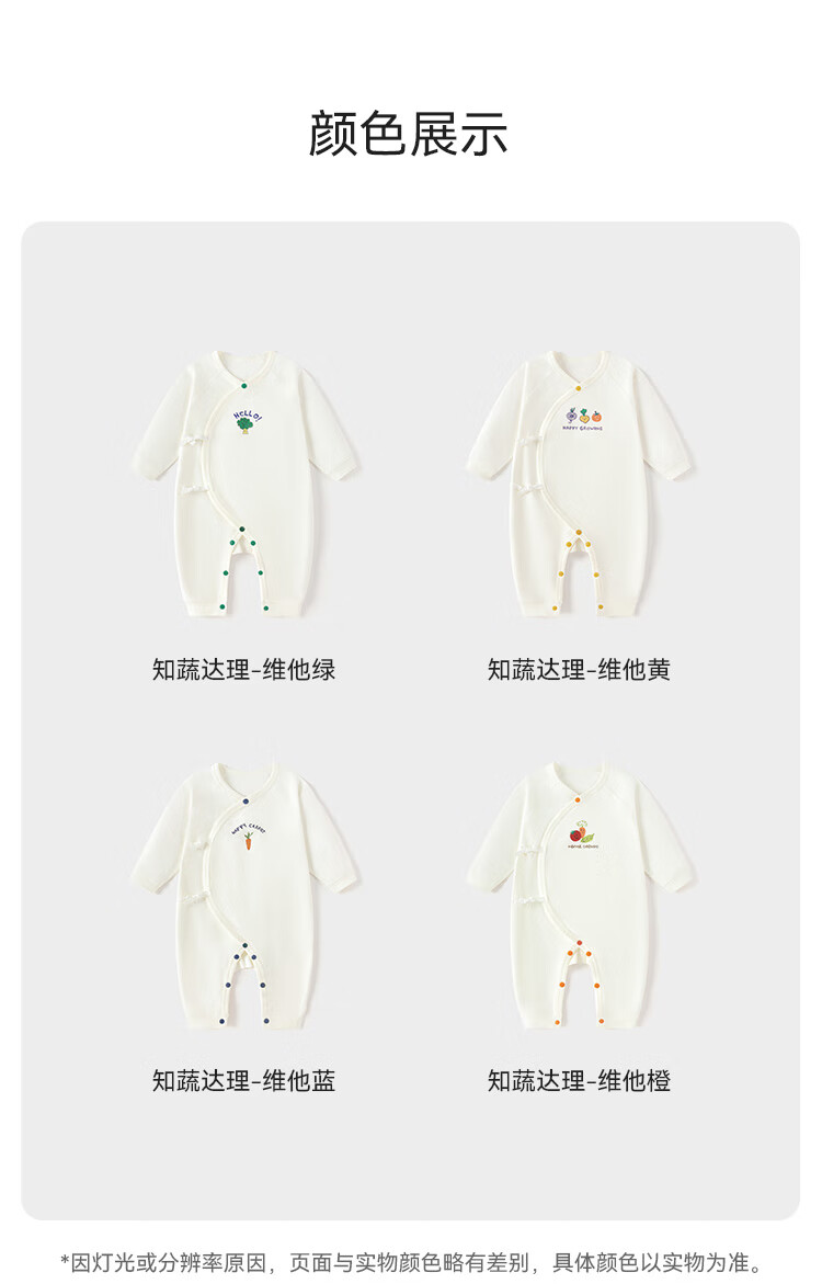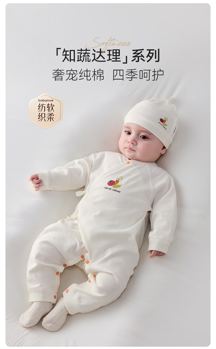 babylove【清仓】【纺软织柔】新生儿连体衣纯棉春秋婴儿衣服哈衣爬服宝宝 知蔬达理-维他蓝 52cm
