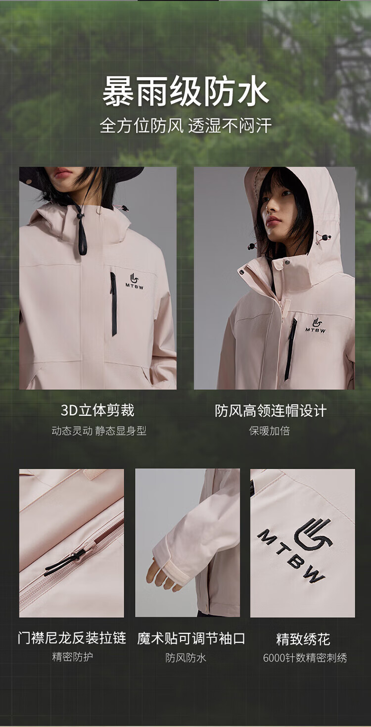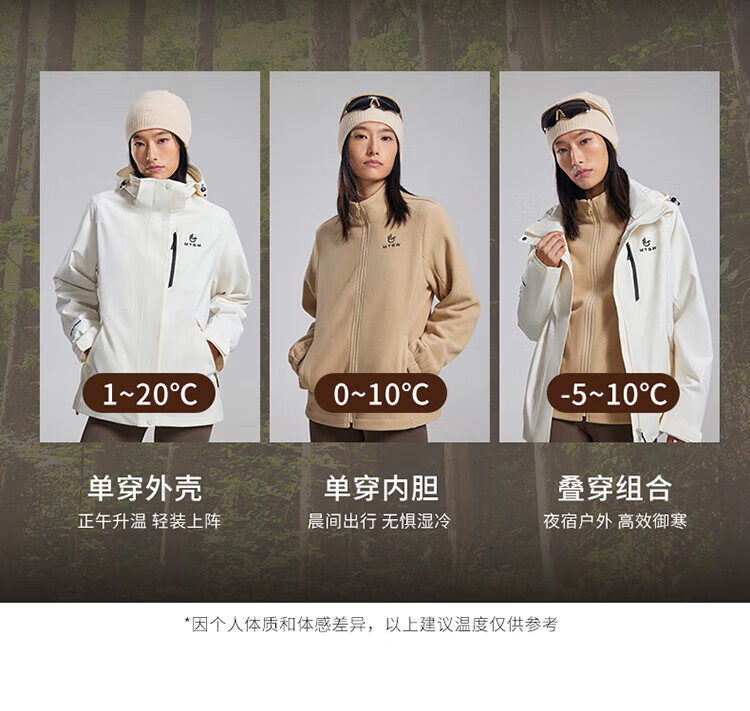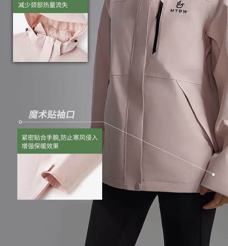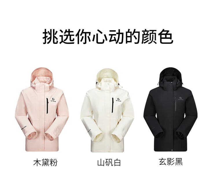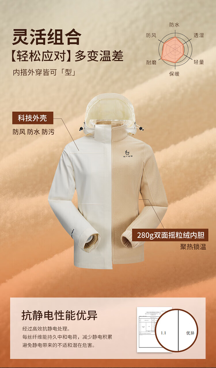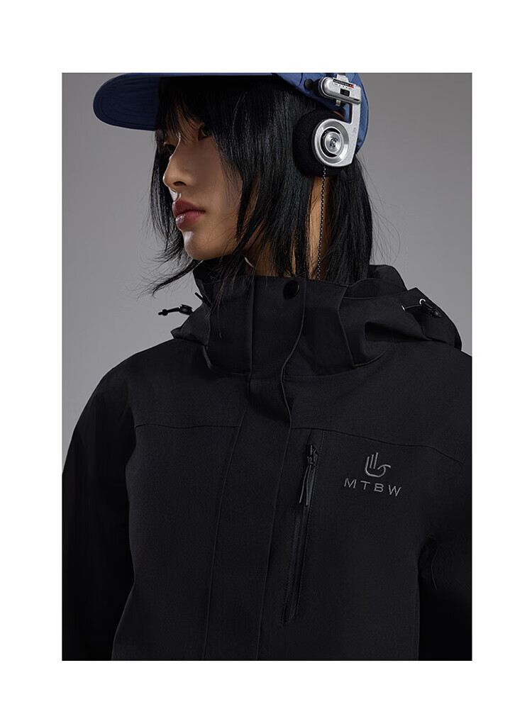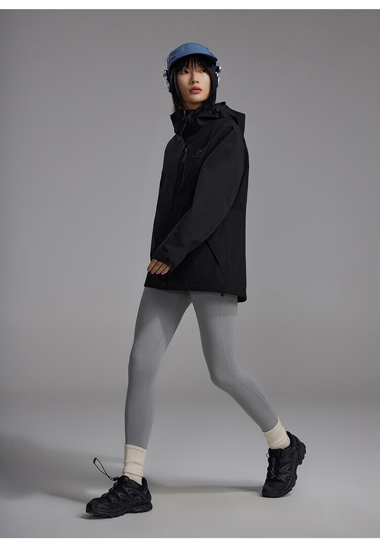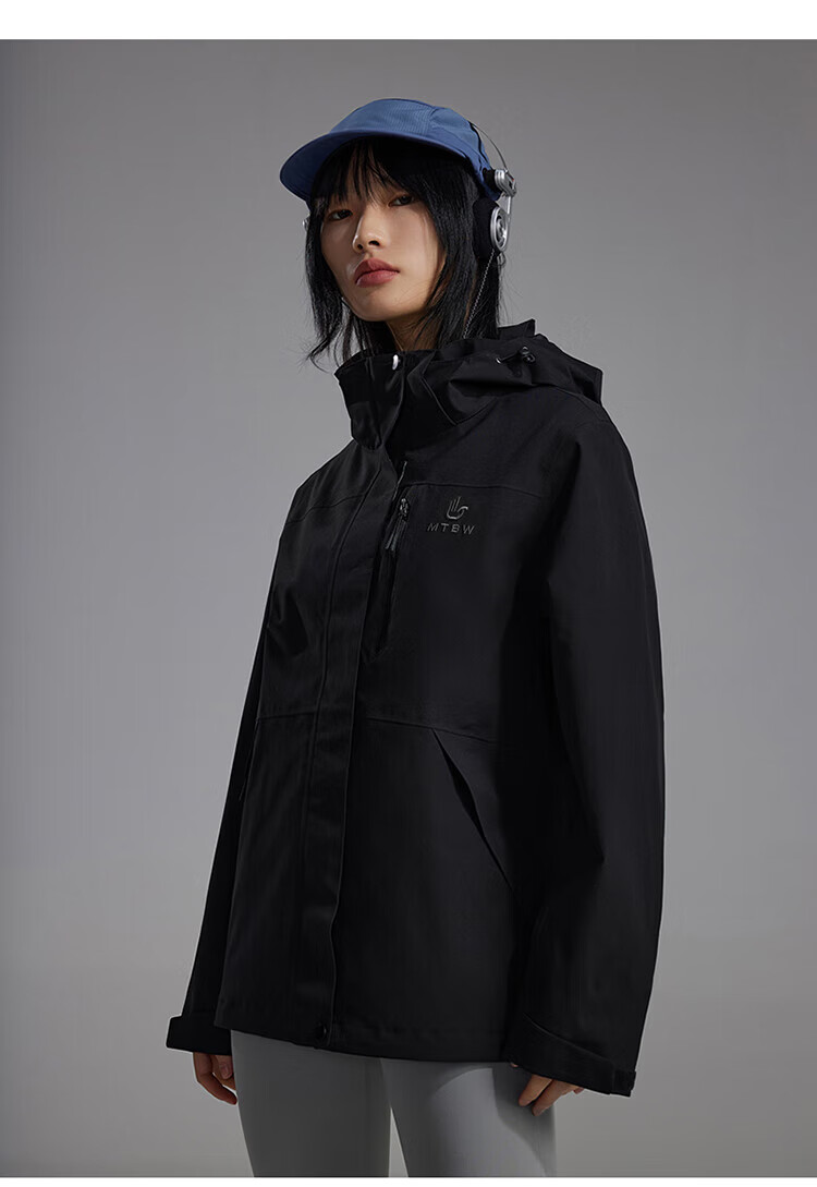美特斯邦威25秋冬新款户外三防登山运动休闲三合一摇粒绒冲锋衣女 玄影黑(含摇粒绒内胆) L 165 88A