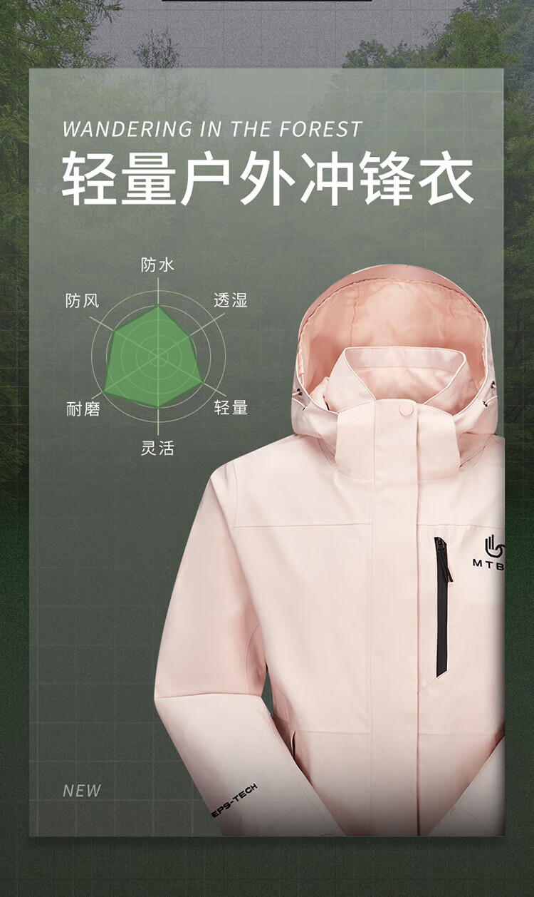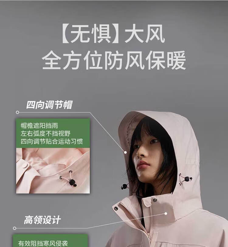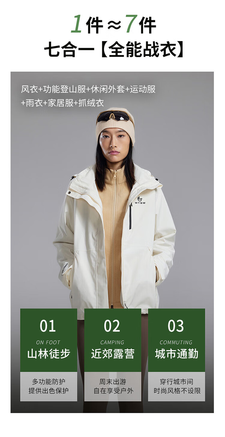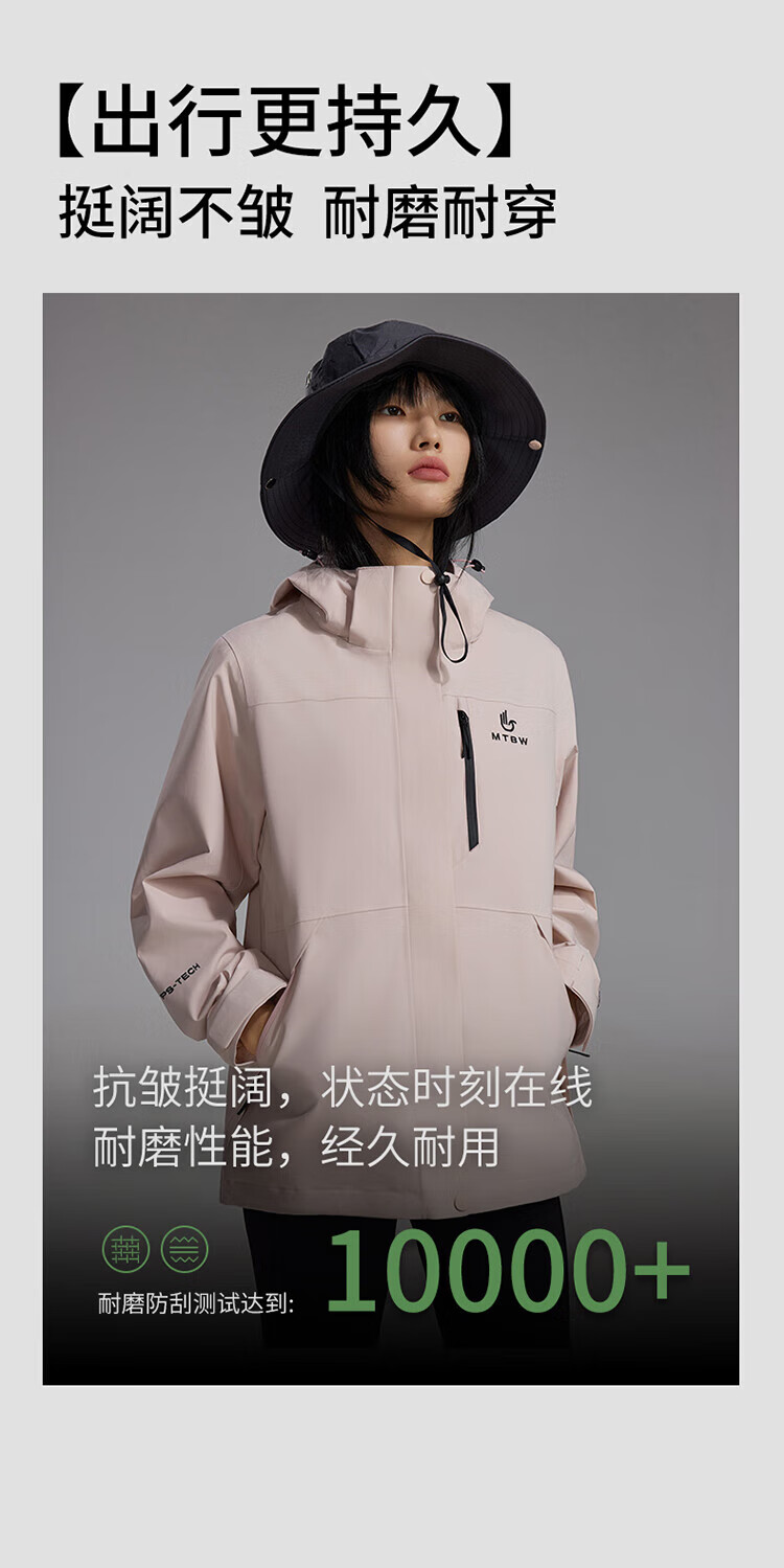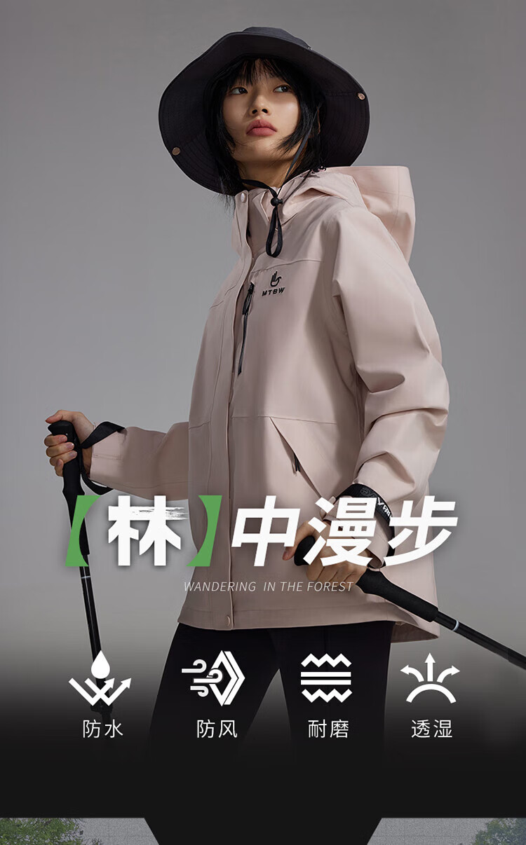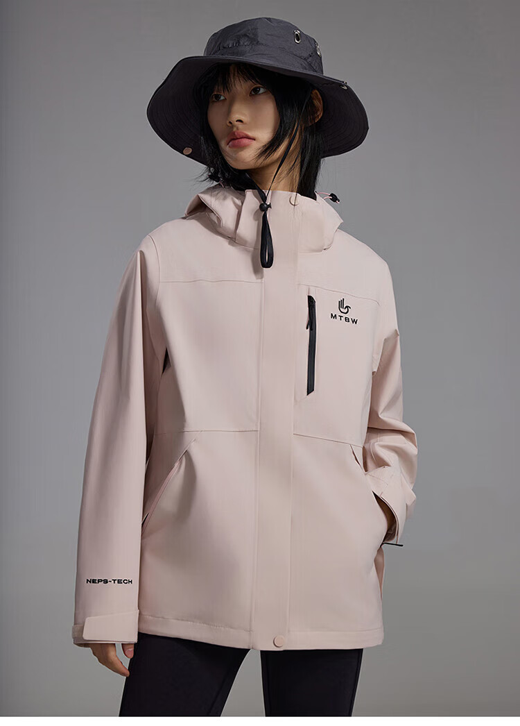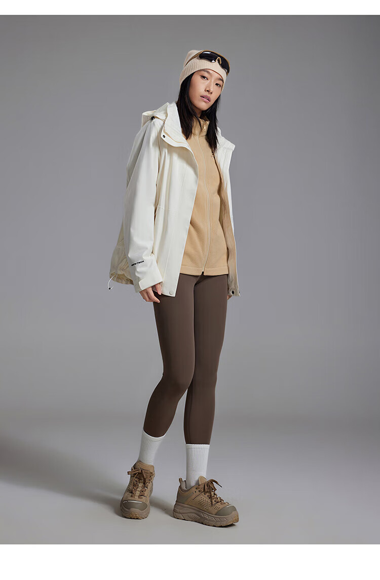 美特斯邦威25秋冬新款户外三防登山运动休闲三合一摇粒绒冲锋衣女 玄影黑(含摇粒绒内胆) L 165 88A