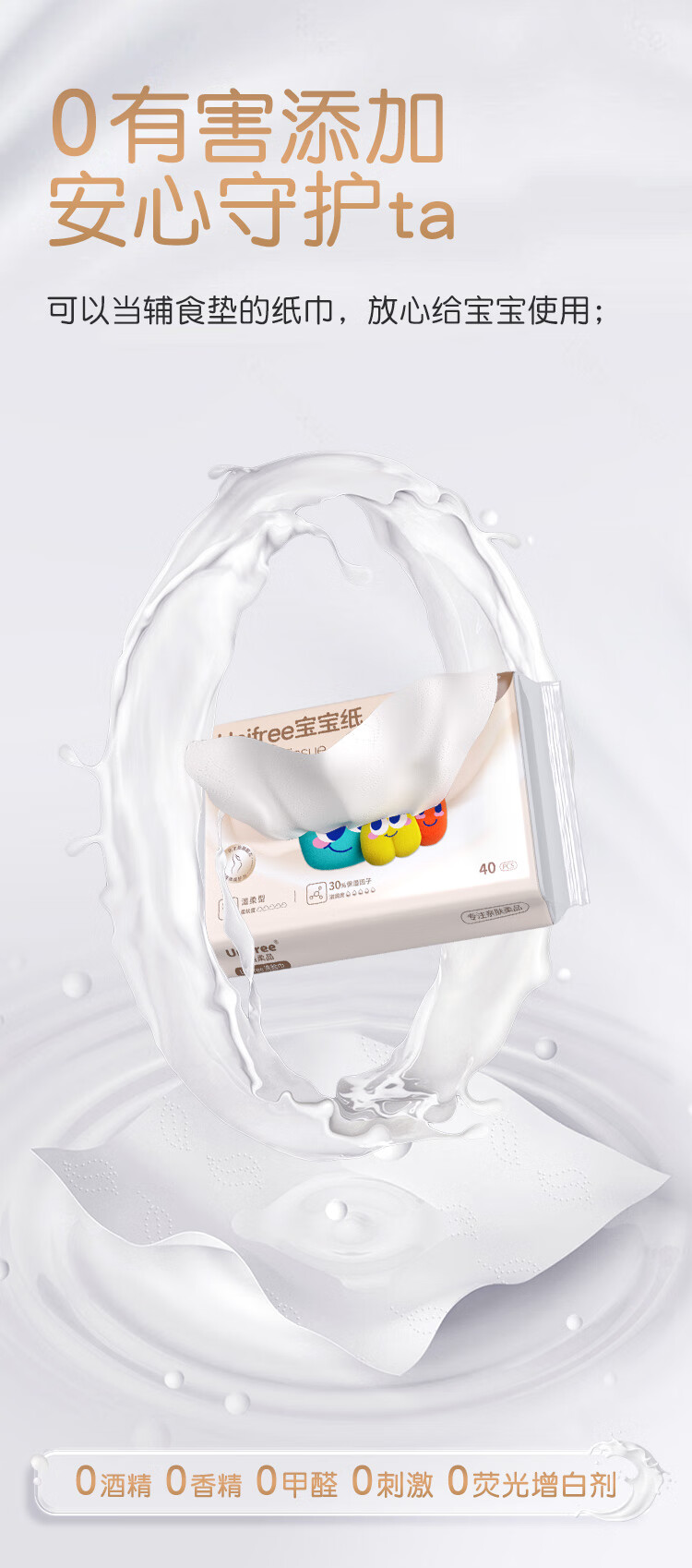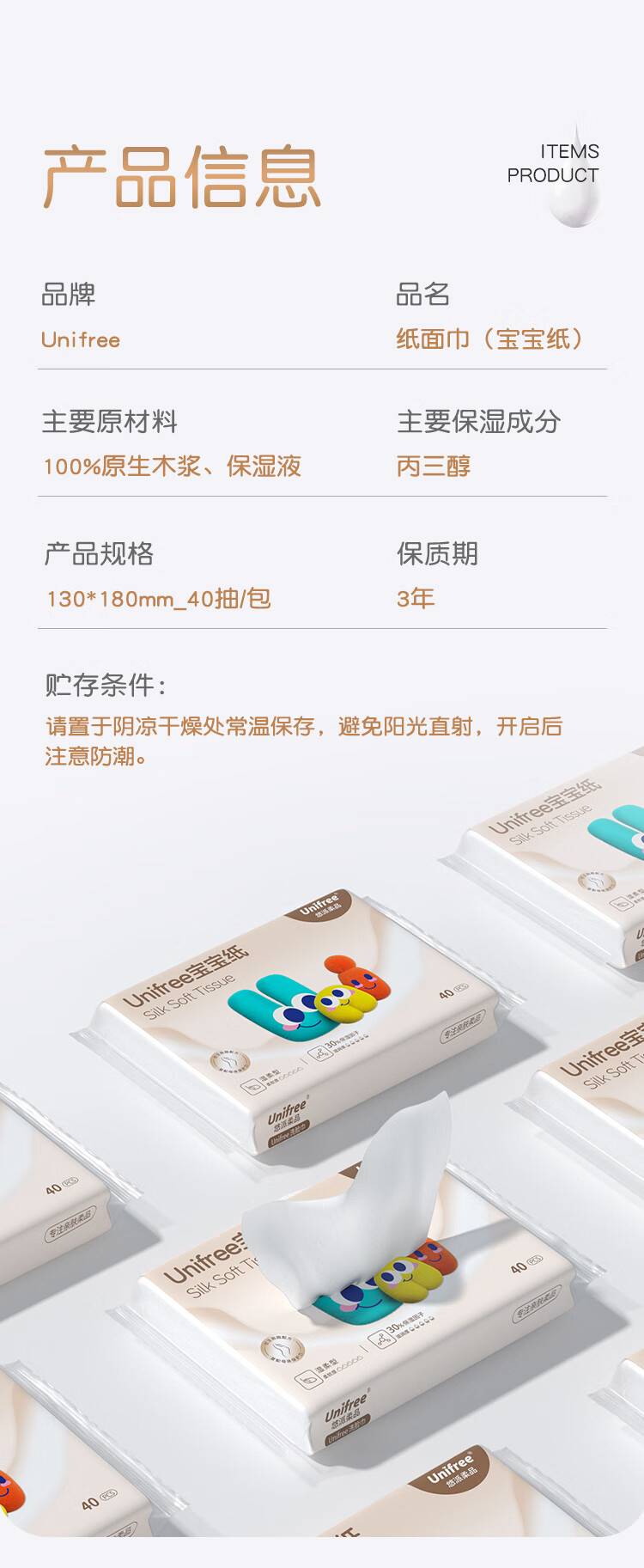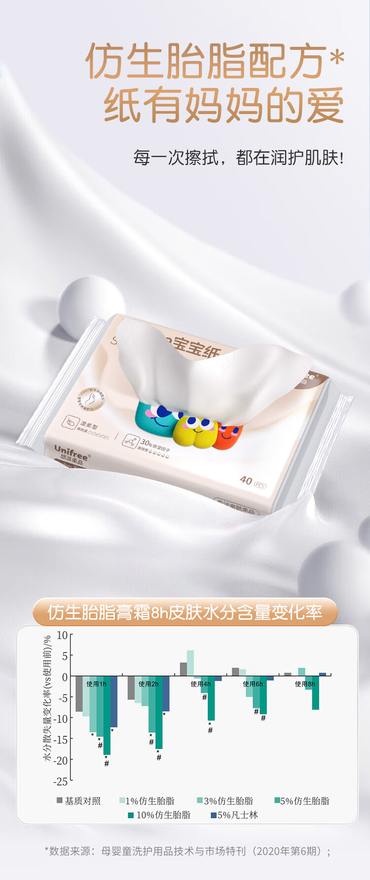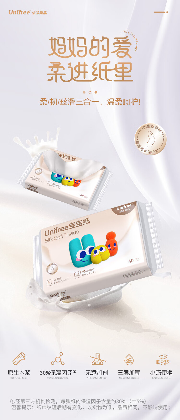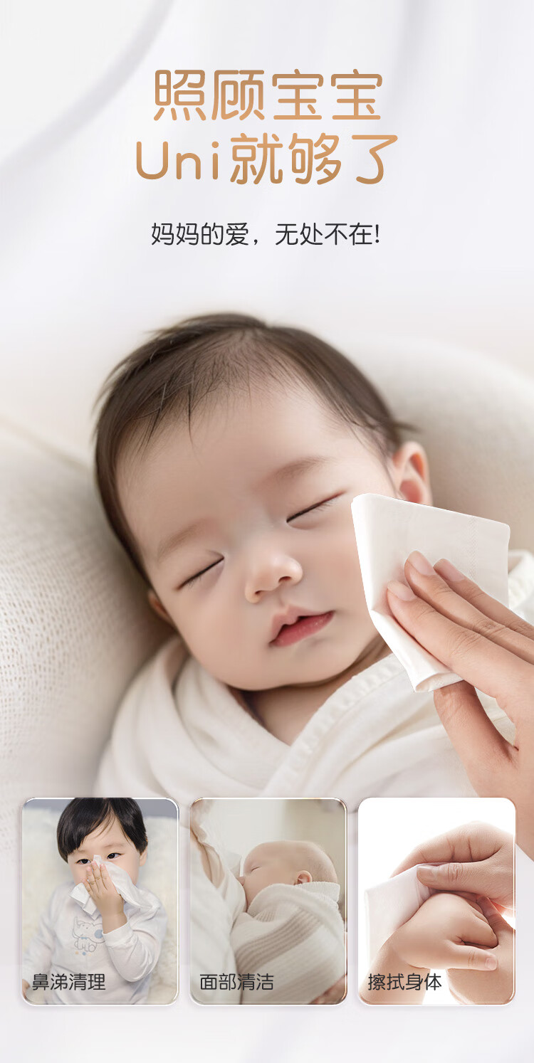 unifree婴童乳霜纸3层40抽*10包仿生胎脂纸巾云柔巾新生儿纸巾抽纸儿童