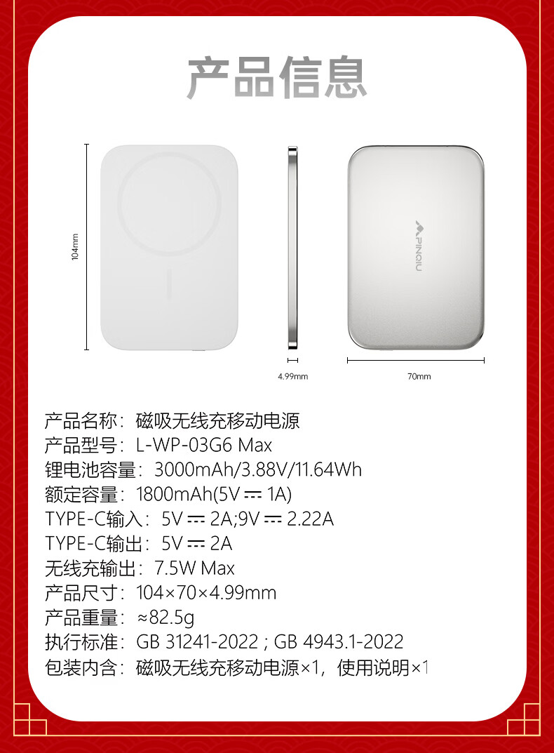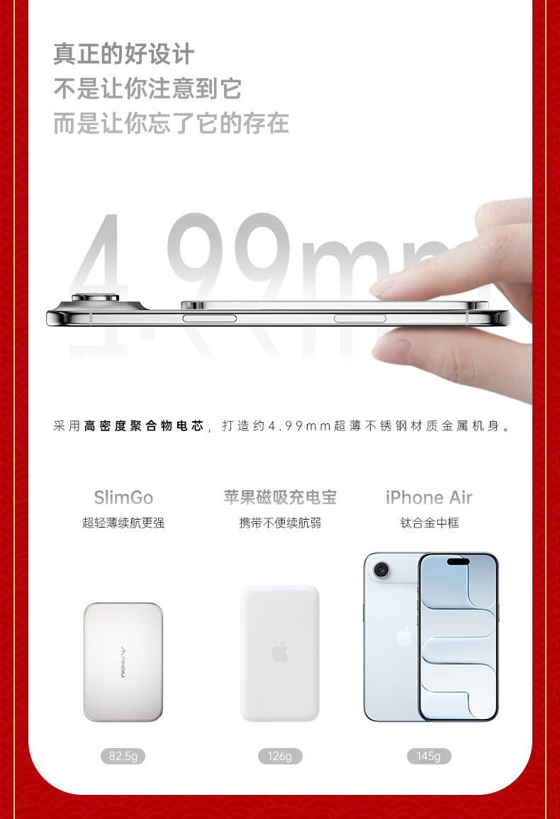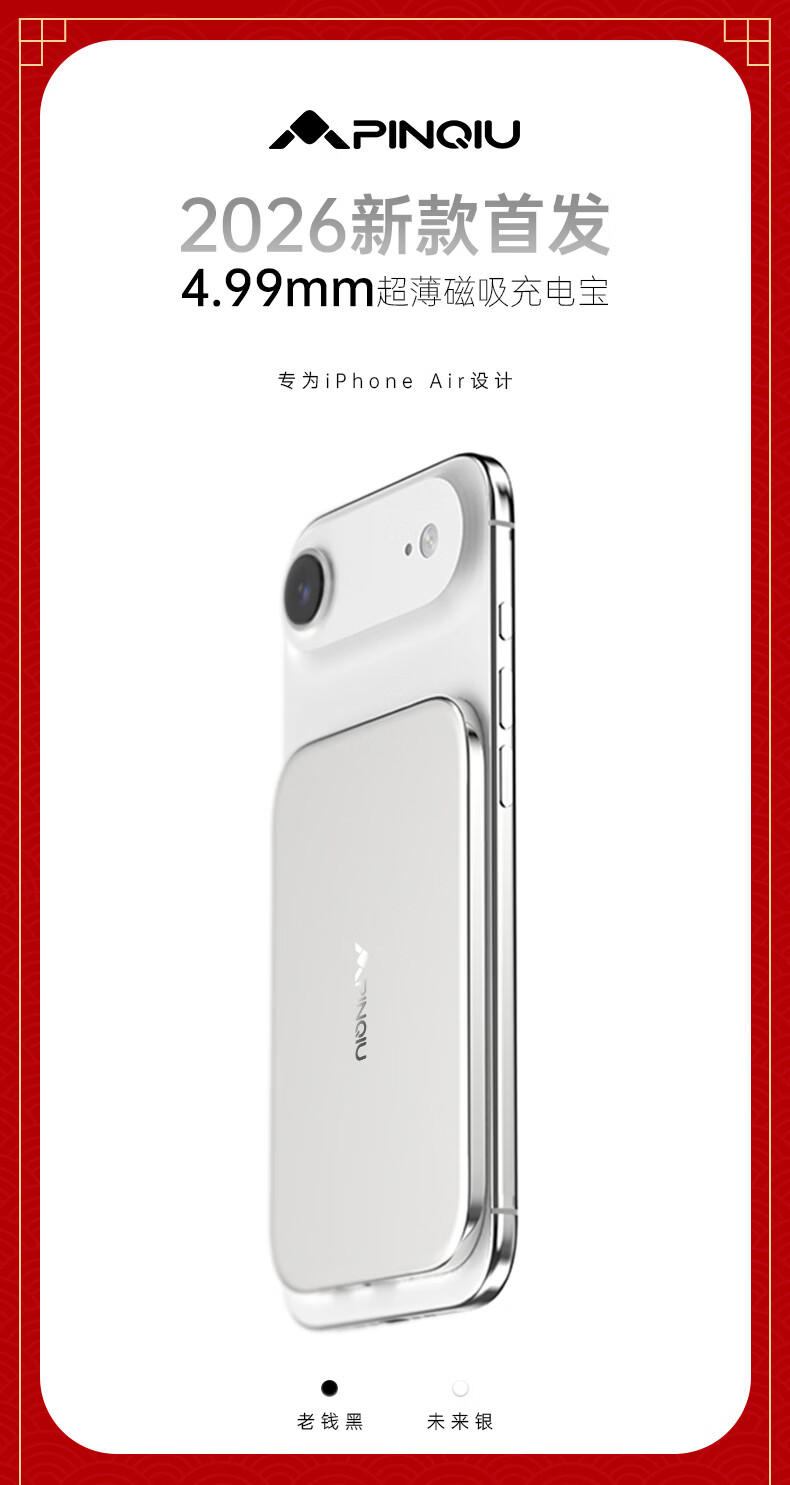 品丘4.99mm超薄磁吸无线充电宝带苹果FindMy定位功能可上飞机商务备用 未来银