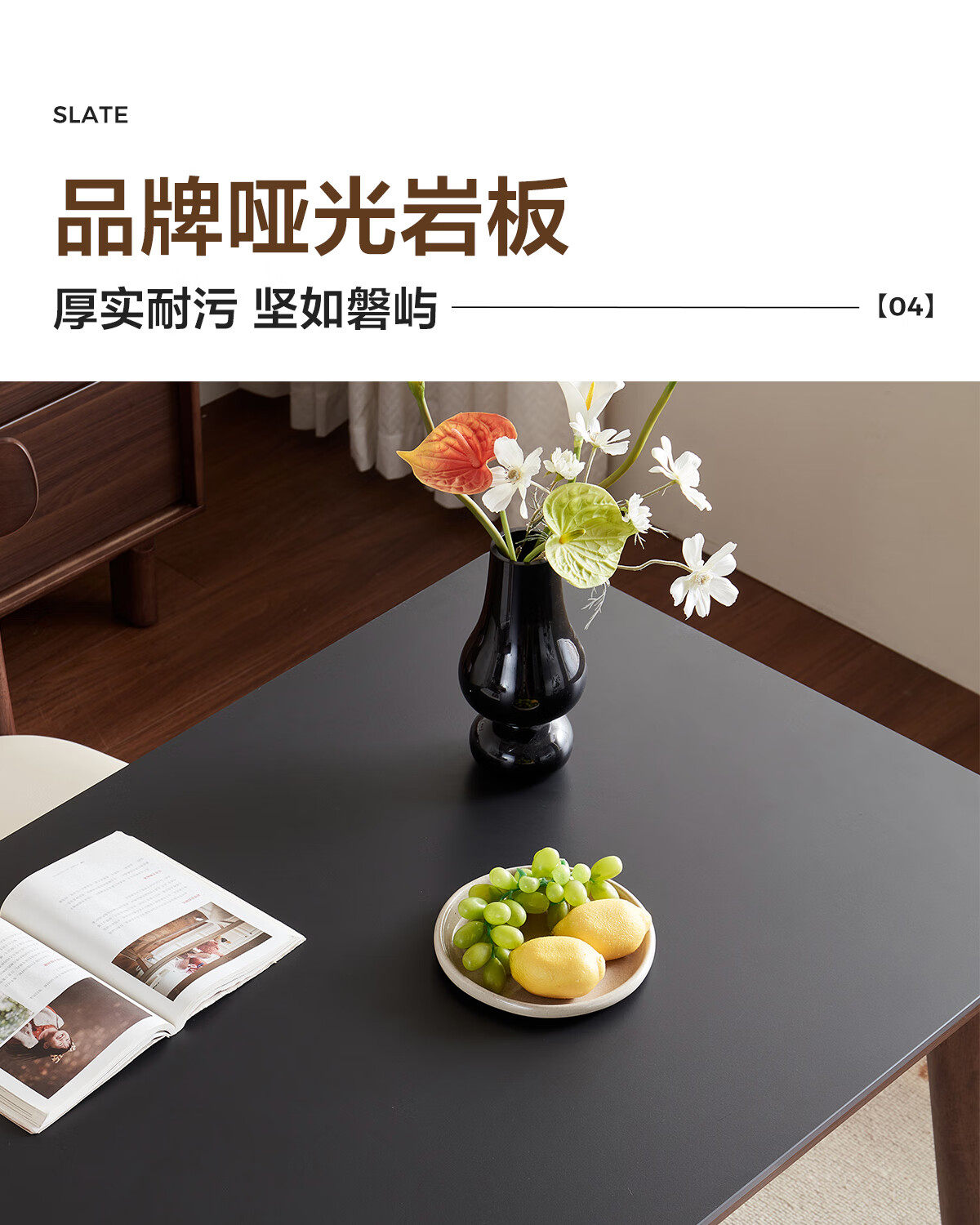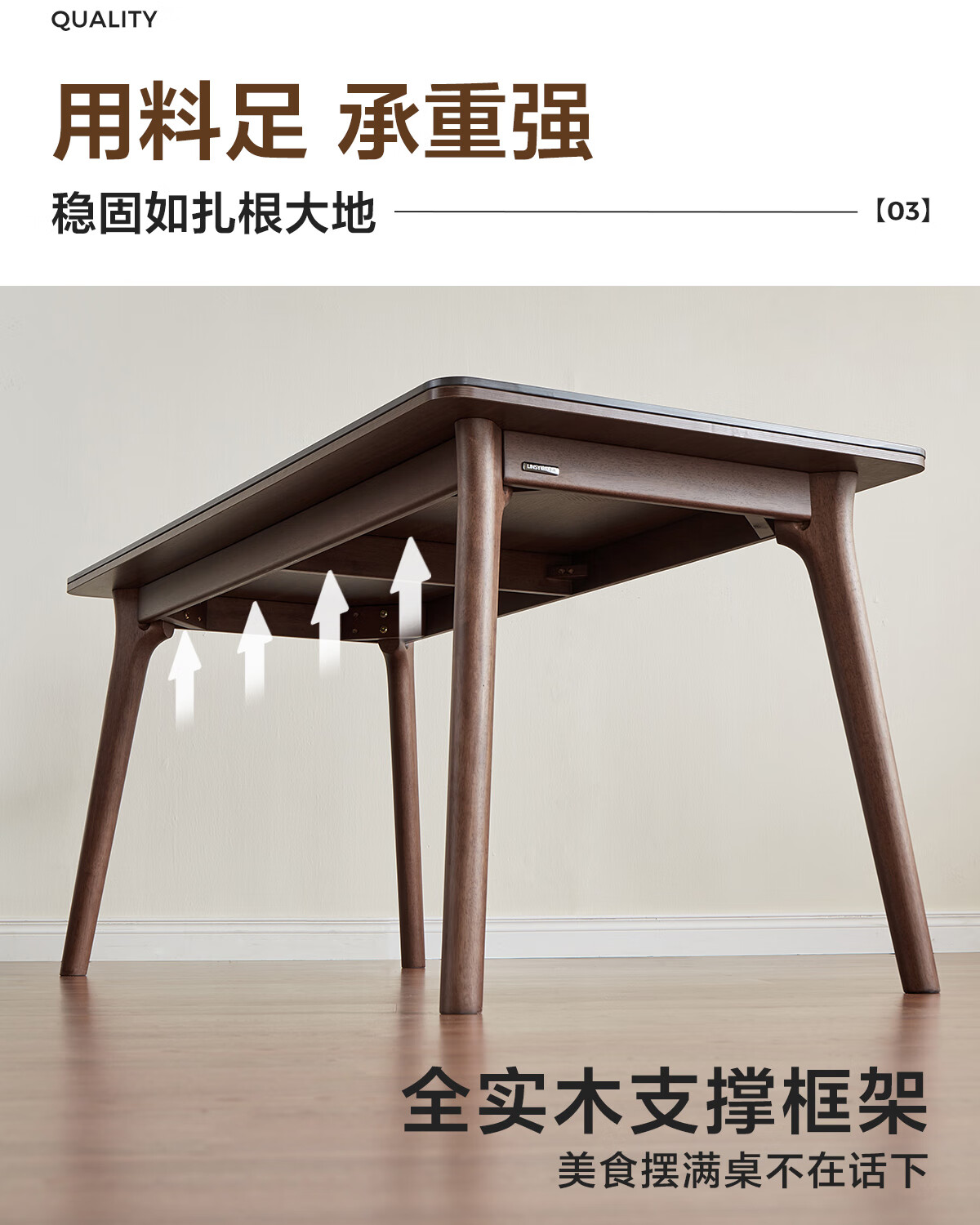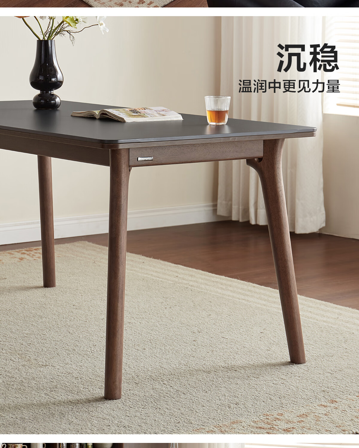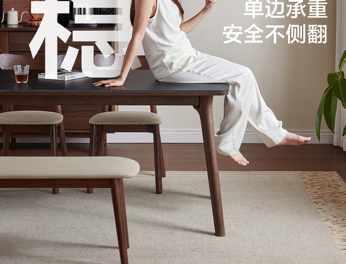 林氏家居岩板餐桌胡桃木色实木桌脚家用餐桌椅子全套饭桌小户型餐厅UB4R 【实木框架】黑岩板餐桌 单桌 1.4米