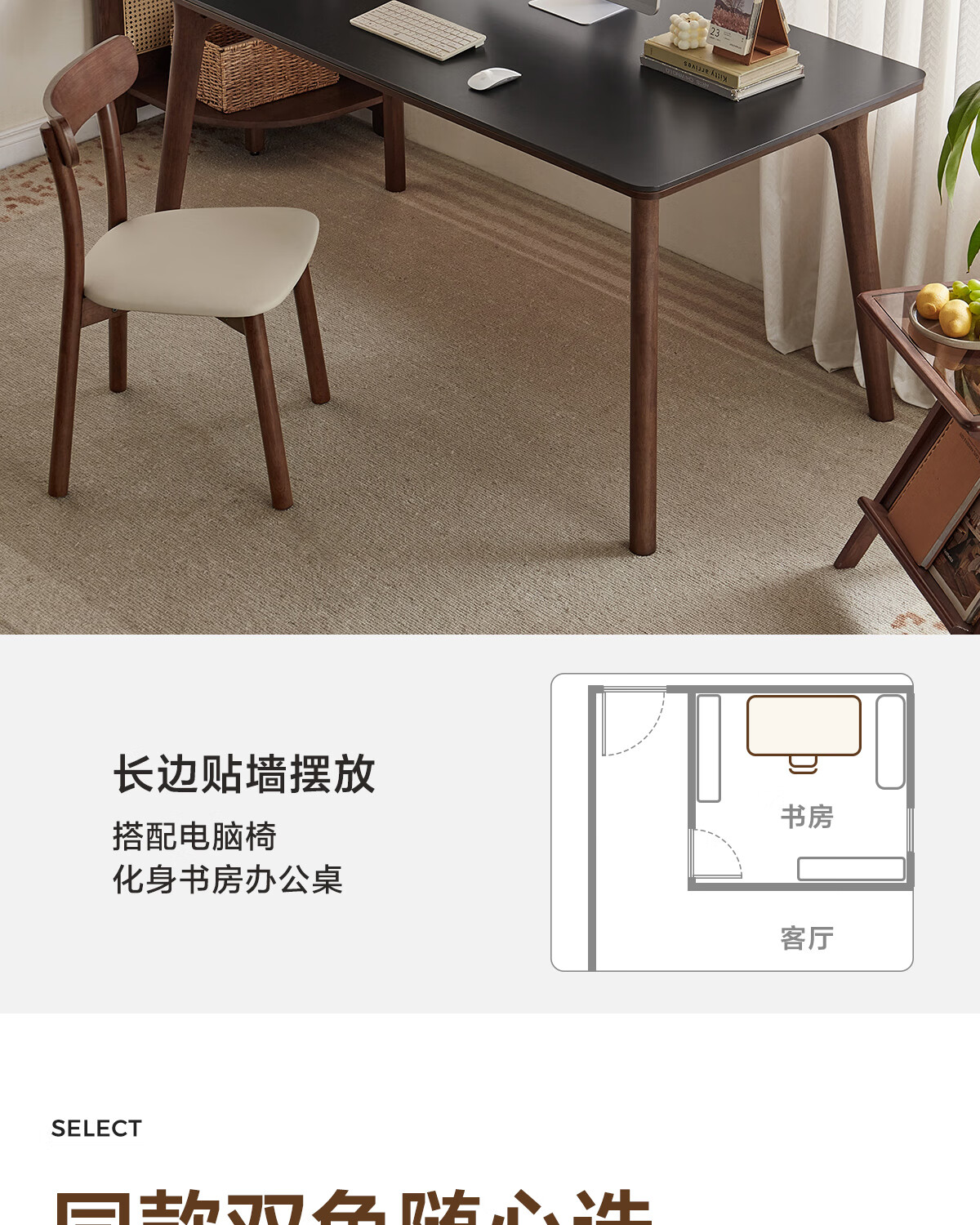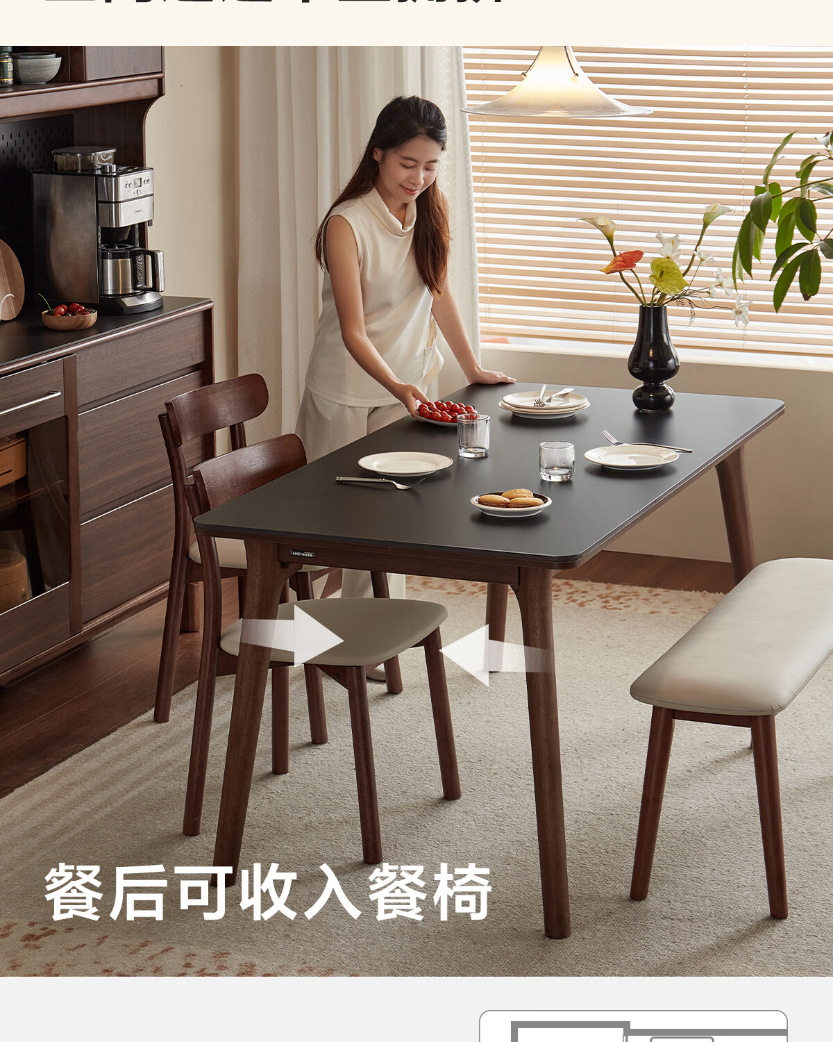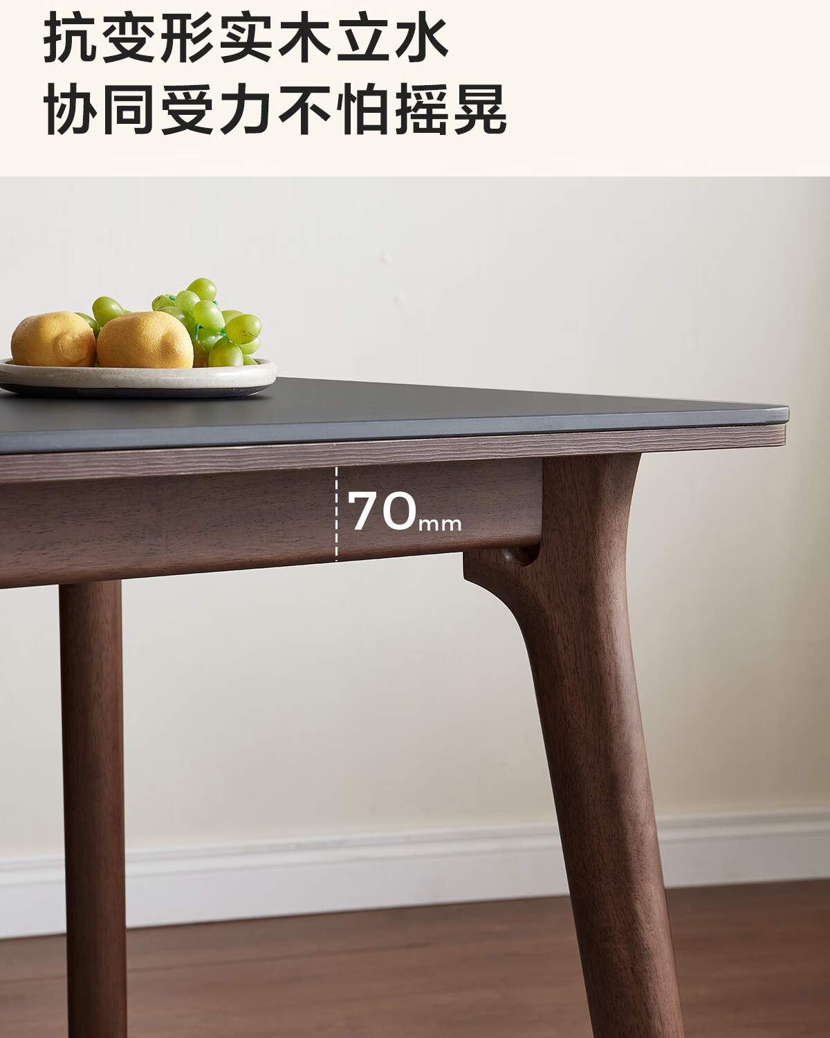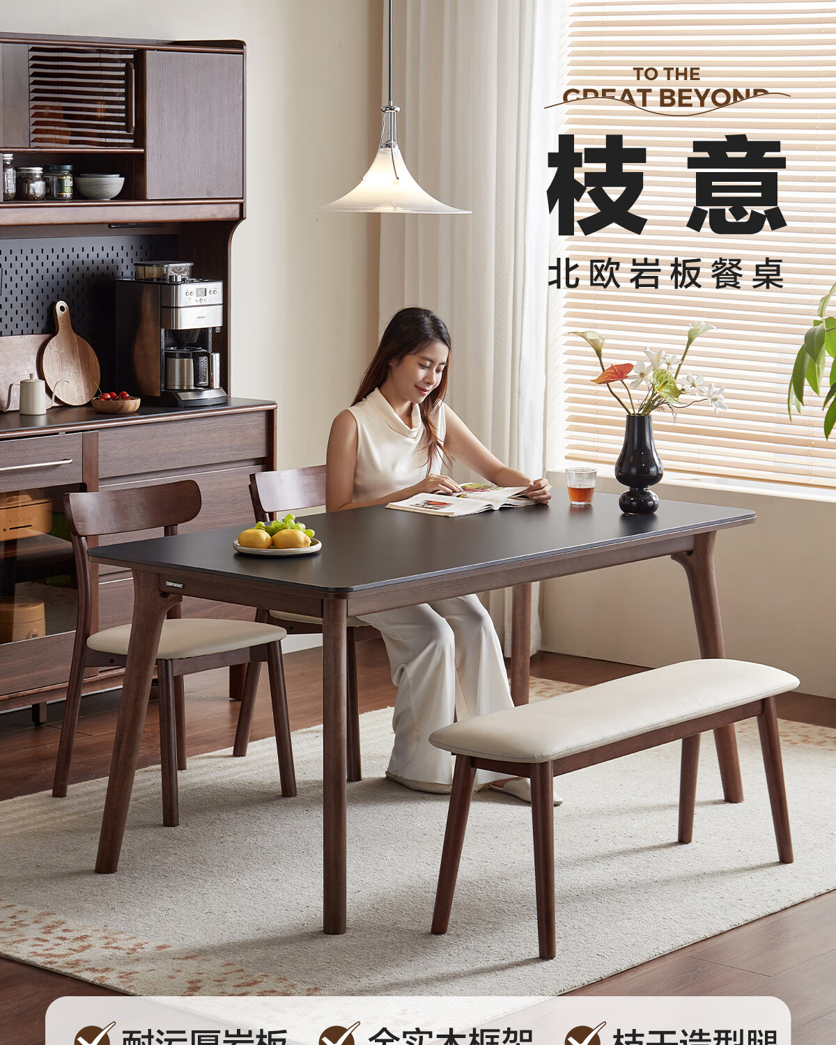 林氏家居岩板餐桌胡桃木色实木桌脚家用餐桌椅子全套饭桌小户型餐厅UB4R 【实木框架】黑岩板餐桌 单桌 1.4米