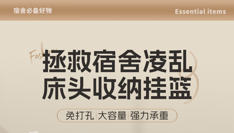 尔思家宿舍置物架床头挂衣架大学生寝室上铺挂篮好物必备床边神器收纳架 白色加大号