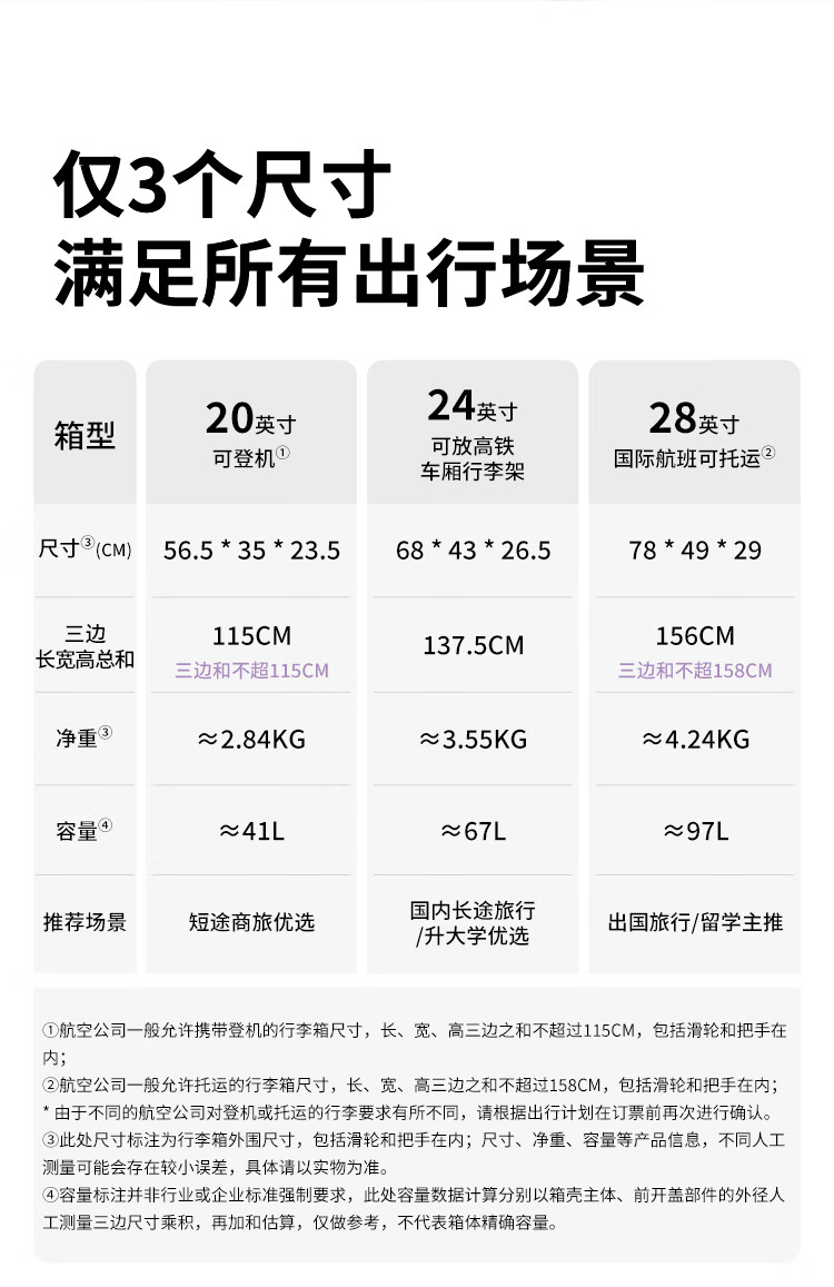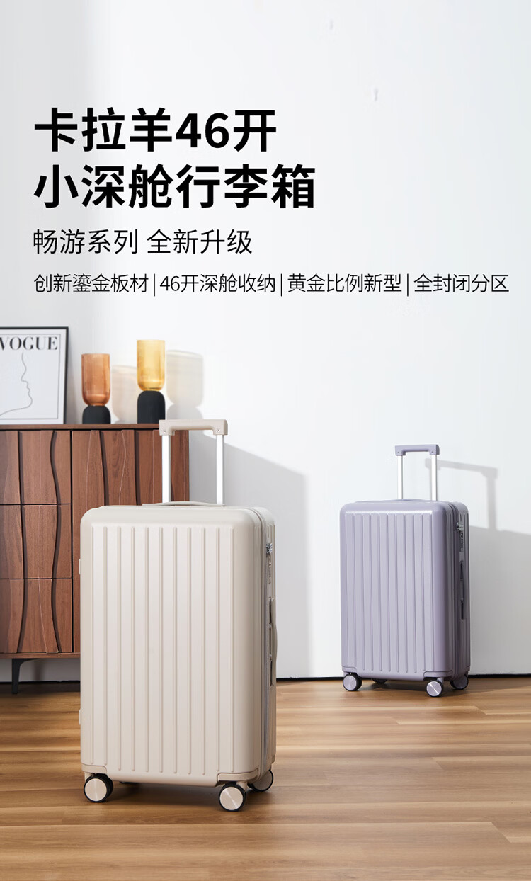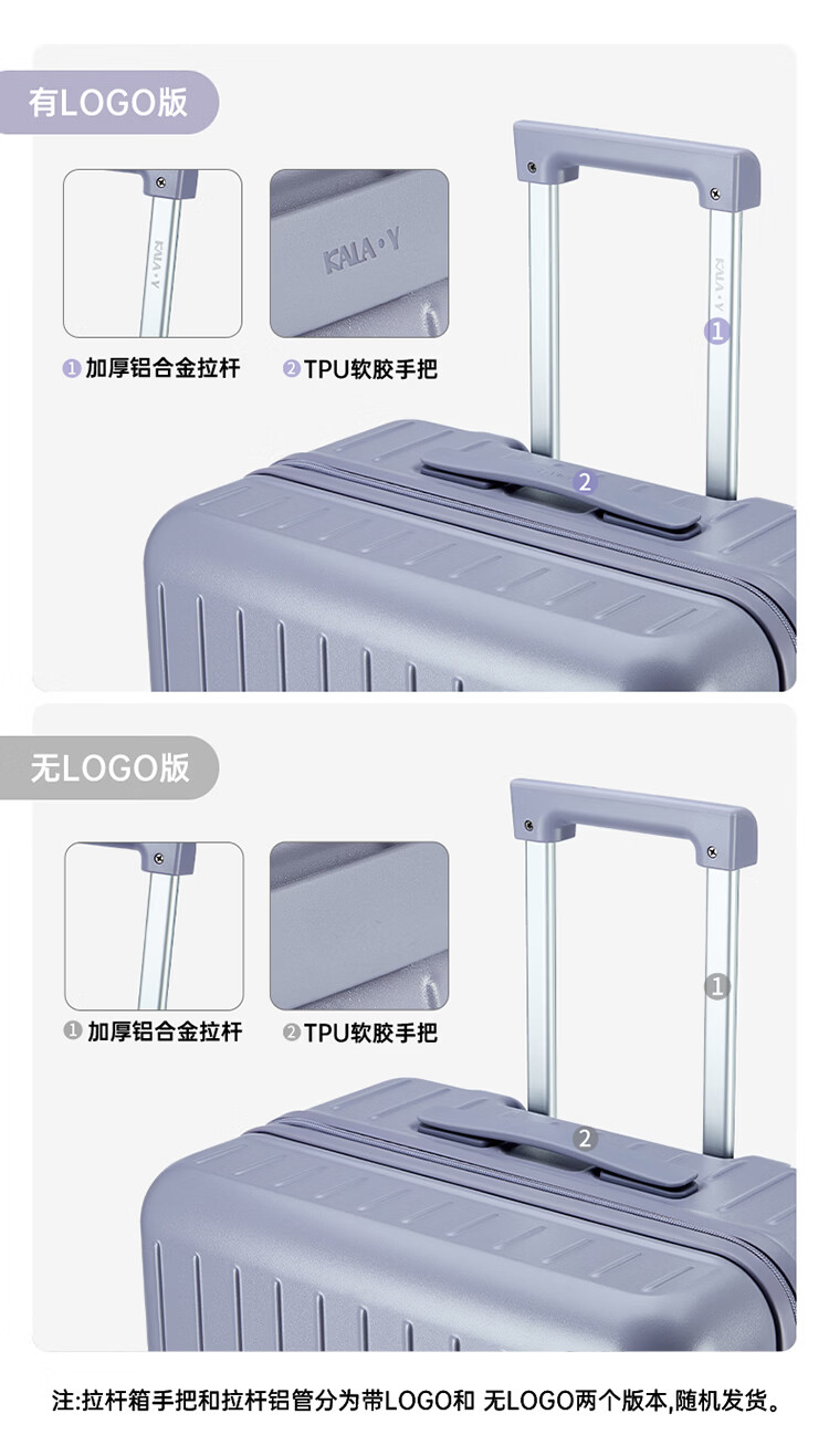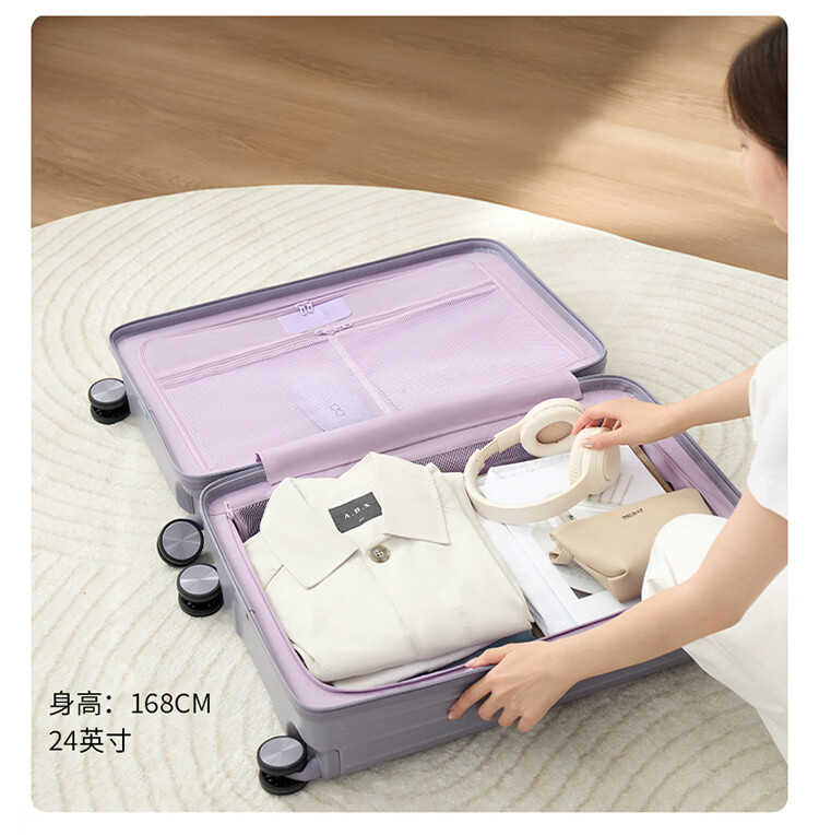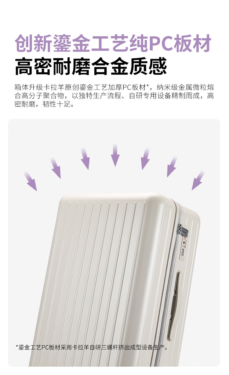 卡拉羊【百川箱】纯PC轻巧坚固防刮抗摔行李箱学生可登机拉杆箱CX8117 薰衣草紫【温馨浪漫,三倍新国标品质】 24英寸 【国内住校/短途旅行,可放多数高铁行李架】